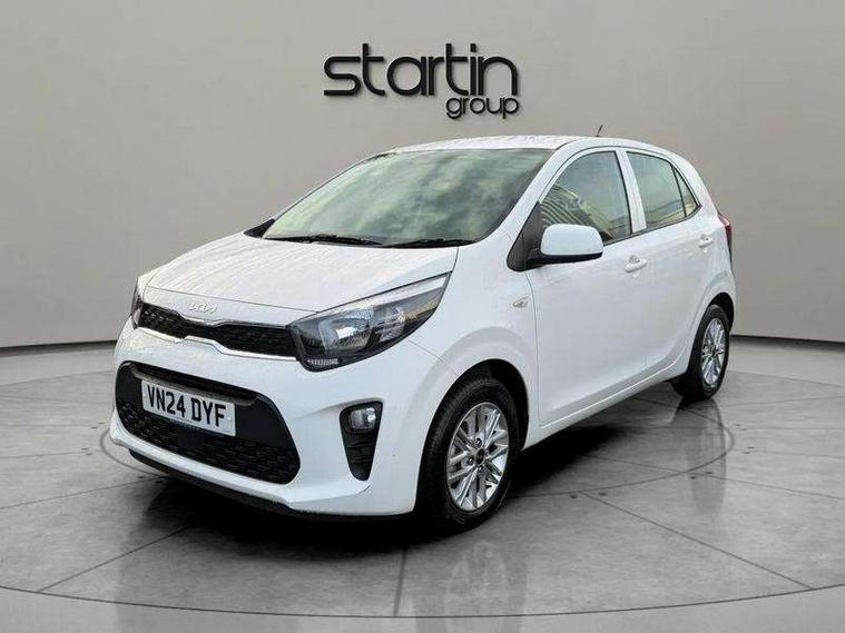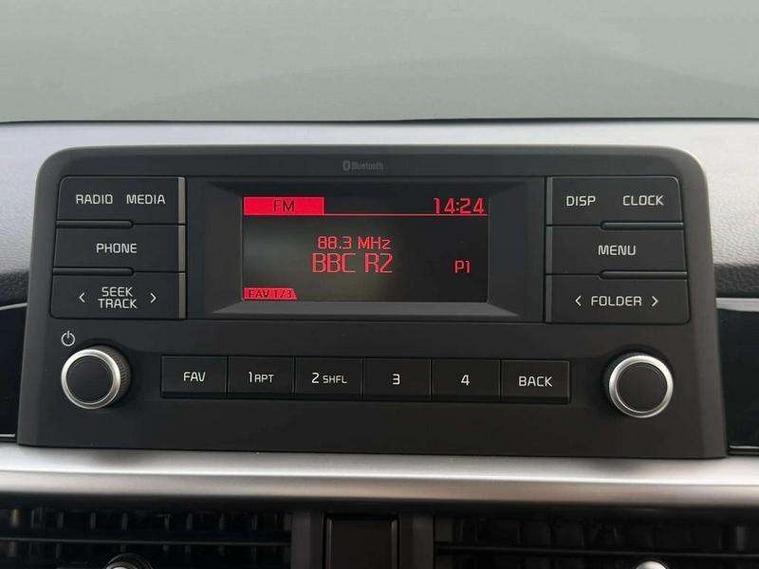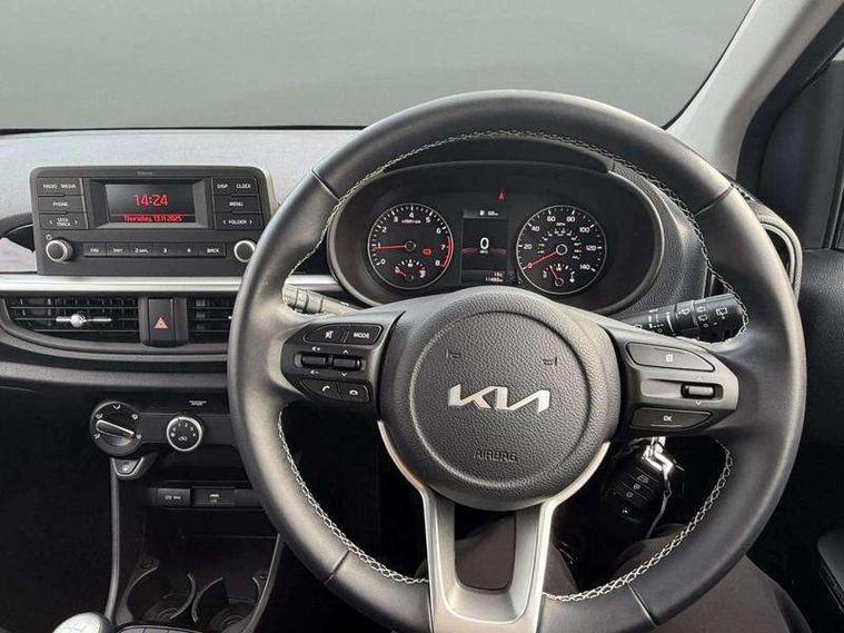 3.8" monochrome audio display with RDS and DAB, 4.2" supervision monochrome cluster display, Emergency call service, Emergency stop signalling system, External temperature gauge, Forward Collision-Avoidance Assist (FCA) - City, Motor driven power steering, Tachometer, Tailgate, Trip computer, 4 speaker audio system, Bluetooth with music streaming, Steering wheel mounted controls, USB ports for connection of a media device, Automatic headlight control system, Black radiator grille with chrome surround, Body colour bumpers, Body colour mirrors and door handles, Day/night rear view mirror, Daytime running lights, Electric adjustable heated door mirrors, Front and rear electric windows with drivers's auto up/down function, Headlamp levelling, Heated rear window, High mount brake light, MFR - Multi Focus Reflector halogen headlights with black bezel, Rain sensor, Rear fog lights, Rear side wing doors, Rear wash/wipe, Speed variable front wipers, Tinted glass, Visible VIN plate, Welcome and follow-me home light functionality, 1 x rear coat hook, 12V power point front, 2 seat bench in 2nd row, 3 x passenger assist grips, 60/40 split/folding 2nd row of seats, All round height adjustable headrests, Cupholders in centre console, Driver and front passenger sunvisor with vanity mirror, Driver seat height adjust, Front cabin lights, Glovebox, High gloss lower centre fascia trim, door armrest and air vents, ISOFIX Child seat top tethers and anchor fixings, Leather trimmed steering wheel and gearshift, Luggage area light, Luggage area parcel shelf, Manual air conditioning, Passenger front seatback pockets, Premium cloth upholstery, Silver paint finished interior door handles, Single front passenger seat, Slide/reclining front seats, Tilt adjustable steering wheel, Advanced Driver Assistance Pack - Picanto, 2 x 3-point rear seatbelts, ABS/EBD, Automatic unlocking of doors in case of impact, ESC + BAS + VSM + HAC, Front passenger airbag cut-off switch, Front seatbelt height adjusters, Front seatbelt pretensioners, Hill hold control, Hill start assist control (HAC), Knee airbags, Rear child proof door locks, Seatbelt warning, Side impact protection, Torque vectoring brake based and straight line stability (SLS), Traction control, Twin curtain airbags, Twin front airbags, Twin front side airbags, Tyre pressure monitoring system, Anti theft alarm, Engine immobiliser, Folding key, Locking wheel nuts, Remote central door locking, 14" alloy wheels, Tyre mobility kit,