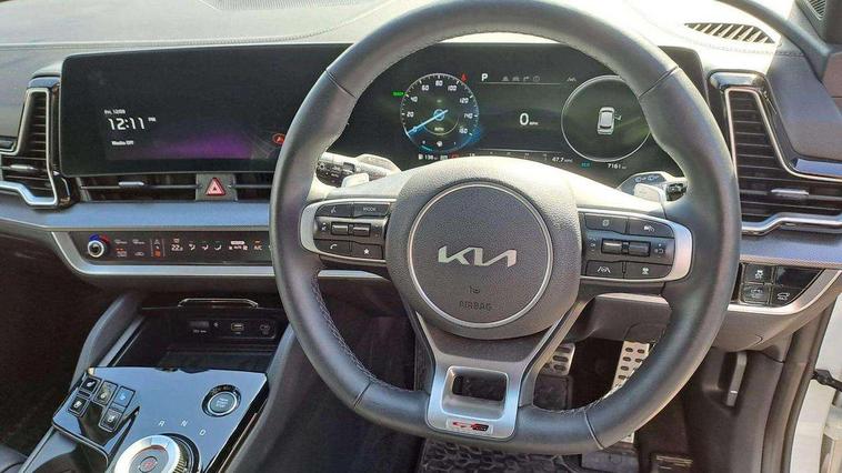 12.3" Display with navigation, 12.3" supervision colour cluster display, 360 degree around view monitor, Apple car play/Android Auto with voice control, Blind spot collision avoidance assist, Blind spot view monitor, Drive mode selector, E-call, Forward collision avoidance assist (FCA) - city/pedestrian/cyclist/junction covering, Front and rear parking sensors, Highway Driving Assist (HDA), Intelligent speed limit assist, Kia Connect (UVO), Lane Following Assist (LFA), Lane keep assist, Low washer fluid warning, Parking collision avoidance assist (PCA), Remote smart parking assist, Reversing camera system integrated into centre fascia screen, Smart cruise control with stop and go functionality, Smart power tailgate, Speed sensitive power steering, Trip computer, Windscreen washer level indicator, Wireless Smartphone charger, Intelligent Stop and Go, Bluetooth audio streaming, DAB Radio with MP3, Harman Kardon premium sound system, Rear USB port, Steering wheel mounted audio controls, USB C type charging ports on centre console, USB C type charging ports on side of front seats, USB port for connection of a media device, All round electric windows with drivers and front passenger auto up/down function, Automatic headlight control system, Automatic window defogger, Backlite glass heated with timer, Body colour and black bumper with silver accents, Body colour exterior door handles, Body colour radiator upper garnish and door garnish, Dual LED adaptive headlamps, Electric panoramic glass sunroof (Electric one touch with safety function), Electrically adjustable/heated/folding door mirrors with LED indicators, Front and rear chrome skid plates, Gloss black door mirrors, Gloss black radiator grille, Gloss black side sill and wheel arch body mouldings, Glossy black roof rack, High beam assist, Interior electrochromic mirror, LED daytime running lights, LED front fog lamps, LED High mounted stop light, LED rear combination lamp, Rain sensing wipers with aero blades, Rear fog lamp, Rear privacy glass, Rear side wing doors, Rear spoiler, Rear wiper, Satin finished beltline, Silver coloured inserts to bumpers, Tinted rear glass, Trailer stability assist, 10 way driver/8 way passenger electrically power adjustable seats, 12V power socket in front centre fascia and luggage compartment, 3 seat bench in 2nd row, 3 x passenger assist grips, 40/20/40 split folding rear seat, All-round height adjustable headrests, Ambient lighting, Black headlining, Centre console storage box, Cupholders in rear armrest, D-Shaped sports leather steering wheel and perforated inserts with GT-Line logo, Door courtesy lamps, Drink holder at centre armrest, Driver and front passenger side sunvisors with illuminated vanity mirrors, Driver seat memory function, Drivers seat power lumbar support, Front and rear door storage, Front seat and rear pockets, Front/rear centre armrests, Gear shift indicator, Glovebox illumination, Heated front and outer rear seats, Heated steering wheel, Interior door lock/unlock function, ISOFIX Child seat top tethers and anchor fixings outer rear seats, LED interior personal lamp, LED lighting in overhead console, Luggage area LED light, Luggage area load cover, Luggage net with hooks, Metal paint interior door handles, Paddle shift controls, Rear cabin light, Rear coat hooks, Single front passenger seat, Sports pedals, Suede leather upholstery, Three zone climate control, Tilt/telescopic adjustable steering wheel, Ventilated front seats, Ventilation ducts to rear compartment, Active front headrests, All round 3-point seatbelts, Anti-lock braking system (ABS), Dual front side airbags, Dual horn, Electronic parking brake, Electronic stability control with downhill brake control, Front passenger airbag cut-off switch, Front seatbelt pretensioners + load limiters, Height adjustable front seatbelts, Hill start assist control (HAC), Impact sensing auto door unlocking, Multi collision brake assist, Rear door child safety locks, Rear seat alert system, Traction control, Twin curtain airbags, Twin front airbags, Tyre pressure monitoring system, Advanced anti-theft system including immobiliser and alarm, Door deadlocks, Engine Start/Stop Button with Smart Entry System, Locking wheel nuts, Speed sensitive auto door locking, Visible vehicle identification number, Aluminium pattern finish centre fascia and door garnish, 18" GT-Line alloy wheels, Michelin tyres, Tyre mobility kit,