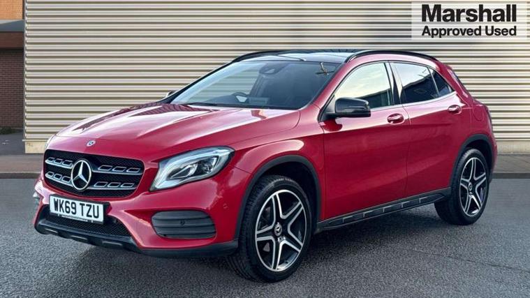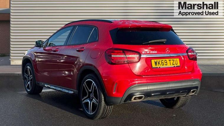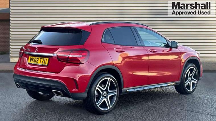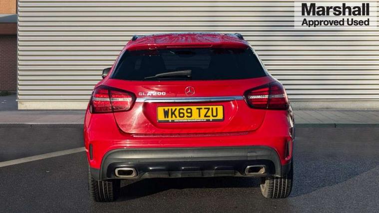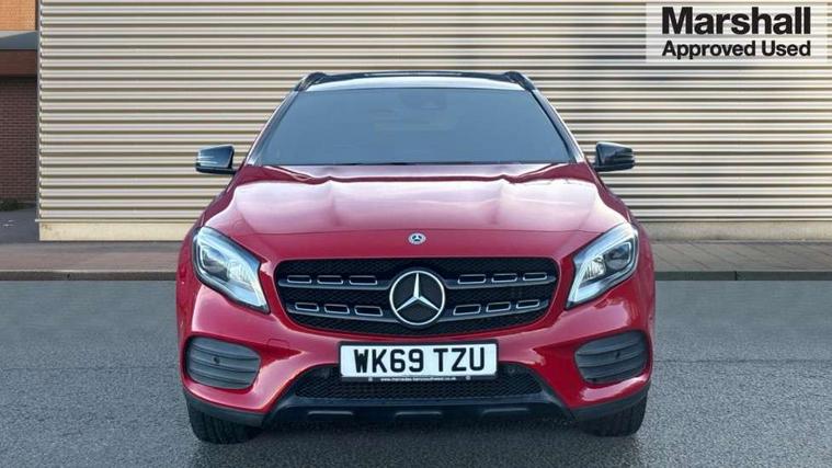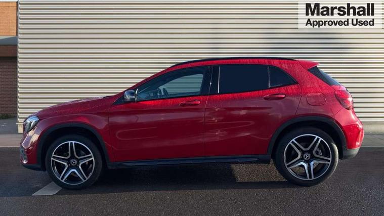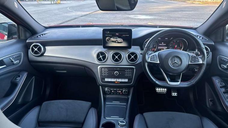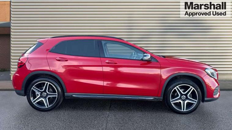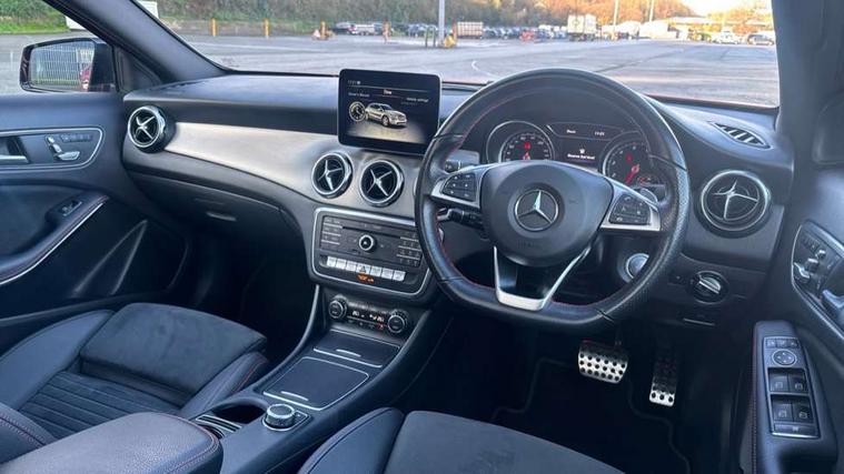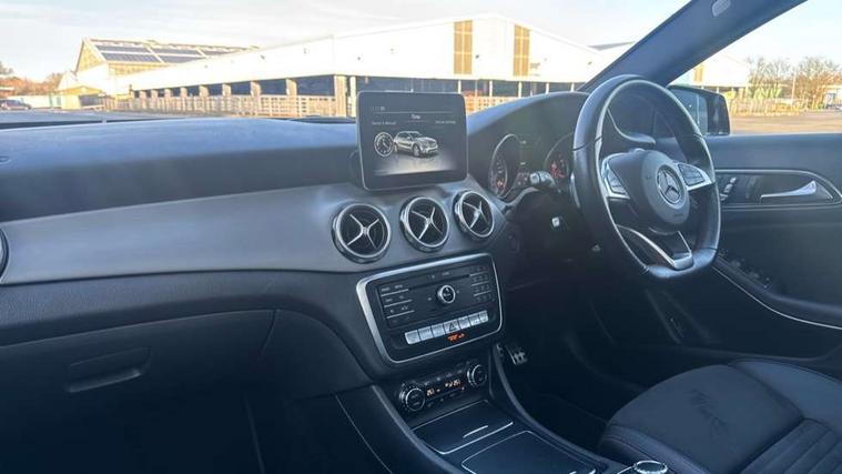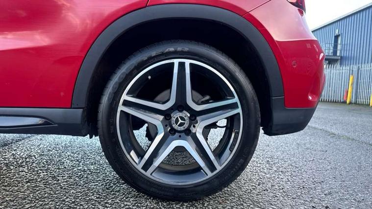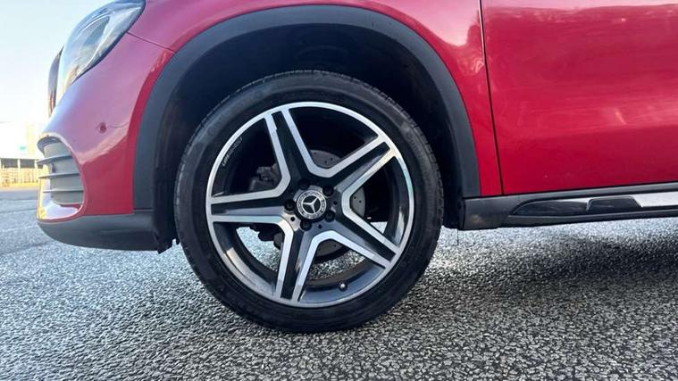 180 degree reversing camera with parking guidelines, 4 analogue dials and needles suspended in six o'clock position, Attention assist, DYNAMIC SELECT with a choice of driving modes (ECO, Comfort, Sport and Individual), Easy-pack tailgate - Powered opening/closing automatically, ECO start/stop function, Fluid level warning indicator for fuel, oil, coolant and washer fluid, Instrument cluster, Mercedes me connect including emergency call system, accident recovery, breakdown and maintenance management, Multi function trip computer, Outside temperature gauge, Parking pilot with front and rear parking sensor and steering assist, Service indicator (ASSYST), Smartphone integration with Apple CarPlay and Android auto, Sports speed sensitive direct steer system with servo assistance, Off road comfort suspension, 8" media display touchpad, Audio 20 radio/single CD/MP3, 6 speakers, telephone keypad, twin radio tuner, Bluetooth, 2 USB ports, SD card slot and Garmin Map pilot nav system, Media interface, Adaptive brake lights, Automatic headlamp activation, Body colour door handles with chrome inserts, Body coloured bumper with front and rear apron trim in matt titanium grey, Chrome beltline strips, Electric front windows, Electrically adjustable and heated door mirrors, Front door sills with Mercedes-Benz lettering, Front fog lights, Full LED tail lamps, Heat insulating dark tinted privacy glass from the B-pillar backwards, Heated glass rear windscreen + timer control, LED High performance headlamps with adaptive highbeam assist, LED third brake light, Panoramic sliding sunroof, Rain sensor windscreen wipers with two sensitivity stages, Rear windscreen intermittent wiper with automatic activation when reversing, Roof mounted radio aerial, Two pipe visible exhaust system with chrome tailpipe tips, 1/3 to 2/3 split folding rear seats, 12 colour Ambient lighting, 12V power socket in centre console, 12V socket in luggage compartment, 3 spoke and 12 button flattened bottom multifunction steering wheel trimmed in nappa leather with perforated leather grip area, Air conditioning - Two zone thermotronic luxury automatic climate control with display, Air vents with chrome surround and cruciform nozzles, Ambient lighting in front headrests, AMG brushed stainless steel sports pedals with rubber studs, AMG floor mats with AMG lettering and stiched edging, Artico man-made leather/Microfibre Dinamica upholstery with red contrast stitching, Auto Mercedes-Benz child seat recognition sensor, Black roof lining, Electrically adjustable front memory seats with four way lumbar support, Front centre armrest with stowage, Front footwell lights, Front seat cushion length adjustment, Gearshift paddles, Heated front seats, Illuminated door sills, Illuminated glove compartment stowage, Interior door handle illumination, Luggage compartment cover, Manually height and reach adjustable steering column, Rear footwell lights, Rear Reading Lamps, Sports seats with integrated head restraints, Stowage compartment beneath load compartment floor, Stowage compartment lighting, Sunvisors with illuminated vanity mirrors, Twin front cup holders, Two outer rear seat isofix and top tether child seat fixing points, White courtesy and red warning lights in front doors and boot lid, Comfort seat pack - GLA Class, Keyless go comfort pack - GLA Class, Mirror pack - GLA Class, 3 rear three point seatbelts, Active bonnet pedestrain safety measure which detects an impact and raises bonnet by 65mm, Active brake assist, Adaptive brake assist with hold function and hill start assist, Anti-lock braking system (ABS), Black seat belts, Childproof locks manually operated for rear doors and electrically operated for rear power windows, Crash responsive emergency lighting, Drivers knee airbag, Dual stage driver and front passenger airbags, Electronic parking brake, Electronic stability programme with acceleration skid control, Front and rear seatbelt reminder, Front passenger seat occupancy sensor, Front side airbags, Tyre pressure monitoring system, Warning triangle and first aid kit, Window airbags, Anti-theft alarm system/interior protection with tow-away protection and interior monitoring systems, Chrome surround in electric key, Remote central locking, Light aluminium with longitudinal grain interior trim, Run flat tyres,