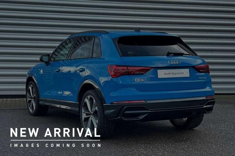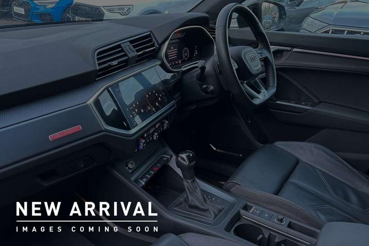 Audi connect safety and service (e-call), Audi drive select, Audi lane departure warning, Audi side assist, Audi smartphone interface includes wireless Apple carplay/Android Auto, Audi virtual cockpit plus, Bluetooth interface, Camera based traffic sign recognition, MMI Navigation Plus with high resolution 10.1 inch touchscreen colour display, Power operated tailgate, Progressive steering, Service interval indicator, Start stop system with recuperation, Voice control system with natural language interaction, 48V Mild hybrid technology, Sports suspension, 1 x USB type C and 1 USB type A charging points, 6 passive loudspeakers, DAB digital radio module, Acoustic windscreen, Audi Beam uses LEDs to project the Audi Sport logo, Auto dimming frameless rear view mirror, Black roof rails, Electrically folding, adjustable and heated door mirrors with integrated LED side indicators and kerb view function for passenger side, Front and rear electric windows, Front fog lights, Front spoiler blade in matt platinum grey, Grille vertical bars in aluminium silver/Matt, Headlight washers, High gloss black finish B and C pillars, Matrix LED headlights with LED rear lights and dynamic front and rear indicator, Privacy glass dark tinted rear and rear-side windows (from B-pillar backwards), Rain and light sensors, Rear diffuser strip in matt titanium black, S line bumpers in contrasting Manhattan grey, Side skirt insert in matt Platinium grey, Silver chrome grille surround, 12V socket in rear centre console, 3 spoke flat bottomed high multi-function leather sport steering wheel with gearshift paddles, 4 way electric lumbar support for driver and front passenger, 40:20:40 folding with manual adjustment for 60:40 forwards/backwards position and backrest angle, Adjustable rear seat bench/backrest with centre armrest and cupholder, Black cloth headlining, Dual zone electronic climate control, Electrically adjustable front seats, Front and rear black floor mats with contrast stitching in rock grey, Front and rear headrests, Front and rear roof module including reading lights, Front centre armrest, Glove compartment lighting, Heated front seats, Height and reach adjustable steering wheel, Illuminated door sill trims with S logo, ISOFIX child seat mounting for front passenger with airbag deactivation and outer rear seat including top tether attachment point for outer rear seats, Luggage compartment light, Perforated leather gearknob, Stainless steel luggage compartment sill finisher, Stainless steel pedals, Tool kit, Black styling pack - Q3, Multi coloured extended ambient interior lighting pack - Q3, Non smoking pack - Q3, 3x3 point rear seatbelts, 6 airbags - Driver, front passenger, curtain and side windows, Audi pre-sense front with pedestrain and cyclist recognition, Electrically operated child locks on rear doors, Electromechanical parking brake, Electronic stabilisation control including ABS, ASR and EDL, Hill descent control, Hill hold assist, Pre sense basic, Seatbelt monitoring, Tyre pressure warning, Warning triangle and first aid kit, Anti theft alarm, Anti theft wheel bolts, Remote central locking, Dark matt brushed aluminium inlay, Detail dashboard around MMI touch colour display in glass look, black with surround in aluminium look, Leatherette door armrest, Tyre repair kit,