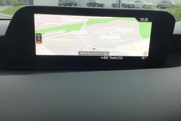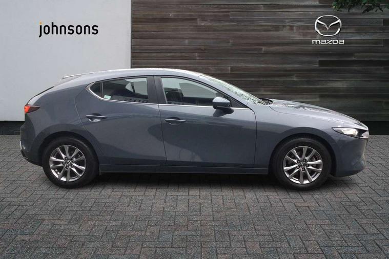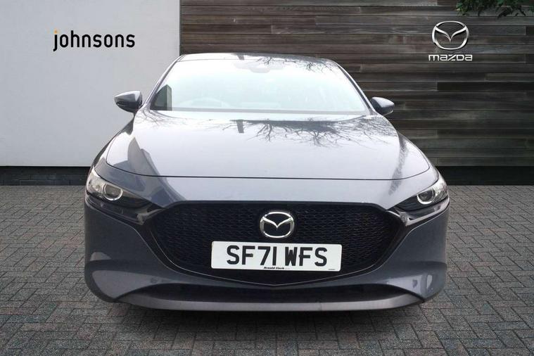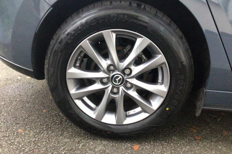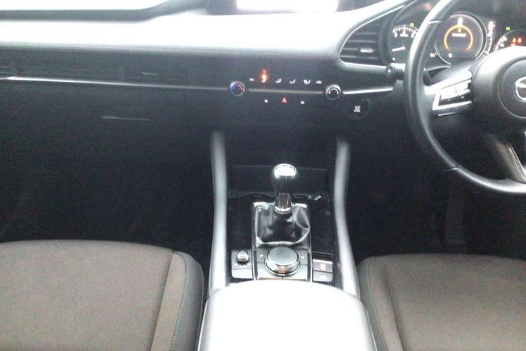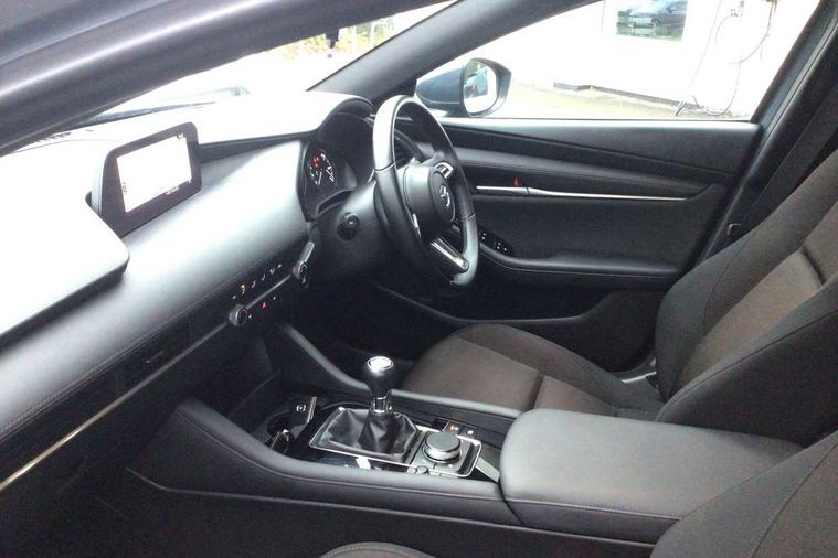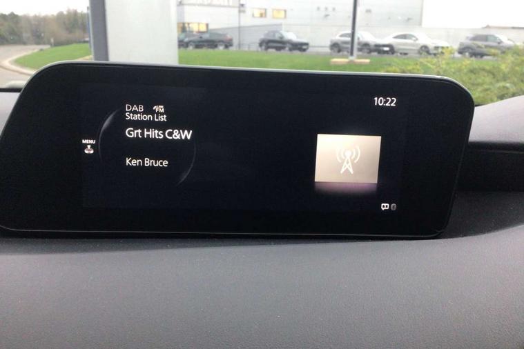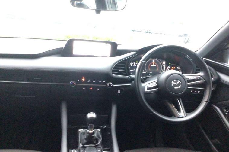 7" colour TFT display, 8.8" Colour centre touch screen display with Mazda Connect infotainment, Apple car play/Android Auto, Audio transfer from bluetooth devices, Blind spot monitoring with rear cross traffic alert, Colour active driving display inc Windscreen projected, Traffic Sign Recognition, turn-by- turn navigation and Mazda Radar Cruise Control information, Digital instrument cluster, Driver attention alert system, E-call with GPS, Emergency stop signalling system, Engine start/stop button, Head up Display, Integrated bluetooth with steering wheel mounted controls, Intelligent speed assist, Lane keep assist system (LAS) with Lane departure warning system (LDWS), Mazda connected services, Mazda Navigation System with european mapping, Mazda Radar Cruise Control, Mobile App interface, Multimedia Commander, PAS, Rear parking sensor with audible and visual warning, Service indicator, Traffic sign recognition (TSR), Trip computer, i-stop, Mazda Multimedia System with AM / FM / DAB radio with 8 speakers, B-pillar garnish in satin black, Body coloured, electrically adjustable, heated auto power folding door mirrors with integrated indicators, Coming/leaving home lighting function, Dark metallic finish signature wing, Daytime running lights, Dual chrome tailpipes tip, Dusk sensing headlights, Electric front/rear windows with one touch/auto up/down, Front body coloured bumper with black lower bezel, Front kodo turn signal, Gloss black finish front grille, Gloss black rear roof spoiler, High beam control, LED front fog lights, LED headlamps with auto levelling, LED indicator lights, LED rear combination lights, LED third brake light, Rain sensing front wipers with adjustable sensitivity and speed, Rear colour coded bumper with gloss black lower moulding, Rear fog lights, Speed adjustable rear wash wiper with intermittent wipe, 12v electrical power outlet, 60/40 split fold down rear seats, Black cloth door panel inserts, Cloth upholstery, Dark roof headlining, ceiling and pillars, Driver, front passenger and two rear door pockets, Driver, Front passenger and two rear grab handles with coathooks, Driver/passenger sunvisors + vanity mirrors (drivers side with ticket holder), Drivers seat manual slide recline and height adjustment, Folding rear centre armrest with two cup holders, Front and rear courtesy lamps, Front armrest, Front centre storage with two cupholders, Front head restraints, Front passenger seatback pocket, Front passengers seat manual slide, recline and height adjustment, Gear shift indicator, Illuminated glovebox, Interior colouration dashboard and doorcards in black with dark stitching, ISOFIX child seat anchorage points attached on outer rear seats, Leather wrapped gear shift knob, Leather wrapped steering wheel, LED interior light, Luggage compartment light, Manual air conditioning, Power outlet in luggage compartment, Roof mounted sunglasses holder, Three height adjustable rear head restraints, Tilt/height adjustable steering wheel, USB input, 3 point ELR front seatbelts with pretensioners, 3 rear 3 point seatbelts with ELR, Anti-lock braking system (ABS), Drivers knee airbag, DSC - Dynamic Stability Control, Dual stage driver and single stage passenger airbags, EBD - Electronic brakeforce distribution, Electronic parking brake with auto disengage function and auto hold function, Front and rear curtain airbags, Front passenger airbag cut-off switch, Front side airbags, Front smart city brake support, G-Vectoring control plus, Hill launch assist, Intelligent Traction Control system, Mild Hybrid system with regenerative braking, Seatbelt reminder for driver/front passenger and rear seats, Tyre pressure monitoring system (TPMS), Auto door lock when driving, Remote central locking + deadlocks, Thatcham accredited alarm and immobiliser, 16" Silver alloy wheels, Emergency tyre repair kit,