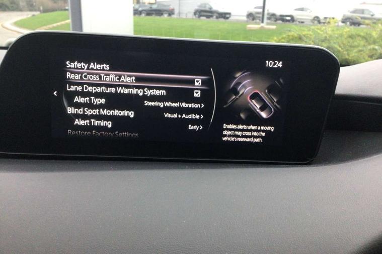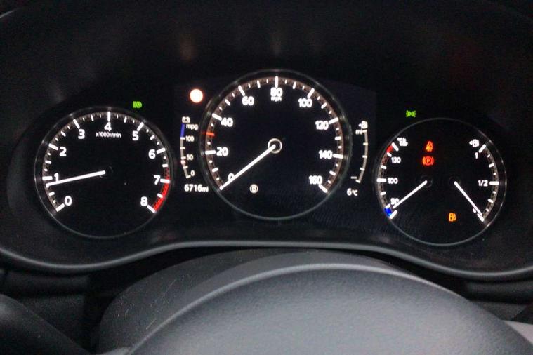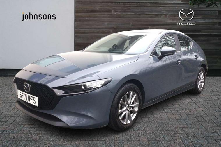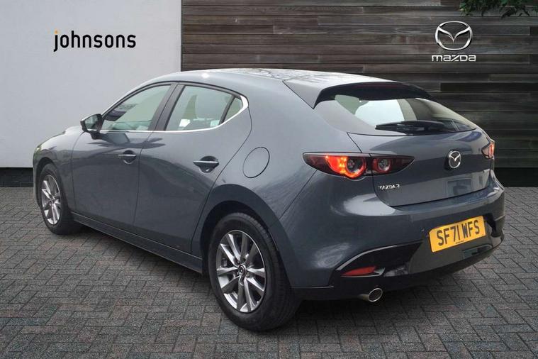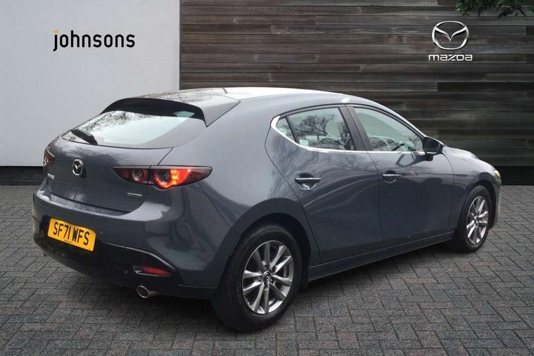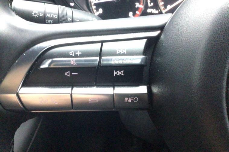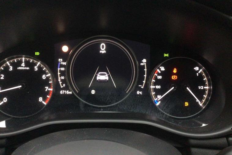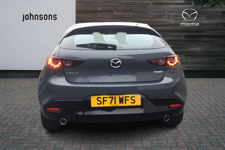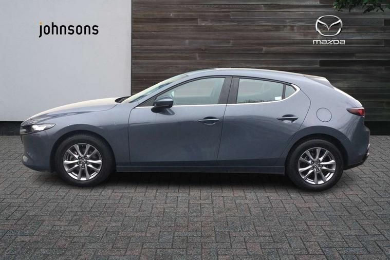 7" colour TFT display, 8.8" Colour centre touch screen display with Mazda Connect infotainment, Apple car play/Android Auto, Audio transfer from bluetooth devices, Blind spot monitoring with rear cross traffic alert, Colour active driving display inc Windscreen projected, Traffic Sign Recognition, turn-by- turn navigation and Mazda Radar Cruise Control information, Digital instrument cluster, Driver attention alert system, E-call with GPS, Emergency stop signalling system, Engine start/stop button, Head up Display, Integrated bluetooth with steering wheel mounted controls, Intelligent speed assist, Lane keep assist system (LAS) with Lane departure warning system (LDWS), Mazda connected services, Mazda Navigation System with european mapping, Mazda Radar Cruise Control, Mobile App interface, Multimedia Commander, PAS, Rear parking sensor with audible and visual warning, Service indicator, Traffic sign recognition (TSR), Trip computer, i-stop, Mazda Multimedia System with AM / FM / DAB radio with 8 speakers, B-pillar garnish in satin black, Body coloured, electrically adjustable, heated auto power folding door mirrors with integrated indicators, Coming/leaving home lighting function, Dark metallic finish signature wing, Daytime running lights, Dual chrome tailpipes tip, Dusk sensing headlights, Electric front/rear windows with one touch/auto up/down, Front body coloured bumper with black lower bezel, Front kodo turn signal, Gloss black finish front grille, Gloss black rear roof spoiler, High beam control, LED front fog lights, LED headlamps with auto levelling, LED indicator lights, LED rear combination lights, LED third brake light, Rain sensing front wipers with adjustable sensitivity and speed, Rear colour coded bumper with gloss black lower moulding, Rear fog lights, Speed adjustable rear wash wiper with intermittent wipe, 12v electrical power outlet, 60/40 split fold down rear seats, Black cloth door panel inserts, Cloth upholstery, Dark roof headlining, ceiling and pillars, Driver, front passenger and two rear door pockets, Driver, Front passenger and two rear grab handles with coathooks, Driver/passenger sunvisors + vanity mirrors (drivers side with ticket holder), Drivers seat manual slide recline and height adjustment, Folding rear centre armrest with two cup holders, Front and rear courtesy lamps, Front armrest, Front centre storage with two cupholders, Front head restraints, Front passenger seatback pocket, Front passengers seat manual slide, recline and height adjustment, Gear shift indicator, Illuminated glovebox, Interior colouration dashboard and doorcards in black with dark stitching, ISOFIX child seat anchorage points attached on outer rear seats, Leather wrapped gear shift knob, Leather wrapped steering wheel, LED interior light, Luggage compartment light, Manual air conditioning, Power outlet in luggage compartment, Roof mounted sunglasses holder, Three height adjustable rear head restraints, Tilt/height adjustable steering wheel, USB input, 3 point ELR front seatbelts with pretensioners, 3 rear 3 point seatbelts with ELR, Anti-lock braking system (ABS), Drivers knee airbag, DSC - Dynamic Stability Control, Dual stage driver and single stage passenger airbags, EBD - Electronic brakeforce distribution, Electronic parking brake with auto disengage function and auto hold function, Front and rear curtain airbags, Front passenger airbag cut-off switch, Front side airbags, Front smart city brake support, G-Vectoring control plus, Hill launch assist, Intelligent Traction Control system, Mild Hybrid system with regenerative braking, Seatbelt reminder for driver/front passenger and rear seats, Tyre pressure monitoring system (TPMS), Auto door lock when driving, Remote central locking + deadlocks, Thatcham accredited alarm and immobiliser, 16" Silver alloy wheels, Emergency tyre repair kit,