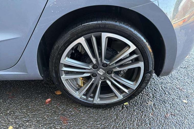 'Lights On' Reminder warning buzzer, 10" Digital cockpit, 9.2" touchscreen navigation system with type C USB socket, Voice control and DAB/AM/FM radio, Auto start and stop system, Bluetooth audio streaming with handsfree system, Digital clock, E-call, Full link smartphone integration with mirror link, wireless apple carplay, Google android auto + USB Type C cable for apple and android devices, Lane assist, Low fuel warning light, Outside temperature gauge, Power Steering, Rear parking sensor, Seat connect plus with safety, service, remote and online, SEAT logo boot release, Speed limiter, Traffic sign recognition, Trip computer, Sports suspension, Auxiliary input socket, Beats audio system with 18" space saver spare wheel and luggage compartment lining, Radio/MP3 player, SD card slot, Steering wheel mounted controls, Anti theft roof antenna, Auto dimming rear view mirror, Automatic rain sensing wipers, Black door mirror caps, Body colour bumpers, Body colour door handles, Brilliant black window surrounds, Dark tinted rear windows, Doorstep with anniversary limited edition, Electric adjustable/heated/folding door mirrors, Electric front windows, Electric headlight adjustment, Electric rear windows, Front/rear fog lights, FULL LED automatic headlights with dynamic headlight range control, coming and leaving home, LED daytime running lights, Lassered lettering Anniversary Edition in B pillar, LED tail lights, Rear roof spoiler with FR twin exhausts, Rear side wing doors, Rear wiper, Third brake light, 3 seat bench in 2nd row, 60/40 split folding rear seat, Ambient interior lighting, Chrome detailing and black headlining, Dual zone climate control with combination filter, Front courtesy lights, Front cupholders x 2, Front reading lights, Gear shift indicator, Glovebox, Grey interior air vents, Grey interior styling, Height adjustable front and rear headrests (five), Height adjustable front seats, Height/reach adjust steering wheel, Illuminated air vent surrounds, Illuminated boot, Instrument lighting with brightness control, Isofix, Leather multifunction flat bottomed sports steering wheel, Microsuede cloth upholstery, Passenger sunvisor, Single front passenger seat, Sports bucket seats, Storage pockets on back of front seats, Sunvisors with mirror and driver side card holder, Safety and driving pack (S) - Ibiza, 3 point seatbelts on all 3 rear seats, ABS, Active front headrests, Child locks on rear doors, Electronic stability control, Energy recovery system, Front driver and passenger side airbags with curtain airbag and front passenger airbag deactivation, Hill hold control, Multi-Collision braking, Seat belt reminder for front and rear seats, Tiredness recognition system, Tyre pressure monitoring system, Electronic engine immobiliser, KESSY Keyless entry and go, Locking wheel bolts, Perimeter alarm and interior monitoring inc.backup horn, tow away protection and electronic engine immobiliser, Remote central locking + deadlocks, 18" graphene alloy wheels in cosmo grey,