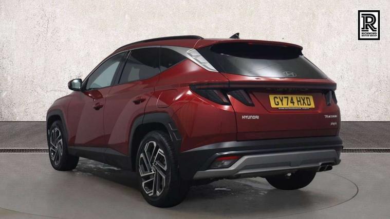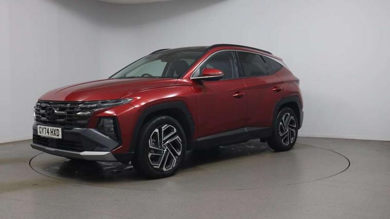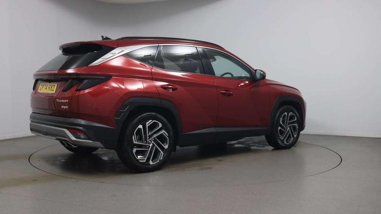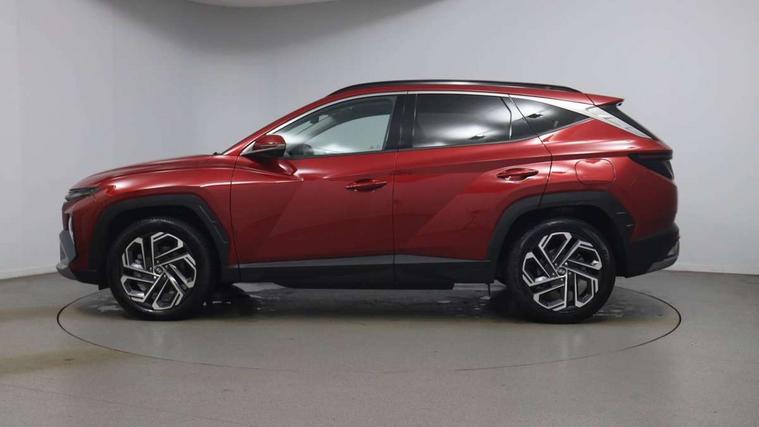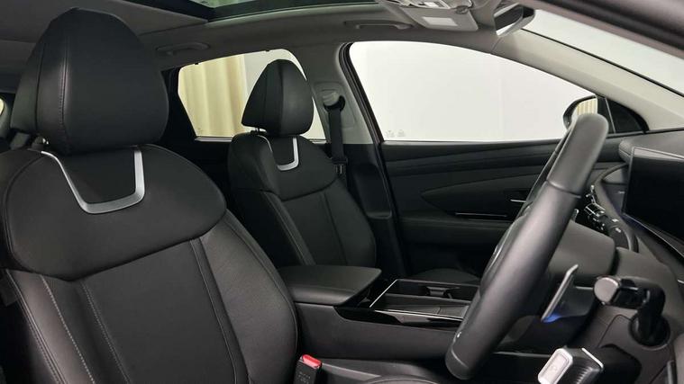 12.3" LCD display with driver's supervision instrument cluster, 12.3" widescreen navigation with bluelink and mapcare, Blind spot view monitor, Bluetooth system, Cruise control - smart adaptive speed control with stop and go function, Digital clock, Drive mode selector, Driver attention warning, E-call, Emergency stop signalling system, Forward Collision Avoidance Assist (FCA) - Car, Pedestrian and Cycle, Forward Collision Avoidance Assist Junction Turning (FCAJX), Front and rear parking sensors, Front, rear and side parking distance warning, Highway Driving Assist (HDA), Hyundai road side assistance, Intelligent speed limit assist, Lane follow assist, Lane keep assist, Over the air updates(OTA), Parking collision avoidance assist (PCA), PAS, Rear camera and guidance parking system, Rev counter, Smart power tailgate, Surround view monitor, Tailgate open warning light, Trip computer, Trip odometer, Voice recognition, Water temperature gauge, Windscreen washer fluid sensor and warning indicator, Wireless Apple CarPlay/Android Auto, Wireless phone charging pad, 2 front and 2 rear USB-C ports, DAB Digital radio, Krell premium audio system with 8 speakers and subwoofer, Steering wheel mounted audio/phone controls, Adjustable intermittent front windscreen wipers with aero wiper blade, Auto dimming rear view mirror, Automatic defog system, Automatic headlights with dusk sensor, Automatic windscreen wipers with rain sensor, Black wheel arches, Body colour bumpers, Body colour door mirrors with integrated indicators, Body colour exterior door handles, Electric tilt/slide panoramic sunroof, Electrically adjustable, heated and power folding door mirrors, Follow me home headlights, Front and rear electric windows with anti-trap mechanism and one touch control, Front fog lights, LED 3rd brake light, LED daytime running lights, LED rear lights, Matrix LED headlights, Positioning Lights - LED, Privacy glass - Rear windows and tailgate, Rear side wing doors, Rear wash/wipe with intermittent wipe setting, Roof rails, Tinted glass with windscreen shade band, Trailer stability assist, 12V power outlets in front console and luggage compartment, 3 seat bench in 2nd row, 40/20/40 split folding rear seat, 64 colours interior ambient lighting, Adjustable head restraints (Up and down), Cupholders in rear armrest, Door courtesy lights, Driver and passenger sunvisors with illuminated LED vanity mirrors, Driver's seat electric adjustments, Driver's seat memory, Front and rear door pockets, Front armrest with storage box, Front centre console and door bottle holders, Front passenger's seat electric adjustments, Heated front seats, Heated rear seats, Heated steering wheel, Height/reach adjustable steering column, Illuminated/air conditioned glove compartment, ISOFIX child seat anchorage points attached on outer rear seats, Leather upholstery, Leather wrapped steering wheel and gear knob, Luggage compartment lighting, Luggage cover, Luggage hooks, Luggage net, Map and reading lights, Rear seat remote folding function, Rear side window sunblind, Reclining rear seats, Retractable load cover, Single front passenger seat, Sunglasses holder, Three zone climate control, Touch sensitive climate controls with temperature dials, TUCSON branded metal door scuff plate, Underfloor boot compartment, Ventilated front seats, Trailer wiring package - Tucson, 3x3 point rear seatbelts, Active bonnet, Airbag - Front, front side, curtain and centre front airbags, Anti-lock brake system (ABS), Brake assist function, Childproof rear door locks, Curtain airbag roll over sensor, Downhill brake control, Electric parking brake, Electronic stability control, Front and rear seatbelt reminder, Front passenger airbag deactivation switch, Front seatbelt pretensioners, Hill start assist control (HAC), Multi-Collision braking, Outer rear seatbelt height adjustment, Seatbelt height adjustment for front seats, Traction control, Tyre pressure monitoring system with individual tyre pressure display - TPMS, Vehicle stability management, Deadlocks, Immobiliser, Locking wheel nuts, Remote control central locking, Smart key with keyless entry and engine start/stop button, Speed sensitive auto door locking, Thatcham category 1 alarm, 19" Alloy wheels, Tyre repair kit,