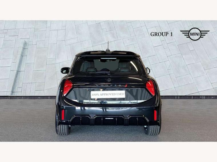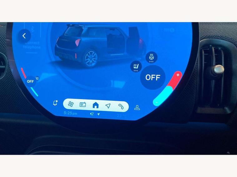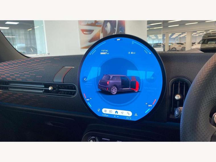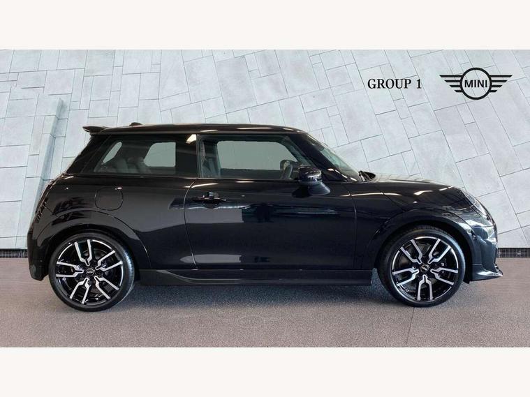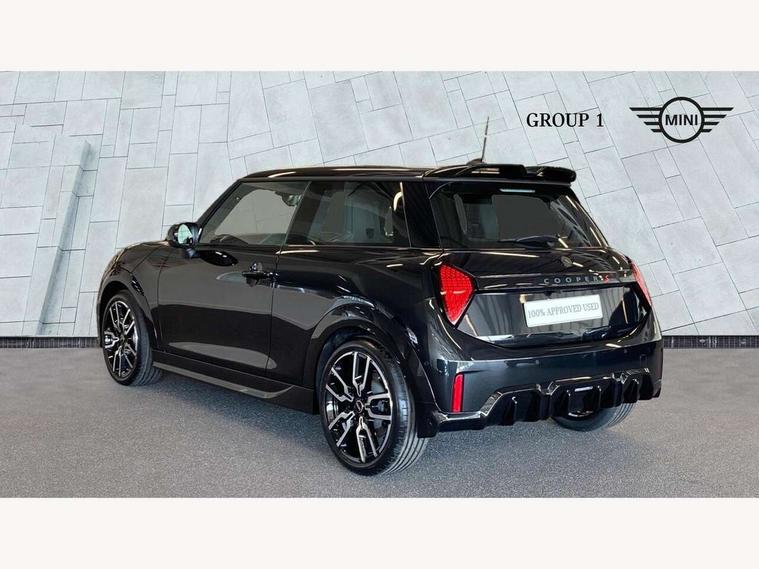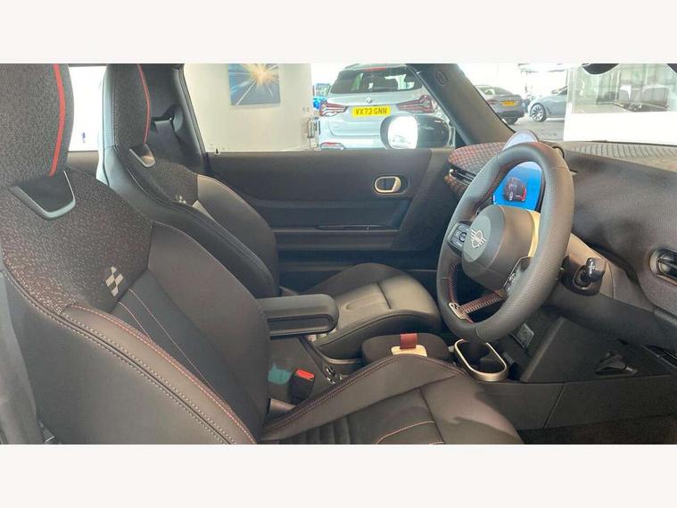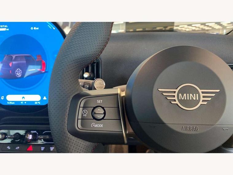 Central toggle bar, Circular OLED Screen, Compatible mobile phone bluetooth with audio streaming, Cruise control, Digital instrument cluster, Electro-mechanical speed dependant steering assistance, Emergency call service, MINI Experience Modes, Mini navigation system, On board computer, Service interval indicator, Tailgate, 7 speed steptronic transmission with double clutch, Adaptive suspension, DAB Digital radio, Personal eSim, Adaptable light signatures, Auto headlights, Electric adjustable heated door mirrors, Electric front windows, Front and rear apron, Heated rear window, Heated windscreen washer jets, High gloss black wheel arches, High gloss hexagonal patterned grille surround, JCW body kit, LED 3rd brake light, LED daytime running lights, LED indicator lights, LED rear lights, Rain sensor window wipers, Rear fog lights, Rear roof spoiler with airblades, Rear window wiper, 2 seat bench in second row, 2 zone automatic air conditioning, 60/40 rear seat bench, Ambient lighting, Black lower band in high gloss, Cupholders, Dark headliner, Front and rear head restraints, Front compact armrest, Front floor mats, Heated steering wheel, Height adjustable passenger seat, Lidded storage box in Black/Red knit, Luggage compartment lighting, Partially perforated vescin steering wheel with red accent, black/red decorative strap, Single front passenger seat, Steering wheel paddle shift, Sunvisors with vanity mirrors, Vescin/Cord combination JCW upholstery includes dash knit in black with red accents, Driving assistant pack - Cooper Hatchback, Level 1 pack - Mini Hatchback, Park assistant pack - Cooper Hatchback, 3 point seatbelts on all four seats, 6 Airbags - front, side, head and seat belt tensioners, Anti-lock braking system (ABS), Brake caliper in Black with JCW badge, DSC - Dynamic Stability Control, Electronic parking brake, Front and rear disc brakes, Front ISOFIX (iSize), Front passenger airbag deactivation, JCW Sport Brakes, Traction control, Tyre pressure monitoring system, Alarm, Immobiliser, Remote central locking, Black/Red decorative dash strap, Tyre repair kit,
