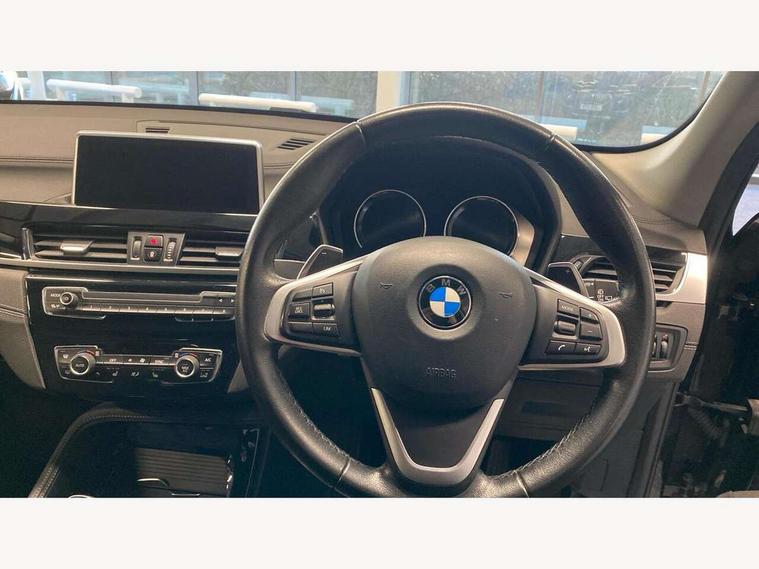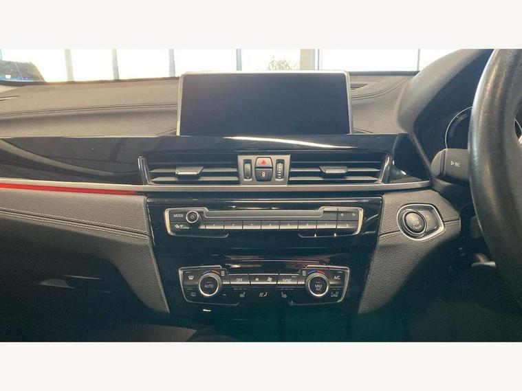Ambient temperature display, Attentiveness assist, Automatic tailgate opening, BMW Online services, BMW remote services, BMW Teleservices, Brake pad wear indicator in front and rear, Front/rear park distance control (PDC), Instrument cluster with speedometer with miles per hour read out, tachometer and fuel gauge, Lights on warning by audio warning signal when ignition is switched off, On board computer, Optimum shift indicator, Outside temperature gauge, Park assist system, Personal Profile - automatic lock when driving away selectable, Real time traffic information, Service interval indicator, Servotronic PAS, Stop/start button, Tyre puncture warning system, 12V compressor with integrated sealant injection bottle and hose, Anti-roll bars, Balancer shaft, Drive performance control with ECO PRO comfort + sport mode, Electronic differential lock, High precision injection, Larger fuel tank capacity (61 litres), Performance Control, Twin tube gas filled shock absorbers with degressive characteristic curve, 2 USB Power socket for rear seat, DAB Digital radio, USB connection located in centre console, USB/audio interface, Adjustable headlights, Aero curtain, Automatically dimming rear view mirror, Body colour bumpers, Body colour door handles, Body colour door mirrors, Clear lenses direction indicator lights, Direction indicator side lights integrated exterior mirrors, Dynamic brake lights, Electrically adjustable door mirrors with aspheric on driver side, convex on passenger side with integrated indicators, Exclusive front door sill finishers with BMW designation, Exterior mirrors - electrically folding with anti-dazzle, Fingertip control / anti-trap function on electric window, Follow me home headlights, Front air guide finished in black silver, Front air inlets in matt black with silver finisher matt, Front and rear bumper system, Front and rear electric windows, Front bumper underbody protection in silver matt, Green tinted heat protection glazing glass, Headlight beam throw control, Heated door mirrors, Heated windscreen washer jets, High level third brake light, Kidney grille with 14 chrome matt aluminium fronted with black matt sides vertical bars, LED daytime running lights, LED front fog lights, Lightweight engineering, Model designation, Rain sensor including auto headlights activation, Rear fog lights, Rear window aerial, Rear window wash/wipe, Reversing light in rear light cluster, Roof mouldings in matt black, Satin matt aluminium exterior trim, Shark fin antenna, Sill cover matt black with matt silver insert, Twin chrome exhaust tailpipes x2, Visible VIN plate, Welcome lighting, 12v power point in centre console, 3 rear headrests, 3 spoke sport leather steering wheel, 4 grab handles, 40:20:40 split folding rear bench seat, Automatic light activation, Black door sill finishers with BMW designation, Boot light, Child seat ISOFIX attachment for two outer rear seats and front passenger seat with anchorage points, Dakota leather upholstery with perforation and contrast stitching, Driver and front passenger heated seats, Driver/front passenger seat backrest back with luggage net, Driver/passenger sunvisors with ticket holders, Dual zone automatic air conditioning, Extended storage, Front and rear door armrests, Front centre armrest/sliding cover, Front/rear adjustable head restraints, Illuminated glovebox, Leather gearknob/gaiter/handbrake grip, LED ambient lighting in door trim, Luggage area underfloor compartment, Luggage compartment access via recessed handle below tailgate, Luggage compartment lighting, Luggage compartment loading edge with stainless steel insert, Manually adjustment steering wheel column, Multifunction steering wheel, Rear coded belt buckles, Steering wheel gearshift paddles, Velour floor carpets, Extended lights pack - X1, Extended storage package - X1, 3 rear 3 point seatbelts, ABS/EBD, Audio/visual collision warning system, Automatic Stability Control (ASC), Battery safety cut-off, BMW emergency call, Brake drying, Brake energy regeneration, Braking readiness, Cornering brake control (CBC), Crash Sensor - activates hazard/interior lighting + unlocks doors, Driver/Front Passenger airbags, Driver/front passenger side airbags, Dynamic brake control, Dynamic stability control + (DSC+), Dynamic Traction Control - DTC, Electronic parking brake, Front and rear head airbags, Front passenger airbag deactivation, Front seatbelt force limiters, Front ventilated disc brakes, Hill start assist, Pyrotechnically pre-tensioned front seatbelts, Rear disc brakes, Rear door child safety locks, Seatbelt security check for driver and front passenger, Side impact protection, Twin horns, Tyre pressure monitor, Warning triangle and first aid kit, Auto door lock when driving, Central locking switch for all doors, fuel filler cap and luggage compartment, Check control system for monitoring of lights and door/luggage compartment open warning, Engine immobiliser, Locking wheel nuts, Remote control Thatcham category 1 alarm, Remote control with integrated two key, Contrast stitching on instrument panel, High gloss black centre console, Low rolling resistance tyres,