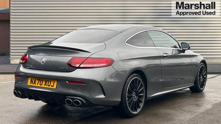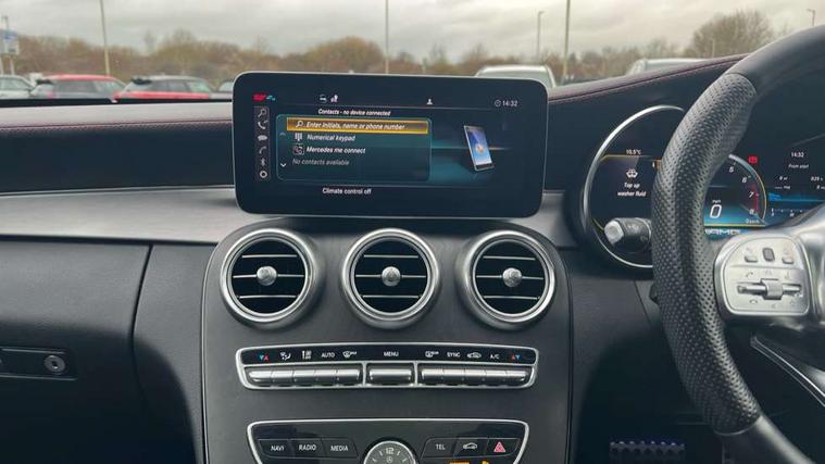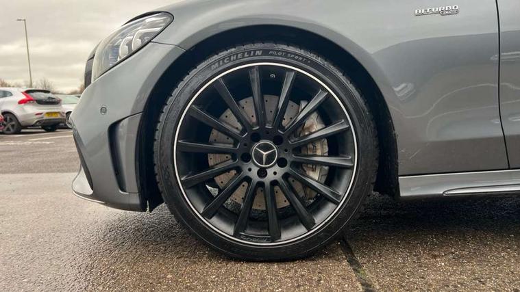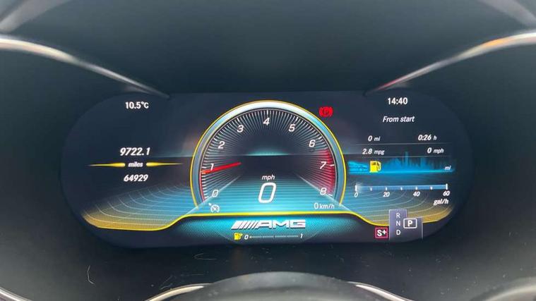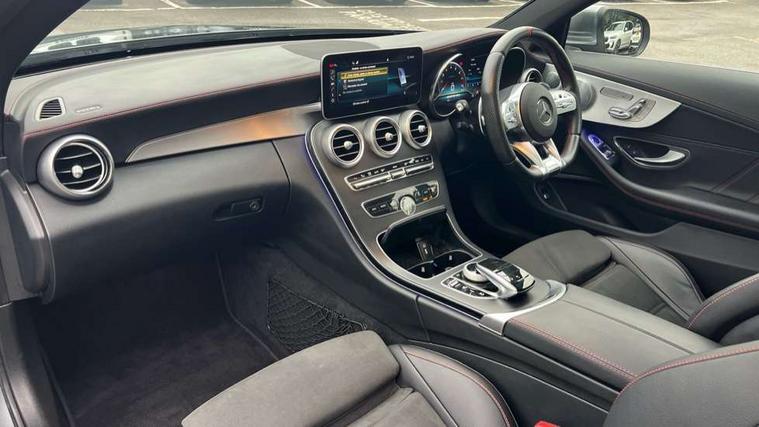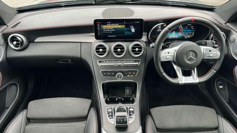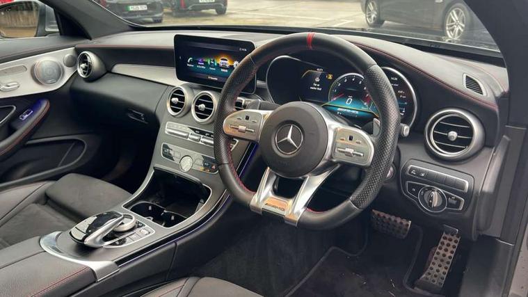 12.3" Active TFT crystal driver's instrument display, 2 stage speed sensitive sport steering, 360 camera, Active park assist with parktronic system, AMG boot logo in central screen, Attention assist, Bluetooth interface for hands free telephone, Collision prevention assist plus, Comand Online HDD Nav with media interface, radio/CD/DVD/MP3, 10.25 screen, linguatronic voice control, DYNAMIC SELECT with a choice of driving modes (ECO, Comfort, Sport, Sport+ and Individual), ECO start/stop function, Mercedes me connect including emergency call system, accident recovery, breakdown management and maintenance, Multi function trip computer, Outside temperature display, Pre-wiring for SD navigation system, Remote boot release, Service indicator (ASSYST), Smartphone integration with Apple CarPlay and Android auto, Status display for rear seat belts in instrument cluster, Wireless charging, 66l fuel tank with increased capacity, 9G Tronic plus 9 speed automatic, AMG performance 4MATIC with torque control distribution, AMG Ride Control sports suspension, Petrol Particulate Filter, Audio 20 with integrated media interface and bluetooth handsfree function, Burmester surround sound system, DAB digital radio tuner, SD card slot, Two USB ports and one SD Card slot in centre console, Adaptive brake lights, AMG bodystyling - front apron with distinctive air intakes and AMG rear apron with diffuser look, AMG design radiator grille with double louvre in matt iridium silver with AMG lettering, AMG performance exhaust system, Body coloured bumpers, Door sill panels with AMG lettering, Electric panoramic glass sunroof, Electric windows with one touch opening/closing and obstruction sensors, Exterior mirrors heated and electronically adjustable, Full LED tail lamps, Green tinted glass, LED daytime running lights, LED Indicators, LED third brake light, Multi beam LED headlights, Privacy glass (rear side windows and rear screen), Radio aerial integrated into rear window, Rain sensor windscreen wipers, Side windows surround in polished aluminium, V8 Bi-Turbo 4Matic badge on front wings, 2 cupholders in front centre console, 2 rear head restraints, 3 spoke flat bottom multi-function sports leather steering wheel in black with topstitching in red, 40:20:40 split folding rear seats, Artico man-made leather upper dashboard and beltlines with contrast stitching, Auto Mercedes-Benz child seat recognition sensor, Electrical height and back adjustment front seat, Floor mats with black leather edging red piping and AMG logo, Front centre armrest with storage compartment, Front head restraints, Front LED reading lights, Heated front seats, Illuminated glove compartment stowage, Interior lighting - 64 colour Ambient lighting, Sports pedals with stainless steel surfaces and rubber studs, Steering wheel audio controls, Steering wheel gearshift paddles, Sunvisors with illuminated vanity mirrors, THERMATIC 2 zone automatic climate control, Interior lighting package - C Class, Keyless go comfort package - C Class Coupe, Mirror package - C Class, Seat comfort pack - C Class, Stowage space pack - C Class, 2 rear seatbelts, 3 point automatic seatbelts, Active bonnet, Adaptive brake system with hold function, hill start assist and brake drying function, Anti-lock braking system (ABS), Automatic seatbelt pretensioner for driver and front passenger, Brake calipers with AMG lettering + perforated brake discs, Dual stage airbags - driver and front passenger, front sidebags, driver kneebag, pelvis bag and windowbags for driver, front and rear passengers, Electronic parking brake, Electronic Stability Programme (ESP), ISOFIX child seat attachment points with top tether in rear, Red seat belts, Sports braking system with larger brake discs, Tyre pressure monitoring system, Warning triangle and first aid kit, Anti-theft alarm system/interior protection with tow-away protection and interior monitoring systems, Central locking with interior switch, automatic locking and crash sensor with emergency opening function, Chrome surround electric key, Immobiliser, Artico man-made leather dashboard with red contrast stitching,