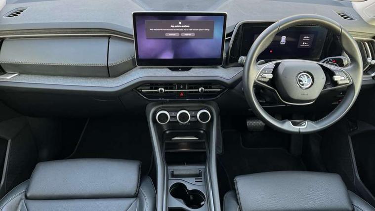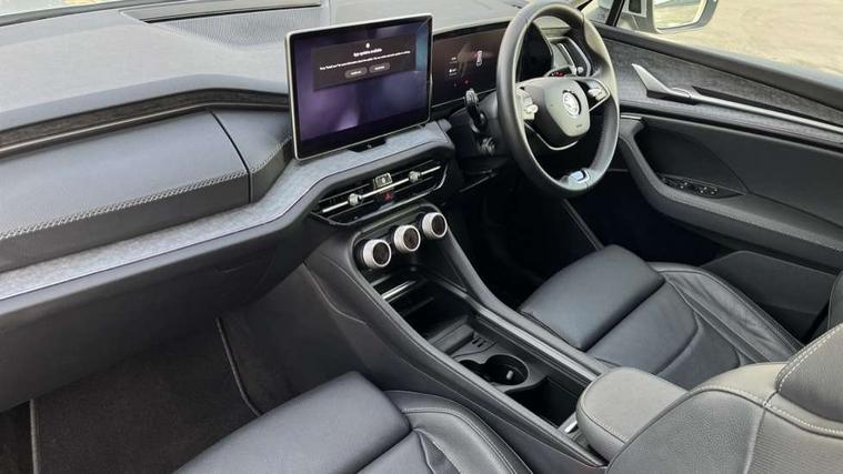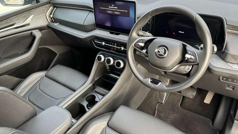 13" satellite navigation touchscreen display, Blind spot detection with door exit warning, Bluetooth system, ChatGPT functionality, Drive mode selector, Driver alert with fatigue sensor, Driver drowsiness alert system, Dry display cleaner, e call+, Front cross traffic assist, Lane assist, PAS, Rear traffic assist, Tailgate unlocking from outside, Traffic sign recognition, USB C Port x 2 in front centre console, Virtual Cockpit - 10.25" digital display, Voice control system, Wireless charging for two smartphones (15W) with cooling function, Wireless SmartLink for Apple CarPlay and Android Auto, 32A charging cable, Stop/start function, 2x USB-C in the rear, DAB Digital radio, Aero front windscreen wipers with intermittent function, Auto dimming rear view mirror, AWL (all weather lighting) and all weather light with cornering function, Black wheel arch surrounds, Body colour bumpers, Body colour door mirrors and handles, Cornering light and poor weather light, Electric folding /adjustable/separted heated/folding door mirrors, auto dimming with boarding sports and memory function, Electric front and rear windows, Exterior black decorative trims, Heat insulating glass in windshield, Heated rear window, Ice scraper in fuel tank cap, Invisible tailpipe, LED daytime running lights, LED rear fog light, LED third brake light in rear spoiler, Light assistant with automatic headlight control and coming home feature, Logo projection in door mirrors, Privacy glass, Rear side wing doors, Rear spoiler, Rear window wiper, Red decorative strip between rear LED lights, Safety reflectors on front and rear doors, Window control switches with black trim, Windscreen wipers with rain sensor, Without engine designation, 1.5l bottle holder points in all door, 12V socket in boot, 1x centre rear reading light, 3 configurable smart dials with 32mm coloured display, 3 seat bench in 2nd row, 4 foldable roof handles with rear coat hooks, Ambient interior lighting - Dashboard, front-door stowage compartments, front and rear door panels and footwell lighting, Automatic gear selector on steering wheel, Chrome interior door handles, Driver/front passenger reading lights, Fabric headlining, Fixed bench 40:60:40 split folding backrests, Front and rear floor mats, Front centre armrest with jumbo box storage compartment, cup holder and 12V socket, Front courtesy lights, Height adjustable front headrests, Isofix child seat fittings in outer rear seats and front passenger with top tether, iV badging on boot, Manually adjustable steering column, Pollen filter, Rear centre armrest with cupholders, Rear seat boot backrest release, Retractable luggage compartment cover, Single front passenger seat, Sliding trunk cover, Small Bags on the inner sides of the front backrests, Storage pocket including mobile phone pockets on the backs of the front seats, Sunvisors with illuminated vanity mirrors, Three rear height adjustable headrests, Ticket holder on A Pillar, Tri zone climate control, Umbrella in door panel x1 made from sustainable materials, Upper and lower glovebox with card holder and coin compartment, USB C port by rear view mirror for charging only (15W), Exterior styling pack - Kodiaq, Auto door release and activation of warning lights in the event of an accident, Driver and front passenger airbag with knee airbag and front passenger airbag deactivation, Electric child locks, Electronic parking brake, ESC (incl. ABS+EMD+MSR+ASR+EDL+HBA+DSR+RBS+ESBS+MCB+TSA+XDS), Front assist with braking reaction to vehicles, pedestrians and cyclists, Front disc brakes, Fuel cut off safety device, Height adjustable front 3 point seatbelts + pretensioners, Hill hold control, Junction assist with automatic emergency braking, Rear disc brakes, Safety vest holder in door, Seat belt reminder for all seats, Three point rear seat belts, Two tone horn, Tyre pressure monitor, Anti-theft wheel bolts, Immobiliser, Remote central locking with 2 keys, Breakdown kit,