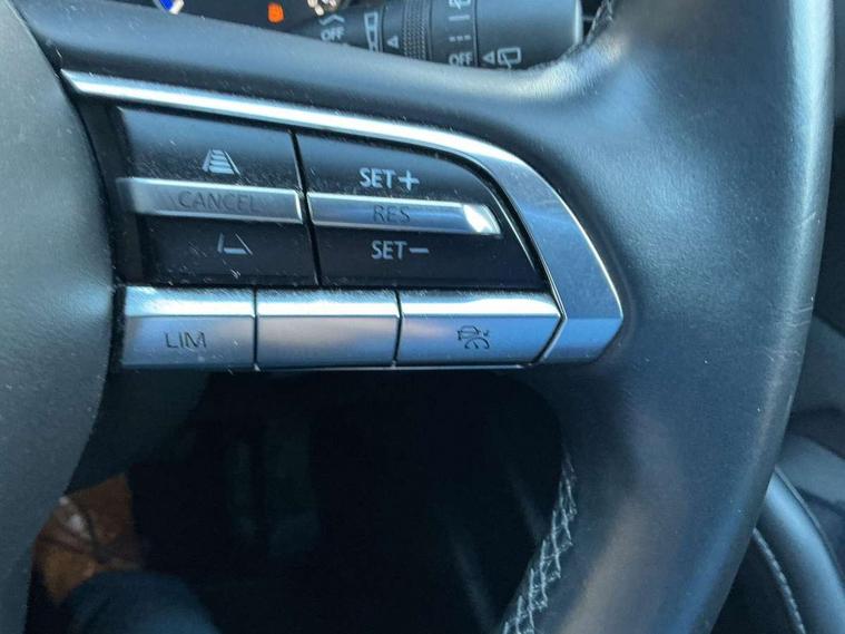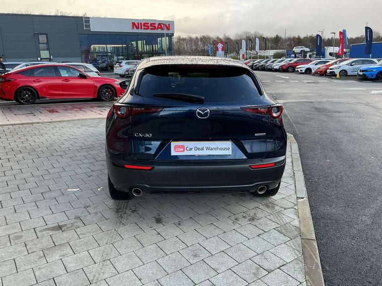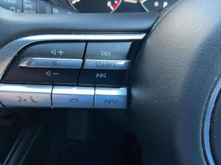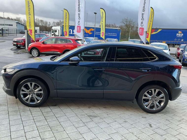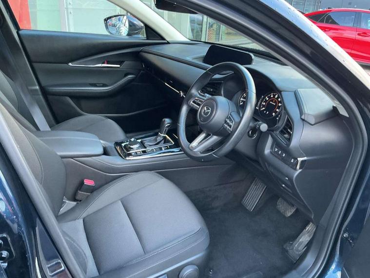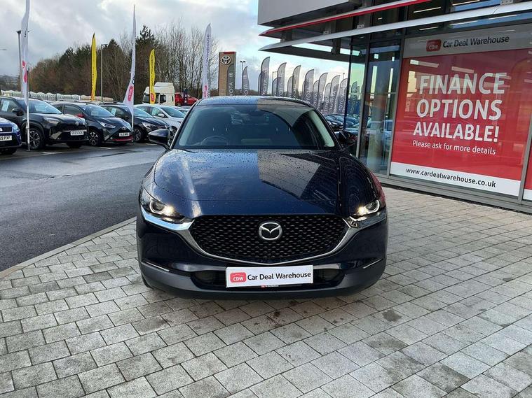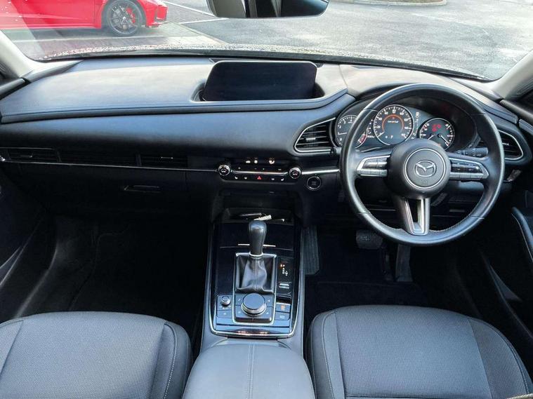 7" TFT Colour driver instrument panel display, 8.8" Colour centre touch screen display with Mazda Connect infotainment, Adaptive cruise control (Mazda radar cruise control) features stop and go, Apple car play/Android Auto, Blind spot monitoring with rear cross traffic alert, Drive mode selector, Driver attention alert system, E-call with GPS, Emergency stop signalling system, Engine start/stop button, Front and rear parking sensors, Integrated bluetooth, Integrated Mazda navigation system, Intelligent speed assist, Lane keep assist system (LAS) with Lane departure warning system (LDWS), PAS, Power lift gate, Reversing camera, Service indicator, Trip computer, Window projected colour active driving display (head up display) with traffic sign recognition, i-stop, 2 USB charging ports, AM / FM / DAB radio with 8 speakers, Multimedia Commander including separate volume dial, Steering wheel mounted audio/bluetooth controls, Adaptive LED Headlights, Auto dimming driver's door mirror, B-pillar and C-pillar garnishes in piano black finish, Body coloured, electrically adjustable, heated auto power folding door mirrors with integrated indicators, Coming/leaving home lighting function, Dual chrome exhaust, Dusk sensing headlights, Electric front/rear windows with one touch auto up/down, Frameless auto dimming interior rear view mirror, Front grille in piano black finish, Front kodo turn signal, High beam assist, Piano black rear roof spoiler, Power tilt/slide sunroof, Privacy glass (rear side windows and rear screen), Rain sensing front wipers with adjustable speed and intermittent wipe, Rear fog lights, Rear wiper, Signature front LED daytime running lights, Signature LED rear combination lights with LED rear turn lights, 60/40 split fold down rear seats, Chrome centre bezel steering wheel, Chrome horn pad ring, Cloth door panel inserts, Cloth upholstery with interior accents, Dashboard, door cards and front centre armrest in navy blue cloth, Driver and front passenger visors with covered vanity mirror and driver ticket holder, Driver seat manual slide, recline and height adjust, Driver, Front passenger and two rear grab handles with coathooks, Dual zone climate control air conditioning with rear air vents, Electrical power outlet, Folding rear centre armrest with two cup holders, Front and rear (x3) head restraints, Front and rear door pockets, Front and rear LED lighting, Front armrest, Front centre storage with two cupholders, Front passengers seat manual slide, recline and height adjustment, Glove box handle with chrome surround, Glovebox illumination, Heated front seats with 3 stage setting, ISOFIX child seat anchorage points attached on outer rear seats, Leather wrapped gear shift knob, Leather wrapped steering wheel with telescopic and tilt adjustment, Luggage compartment light, Paddle shift controls, Rear passenger seat map pockets, Roof mounted sunglasses holder, 3 point ELR front seat belts x2 with pretensioners, 3 point ELR rear seat belts, Anti-lock braking system (ABS), Driver/Front Passenger airbags, Drivers knee airbag, DSC - Dynamic Stability Control, Electronic parking brake with auto disengage function and auto hold function, Front and rear curtain airbags, Front passenger airbag cut-off switch, Front side airbags, Front smart city brake support, G-Vectoring control plus, Hill launch assist, Mild Hybrid system with regenerative braking, Seatbelt reminder for driver/front passenger and rear seats, Traction control system (TCS), Tyre pressure monitoring system (TPMS), Remote central locking with deadlocking and automatic door lock when driving, Smart keyless entry, Thatcham accredited alarm and immobiliser, 18" Bright silver metallic alloy wheels, Emergency tyre repair kit,