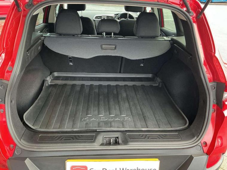 Apple car play/Android Auto, Cruise control + speed limiter, Door/boot open warning light, Eco mode, Exterior temperature gauge, Low fuel level warning light, Oil level gauge, PAS, R-Link Multimedia system with 7" touch screen, satellite navigation and western European map, Rev counter, Traffic sign recognition, Trip computer, Visio system - lane departure and high beam assist, Diesel particulate filter, 4x35W DAB radio, Arkamys 3D sound with bluetooth and USB connection, Fingertip controls for audio system, Automatic headlights and windscreen wipers, Body colour door handles, Body coloured bumpers, Body coloured door mirrors, Bodyside mouldings with chrome inserts, Chrome exterior trim, Chrome window surround, Cornering front fog lights, Day/night rear view mirror, Electric adjustable/heated/folding door mirrors, Extra tinted glass in rear windows and tailgate, Front and rear electric windows, Front and rear towing rings, Front wipers with variable intermittent facility, Heated rear windscreen, Integrated fuel filler cap, LED daytime running lights, Rear wiper, Roof rails, 12v power outlet - front, 3 height adjustable rear headrests, 3 seat rear bench, 60/40 split folding rear seat, Adjustable dashboard illumination, Air recirculation system, Driver's seat with lumbar adjustment, Driver/passenger reading lights, Dual zone automatic climate control, Front centre armrest, Front courtesy lights, Front footwell illumination, Glovebox with light, Height adjustable front headrests, Height/reach adjust steering wheel, Illuminated boot, Isofix system on outer rear seats, Leather steering wheel, Pollen filter, Rear courtesy lights, Rear passenger heating ducts, Sun visors with mirrors, Variable boot floor, ABS/EBD, Brake assist function, Driver/passenger 2 stage auto adaptive airbags, Electronic parking brake, ESP with ASR and UCL (understeer control logical), Front and rear curtain airbags, Front lateral airbags, Front seat belts warning, Height adjustable front seatbelts + pretensioners, Hill start assist, Manual passenger airbag deactivation function, Rear seatbelt warning indicator, Three 3 point rear seatbelts, Traction control, Tyre pressure monitor, Anti-drill door locks/ignition barrel, Deadlocks, Hands free Renault card, Insurance approved Cat 1 alarm system, Insurance Approved Immobiliser, RAID (Renault Anti-Intruder Device) with automatic door locking, Remote central locking,