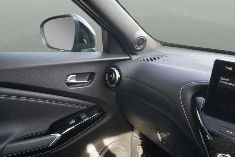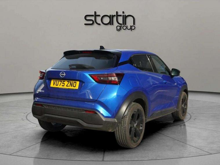 12.3" full colour TFT screen combimeter, Drive modes select (Eco, normal and sport), Emergency and breakdown call, Front parking sensor, Idle start/stop system, Intelligent driver alert system, Intelligent lane intervention, Lane departure warning system, Nissan connect 12.3" touch screen entertainment system, Nissan connect nav with TomTom traffic, Nissan connect services, Outside temperature sensor, Power Steering, Rear parking sensor, Stop/start button, Traffic sign recognition, Trip computer, Voice recognition, WiFi connectivity, Wireless Apple CarPlay and Google Android auto, Wireless Smartphone charger, 10 Bose speakers 8 speakers and 2 headrest speakers for driver/passenger seats, 2 X Rear console USB port, Bluetooth system, USB, Aux-in and 12V socket, Bose personal plus audio system, DAB Digital radio, Auto dimming frameless rear view mirror, Automatic hazard signal with emergency stop signal, Body colour door handles, Electrically adjustable door mirrors with integrated indicators, Follow me home headlights, Front and rear electric window with one touch driver window, High beam assist, LED 3rd brake light, LED daytime running lights, LED front fog lights, LED headlamps, LED rear fog lamp, LED rear lamps, One touch passenger window, Rear privacy glass, Rear side wing doors, Rear wiper, Roof spoiler, Shark fin roof antenna in solid Black, Solid black door mirrors, Three blink turn signal, 3 height adjustable rear headrests, 3 seat bench in 2nd row, 60/40 split folding rear seat, Card holder on driver sunvisor, Door ambient lighting, Driver seat back pocket, Driver side rear coat hanger, Driver/passenger sunvisors and vanity mirrors, Front and rear cabin lights, Front armrest, Front door pockets with bottle holders, Front head restraints, Front/rear passenger grab handles, Gear console ambient circle lighting, Height adjustable driver's seat, Internal chrome door handles, Luggage board, Luggage space lighting, Monoform sporty seats, Multifunction steering wheel, Passenger seat back pocket, Rear door bottle holders, Single front passenger seat, Smooth synthetic leather steering wheel, Synthetic leather kneepad, Synthetic leather shift knob, Synthetic leather upholstery, Telescopic steering wheel adjustment, Two cupholders in front centre console, Two rear isofix child seat anchorage points with top tether, Welcome light and console tray ambient lighting, Advanced safety shield pack - Juke Manual, Comfort pack - Juke, Heat pack with height adjustable passenger seats - Juke, ABS with EBD and brake assist, Active ride control, Active Trace Control, Driver and passenger airbags, Driver and passenger side airbags, Electric handbrake with auto hold function, Electronic Stability Programme (ESP), Front and rear curtain airbags, Height adjustable seatbelts, Hill start assist, Intelligent emergency braking with pedestrian and cyclist recognition, Rear door child safety locks, Seatbelt reminder for driver/front passenger and rear seats, Three 3 point rear seatbelts, Traction control, Tyre pressure monitoring system, VDC Dynamic Vehicle Control, Alarm, Immobiliser, Intelligent key and start push button with walk away lock and approach unlock functions, Remote central locking, 19" Alloy wheels, Tyre puncture repair kit,