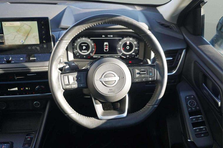 2 front USB-C ports, 2 rear USB-C ports, 360 degree Intelligent around view monitor with moving object detection, Blind spot intervention, Blind spot warning, Drive assist custom mode, Drive modes (sport, normal, eco), Driver drowsiness and attention warning, Electric speed sensitive power steering, Emergency and breakdown call, Emergency lane keep assist, Emergency Stop Signal (ESS), Engine start/stop button, Event data recorder, Front and rear parking sensors, Full Digital 12.3" TFT Digital Combimeter, Google virtual personal assistance, Idle stop/start system, In-car WIFI hotspot, Intelligent Cruise control (ICC), Intelligent forward collision warning, Intelligent speed assist, Lane departure warning system, Nissan connect 12.3 inch touchscreen infotainment system, Nissan connect navigation with google maps, Nissan connect services 2.0 (Google Automotive System), Outside temperature sensor, Rear cross traffic alert, Reversing detection, Traffic jam pilot, Wireless Apple CarPlay/Android Auto, Wireless charging pad, Limited slip differential, 6 speakers, AM/FM audio system with DAB, Bluetooth audio streaming, Auto rear wiper when reversing, Body colour mirror caps, Body coloured door handles, Bodyside mouldings, Chrome side window finisher, Electric auto folding door mirrors, Electrically adjustable and heated door mirrors with LED turn indicator, Follow me home headlights, High beam assist, Intelligent auto headlights, LED 3rd brake light, LED daytime running lights, LED Headlights, LED rear lights, One touch front and rear electric windows with remote opening and closing, One touch passenger window, Partially body coloured bumpers, Rear privacy glass, Rear roof spoiler, Rear side wing doors, Rear styling plate, Shark fin antenna, Splash free rain sensing wipers, Super UV and infrared cut glass, Three blink turn signal, 3 bench rear seats in 2nd row, 3 rear headrests, 60/40 split folding rear seat bench, Chrome interior door handles, Cloth upholstery, Dark headlining, Driver seat back pocket, Dual zone automatic climate control with pollen filter, Front door with bottle holders, Height adjustable front headrests, Luggage board system, Luggage space lighting, Multifunction steering wheel, Passenger seat back pocket, Rear door bottle holders, RGB ambient light (Full area coverage), Single front passenger seat, Smooth leather steering wheel, Steering wheel gearshift paddles, Tilt/telescopic adjustable steering wheel, Two rear isofix child seat anchorage points with top tether, 3x3 point rear seatbelt pretensioners + load limiters, Autonomous emergency braking, Child locks on rear doors, Curtain and front side, far side airbags, Driver and passenger airbags, Driver, passenger and 2nd row rear seat belt reminder, Electric handbrake with auto hold function, Front seatbelt pretensioners + load limiters, Height adjustable front seatbelts, Hill start assist, intelligent front emergency braking, Rear automatic braking, Tyre pressure monitoring system, Vehicle dynamic control, Engine immobiliser, Intelligent key with walk away lock and approach unlock functions, Remote central door locking with deadlocking, Thatcham alarm, 18" Diamond cut alloy wheels, Tyre puncture repair kit,