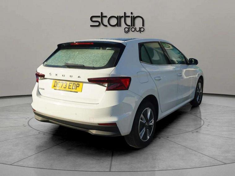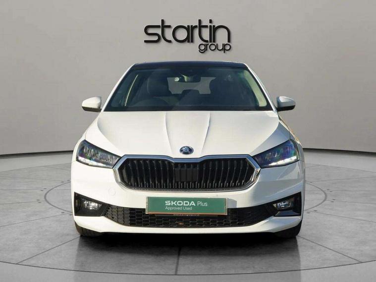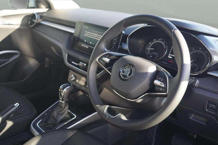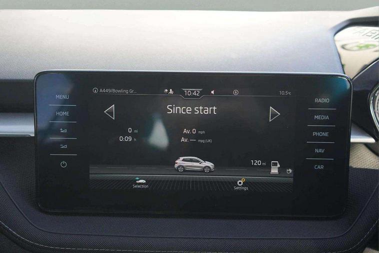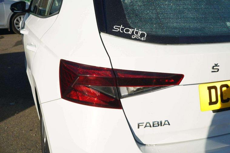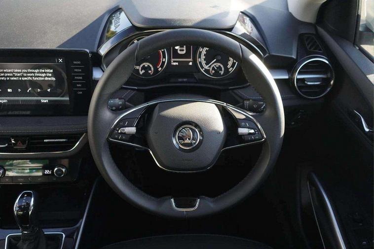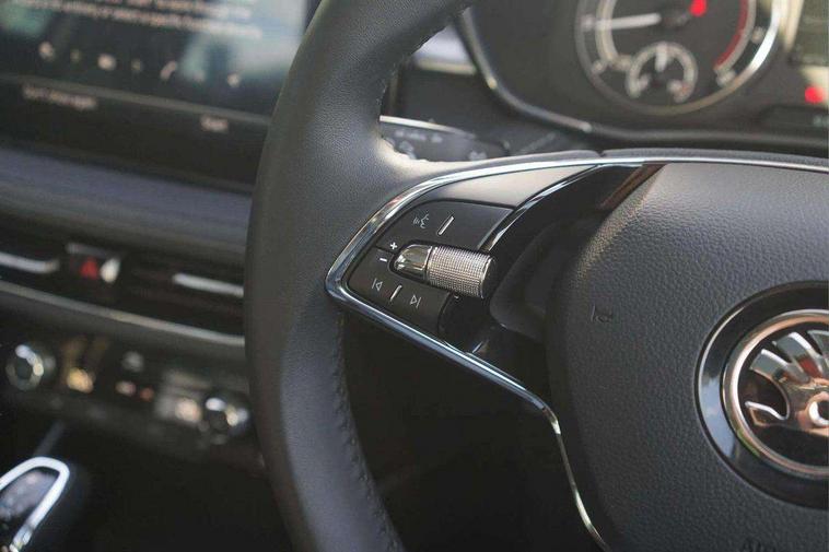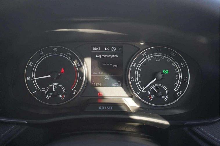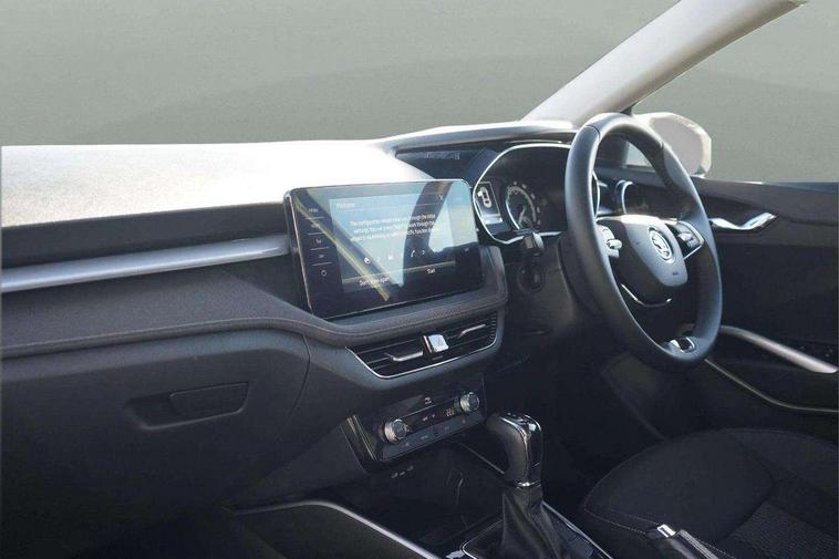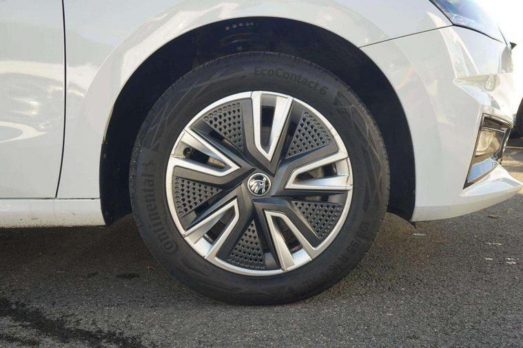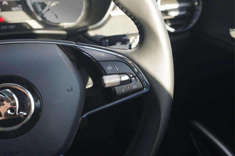 Bluetooth connection, Driver alert system - DAS, Electromechanical power steering, Exterior temperature gauge, Service interval indicator, 2x USB-C in the front (for data transmission and charging), 6 Speakers (4 in front and 2 in rear), Auxiliary socket for external MP3 player, DAB digital radio reception, Web radio, Auto dimming rear view mirror, Basic LED Headlights, Body colour door mirrors, Body coloured bumpers, Chrome window surround, Door mirror integrated indicators, Electrically adjustable and heated door mirrors, Front and rear electric windows, Front fog lights, Front window wiper intermittent control, Headlight range control - Automatic, Ice scraper in fuel cap, LED daytime running lights with coming and leaving home feature, Rain sensor, Rear LED fog light, Rear side wing doors, Rear window wiper with washing nozzles, Roof mounted spoiler, SKODA tailgate lettering in chrome, Third brake light, 3 rear headrests, Backrest split and folding, Central console with fixed cup holder and storage box, Chrome handbrake release button, Comfort seats, Fabric upholstery, Front centre armrest, Gearshift knob/handle in leather, Hand brake lever handle in leather, Height adjustable front headrests, Height adjustable front seats, Height adjustable steering wheel, ISOFIX and TopTether anchorage points to the outer rear seats, ISOFIX and TopTether on the front passenger seat, Luggage compartment lighting, Manually adjustable lumbar support in front seats, Pollen filter, Rear seat bench unsplit, Removable cup holder, Single front passenger seat, Storm grey headlining, Sun visors with mirror and airbag label on passenger side, Textile floor mats, Ticket holder, Umbrella in drivers door, 3-point height adjustable front seats belts with pretensioner and force limiter, Automatic warning lights in case of crash, Driver and passengers airbag with switch off function, e-Call+, ESC including ABS, MSR, ASR, EDS, HBA and XDS, Front and rear seat belt warning, FRONT ASSIST (AEB City and AEB Inter Urban), Front side airbags, Head airbags, Hill hold assist, One tone horn, Pedestrian protection, Three rear 3-points safety seat belts with pretensioner and force limiter including stop function for outer rear seat belts, Tyre pressure monitoring system, Anti-theft alarm system including immobiliser, interior monitoring, backup horn, and towing protection, Central locking with radio remote control, interior controls, SAFE function and 2 foldable keys, KESSY - Keyless engine start/stop, Chrome edged air vents, Satin black door and side trim panel in front, Anti-theft wheel bolts protection, Super-low rolling resistance tyres,