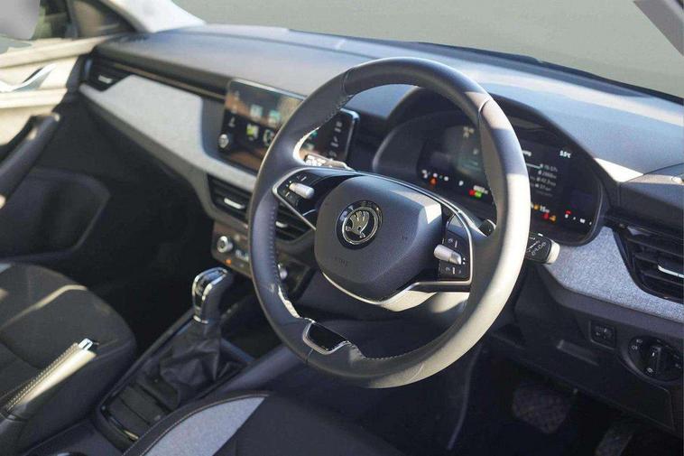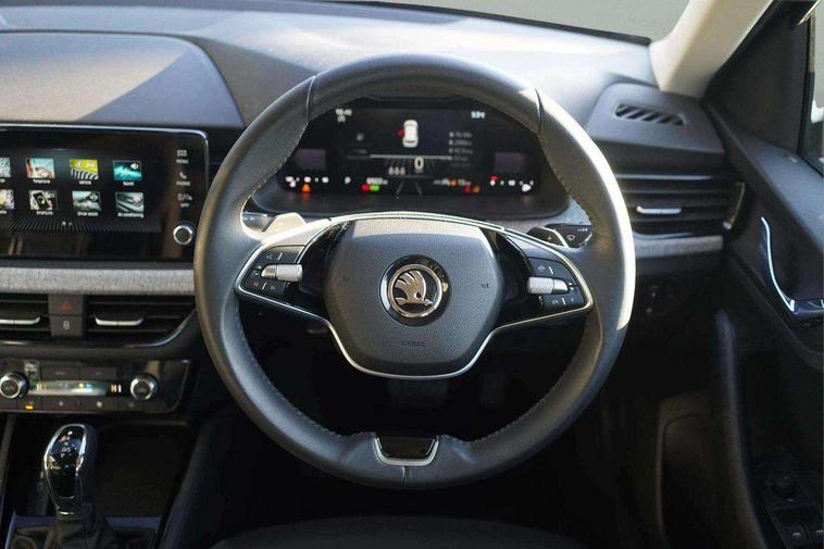 8" Digital display, Advanced driver attention and drowsiness monitor, Bluetooth system, E-call, Front assist system, PAS, Rear parking sensors, Service indicator, Speed limiter, Traffic sign recognition, Wireless smartlink, 4 USB C ports, 8 Speakers, 8.25" Skoda infotainment display, DAB Digital radio, Auto dimming rear view mirror, Automatic headlight control with coming home and leaving home feature, Black roof rails, Body colour bumpers, Body colour door mirrors and handles, Chrome grille surround, Front and rear electric windows, Full LED headlights, Heated rear window, LED daytime running lights, LED front turning lights, LED high beam, LED low beam, LED third brake light, Rear LED fog light, Rear side wing doors, Rear wiper, Ticket holder inside windscreen, 12V socket in luggage compartment, 3 seat bench in 2nd row, Black hotstamping, Cargo elements, Chrome inner door handles, Driver and passenger sun visors with vanity mirror, Dual zone climate control, Front and rear roof lights, Front centre armrest, Front head restraints, Glove compartment with illumination, Height adjustable driver seat, Height adjustable front passenger seat, Ice scraper, Inner circulation control with pollen filter, ISOFIX on front passenger seat, Isofix preparation for back seats, Krepp recycled decor inserts, Leather gearknob and handbrake lever, Loft cloth upholstery, Manual lumbar support for front seats, Net package and top tether hooks in boot space, Net under rear shelf, Overhead glasses storage compartment, Pocket on the back of both front seats include mobile phone pockets, Rake/reach adjustable steering wheel, Reading lights, Satin black door inserts, Single front passenger seat, Textile floor mats, Third rear headrest, Top tether for front passenger seat, Umbrella in driver's door, 3x3 point rear seatbelts, Airbags - driver and front passenger, Disc brakes, ESP, Extended and predictive pedestrian/cyclist protection, Front passenger airbag deactivation switch, Front side airbags with curtain airbags, Hill hold control, Manual leather parking brake, Manual rear child locks, One tone horn, Seatbelt reminder for driver an co-driver, Traction control, Tyre pressure monitor, Anti-theft alarm system with interior monitoring, backup horn, towing protection and remote central locking with SAFE system, Anti-theft wheel bolts, Electronic engine immobilizer,