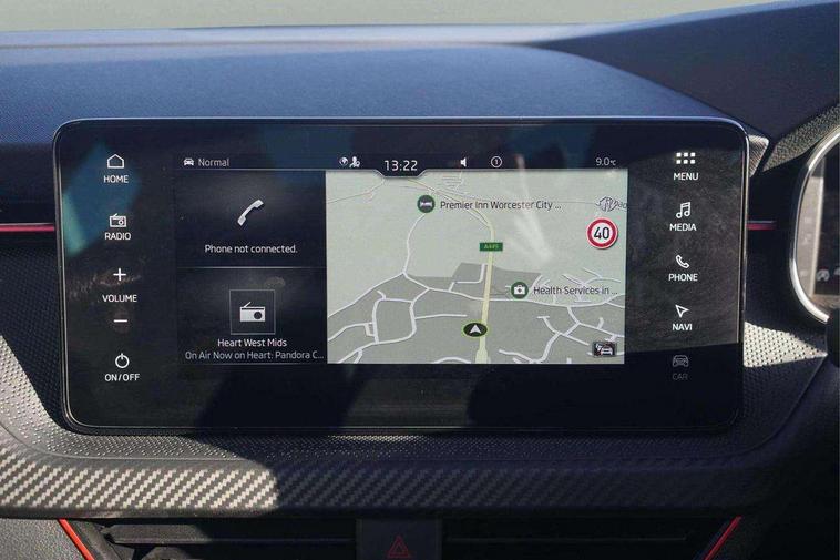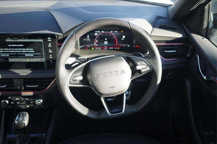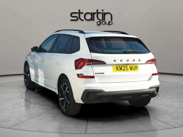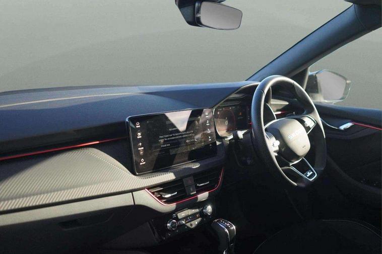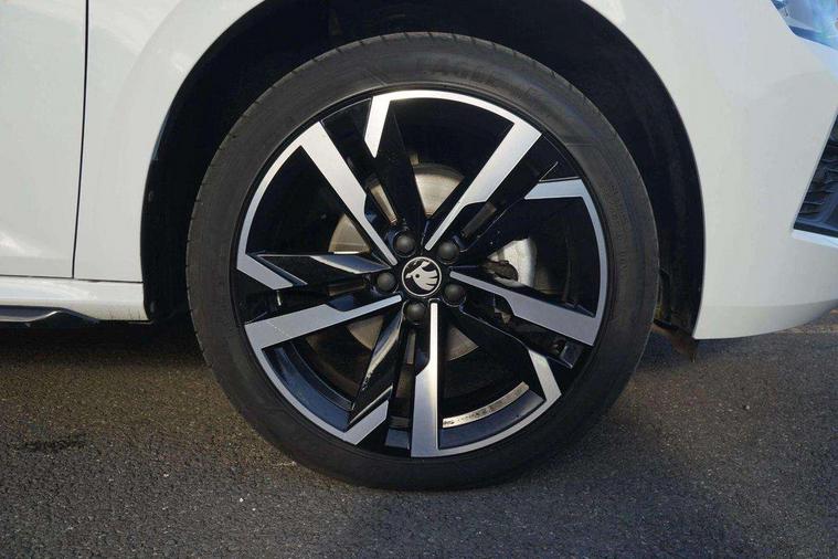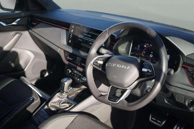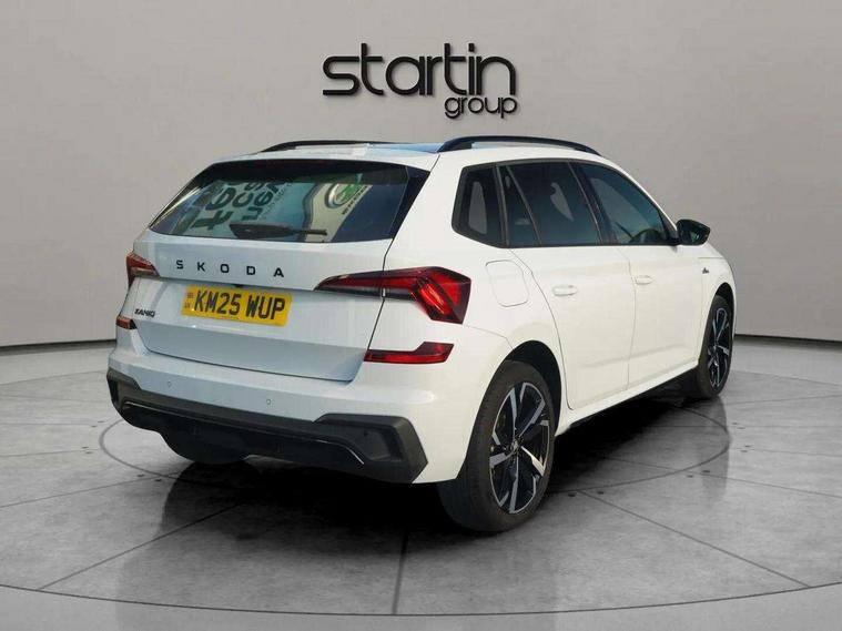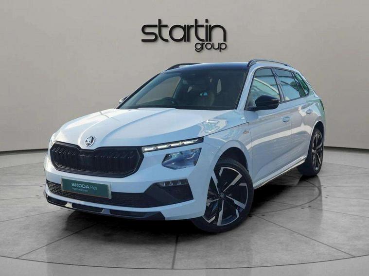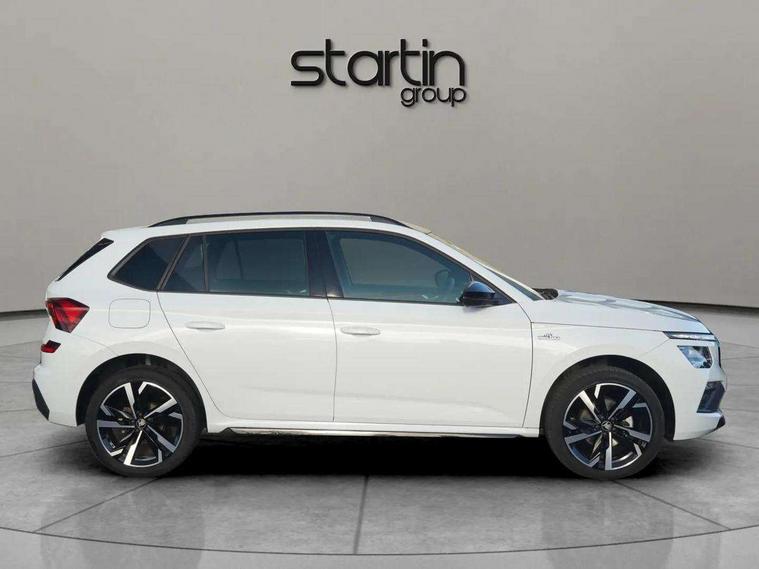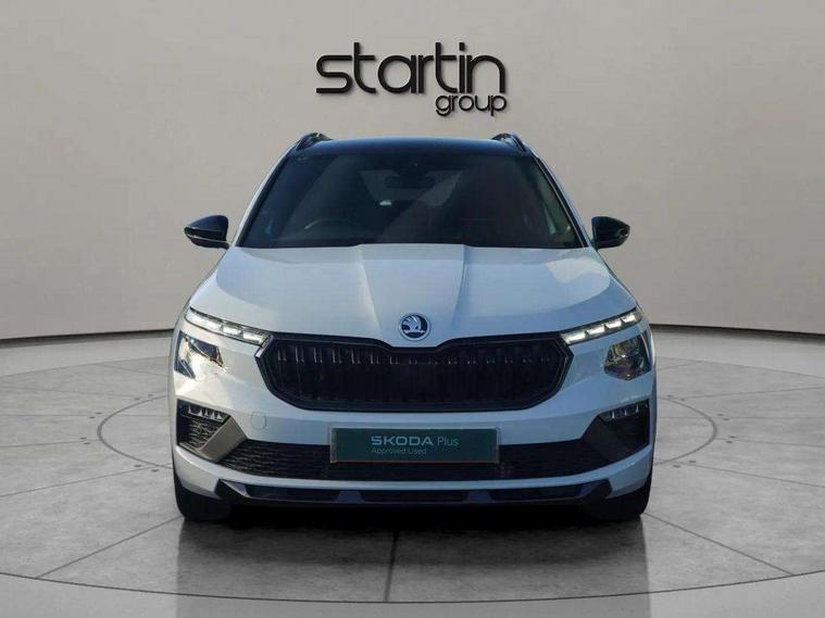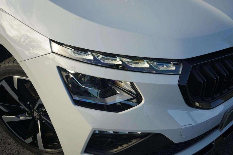Advanced driver attention and drowsiness monitor, Bluetooth system, E-call, Front assist system, PAS, Rear parking sensors, Rear view camera, Service indicator, Speed limiter, Traffic sign recognition, Virtual cockpit with 10.25" display, Voice control system, Wireless smartlink, 4 USB C ports, 8 Speakers, 9.2" Skoda navigation display, DAB Digital radio, Auto dimming rear view mirror, Automatic headlight control with coming home and leaving home feature, Black door mirrors, Black radiator grille, Black rear diffuser, Black roof spoiler, Body colour bumpers, Body colour door handles, Boot lettering in black, Extended tailgate glass, Fixed panoramic sunroof with black roof rails, Front and rear electric windows, Heated rear window, LED daytime running lights, LED high beam, LED low beam, LED third brake light, Light sensors, Monte carlo plaque, Privacy glass, Rear side wing doors, Rear wiper, Ticket holder inside windscreen, 12V socket in luggage compartment, 3 seat bench in 2nd row, Aluminium pedals, Ambient lighting in white/red, Art leather carbon decor inserts, Art leather carbon door inserts, Black roof lining, Cargo elements, Chrome inner door handles, Driver and passenger sun visors with vanity mirror, Dual zone climate control, Front and rear roof lights, Front centre armrest, Front head restraints, Glove compartment with illumination, Height adjustable driver seat, Height adjustable front passenger seat, Ice scraper, Inner circulation control with pollen filter, ISOFIX on front passenger seat, Isofix preparation for back seats, Leather gearknob and handbrake lever, Manual lumbar support for front seats, Monte Carlo cloth upholstery, Net package and top tether hooks in boot space, Net under rear shelf, Pocket on the back of both front seats include mobile phone pockets, Rake/reach adjustable steering wheel, Reading lights, Rear centre armrests, Red hotstamping, Single front passenger seat, Sports seats, Textile floor mats, Third rear headrest, Top tether for front passenger seat, Umbrella in driver's door, Light and view plus package - Kamiq, 3x3 point rear seatbelts, Airbags - driver and front passenger, Disc brakes, ESP, Extended and predictive pedestrian/cyclist protection, Front passenger airbag deactivation switch, Front side airbags with curtain airbags, Hill hold control, Manual leather parking brake, Manual rear child locks, One tone horn, Seatbelt reminder for driver an co-driver, Traction control, Tyre pressure monitor, Anti-theft alarm system with interior monitoring, backup horn, towing protection and remote central locking with SAFE system, Anti-theft wheel bolts, Electronic engine immobilizer, 18" Ursa black diamond cut alloy wheels,