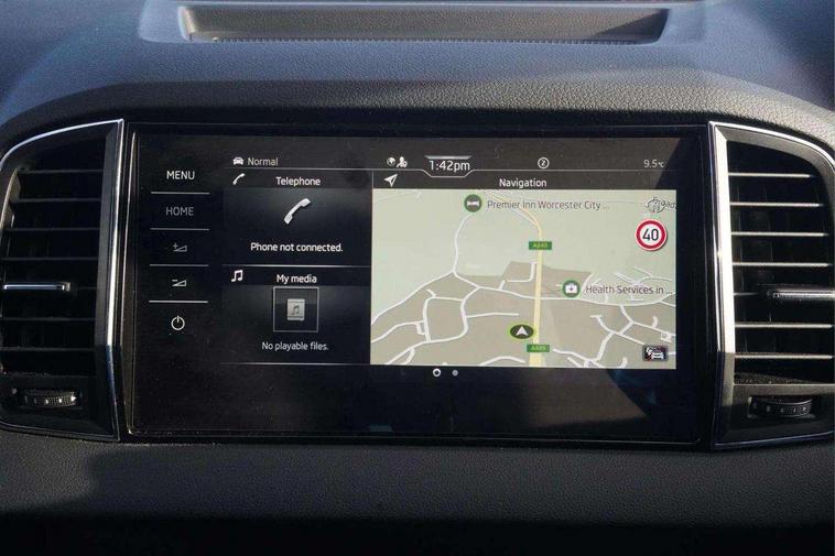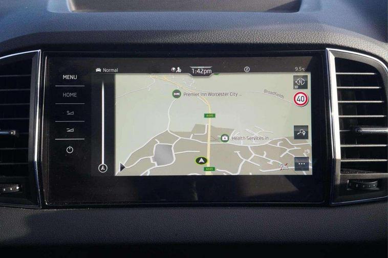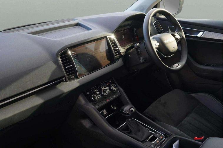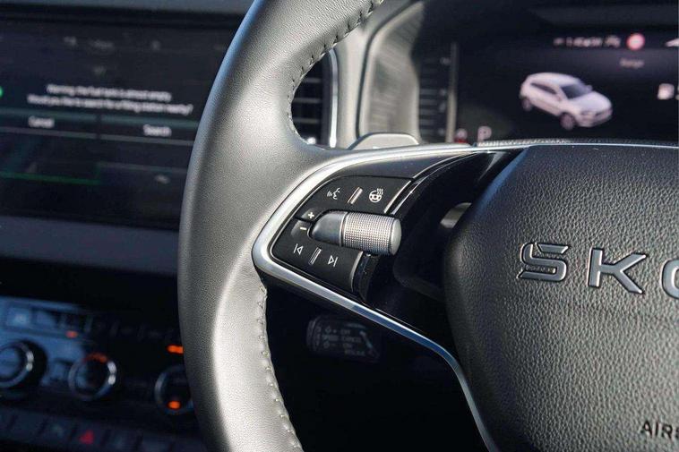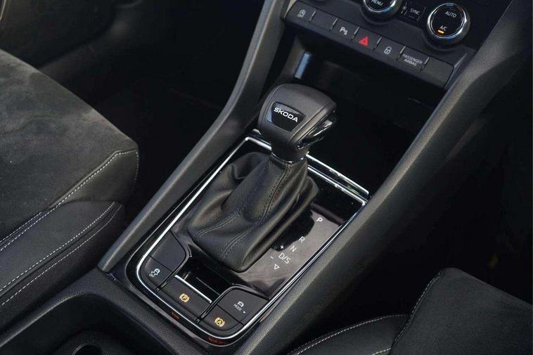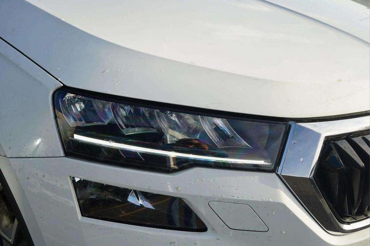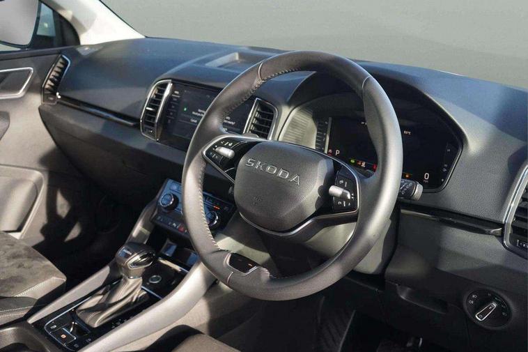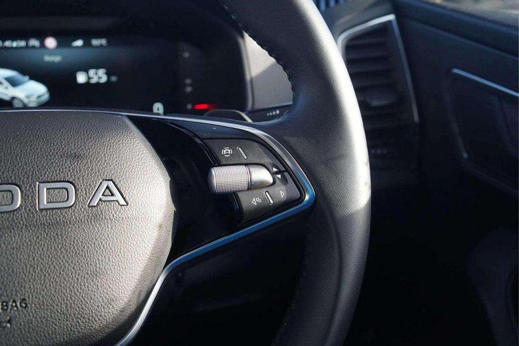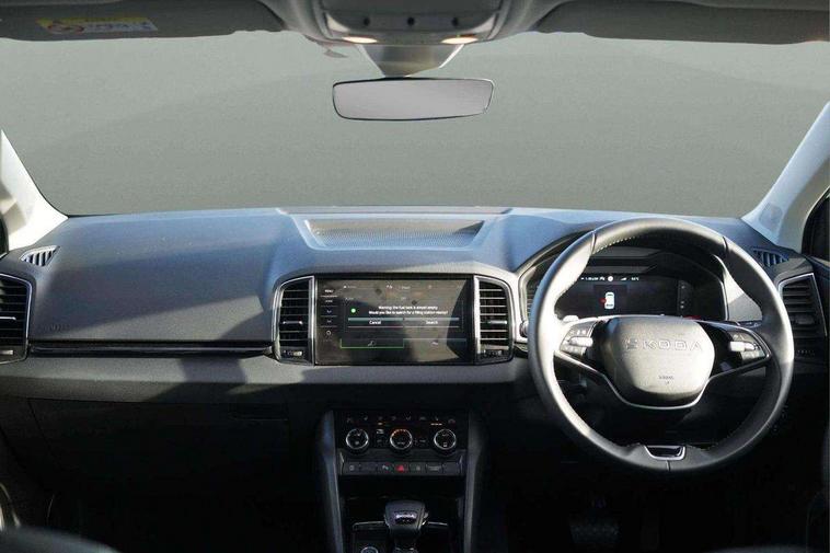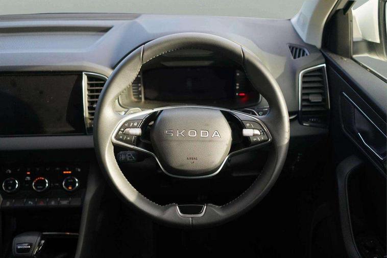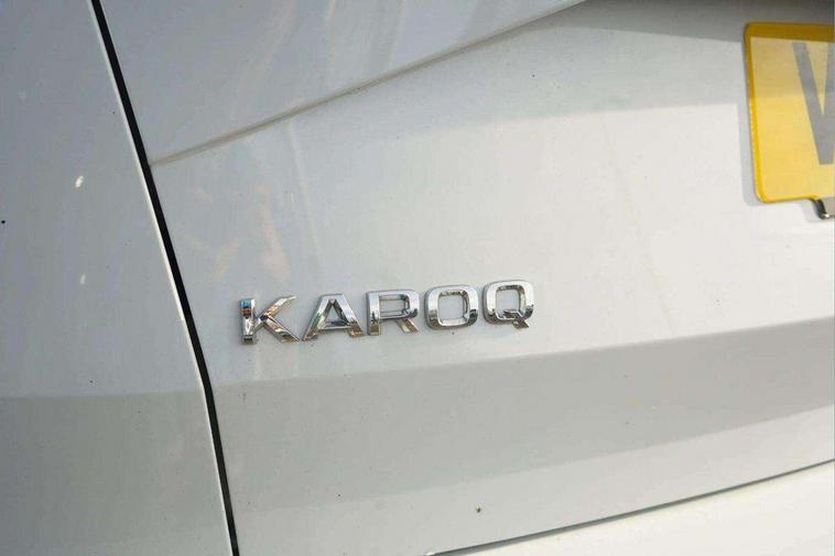 Advanced driver attention and drowsiness monitor, Drive Mode Selection including ECO function, Electro-mechanical PAS, Emergency services call system, Outside temperature gauge, Sensor for driver assistance systems, Service interval indicator, SmartLink wireless for Apple and wired for Android, Start/stop system with regenerative braking, Traffic sign recognition, USB C Port x 2 in front centre console, Virtual Cockpit - 10.25" digital display, Virtual pedal with electrically operated boot door, Wireless smartphone charging, DAB radio with Bluetooth, USB connection, Acoustic glass, Aero front windscreen wipers with intermittent function, Auto dimming rear view mirror with light and rain sensors, Black electric window control buttons, Body colour door mirrors and handles, Electric front and rear windows with child proof lock, Extended rear roof spoiler, Heated rear windscreen, LED daytime running lights, LED rear lights with high functionality welcome effect and dynamic indicators, Light assistant (coming/leaving home/tunnel light), Plastic scuff plates in door apertures, Privacy glass, Rear side wing doors, Rear window wiper with washer system and intermittent control, Safety reflectors on front doors, Third brake light, Unique dark chrome design logo on alloy wheels, 1.5 litre bottle holders in driver and front passenger door panels, 12V socket in boot, 12v socket in front centre armrest with storage compartment and rear air vents, 2 spoke leather heated multifunction steering wheel with DSG paddles, 2 x Tablet holder, 3 rear height adjustable headrests, 3 seat bench in 2nd row, 4 foldable roof handles with rear coat hooks, Black floor carpet, Cargo elements in boot, Chrome inner door handles, Foldable hooks in the boot, Front head restraints, Height adjustable front three point seats belts with tensioners, Height/reach adjust steering wheel, Ice scraper, Illuminated glovebox, Illuminated luggage compartment, Interior noise suppression, Isofix child seat preparation for front passenger seat, Isofix child seat preparation outer rear, Manual lumbar support for front seats, Pearl grey interior ceiling, Pen holder, Pollen filter, Rear boot cover, Rear package tray, Rear reading lights, Rubbish bin door, Safety vest holder, Single front passenger seat, Skoda lettering on steering wheel, Storage box in upper central dashboard closed, Sunvisors with illuminated vanity mirrors, Textile floor mats, Ticket holder, Columbus pack - Karoq, Design Pack - Karoq, Non Smokers pack, Parking pack - Karoq, Automatic door unlocking in case of crash, Automatic fuel cut off in case of crash, Driver airbag, Electronic parking brake with auto hold function, Emergency rear braking signal, ESC (incl. ABS+MSR+ASR+EDS+HBA+DSR+RBS+MKB), Front side airbags, Head airbags, Hill hold control, Knee airbags, Passenger airbag with switch-off function, Pedestrian monitor, Seatbelt reminder signalisation and pretensioner for all seats, Three point seatbelts rear, Two tone horn, Tyre pressure monitor, Alarm with interior monitoring, back up horn and tilt sensor with safe function, Electronic engine immobiliser, Keyless entry and start/stop, Remote central locking with 2 remote folding keys, Black centre console, Chrome framed air vents, Satin black dashboard, Anti-theft wheel bolts protection, Breakdown and tool kit,