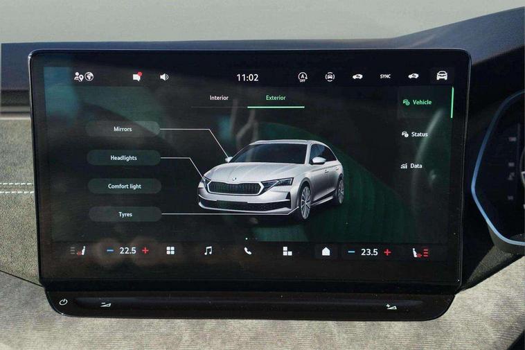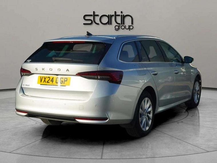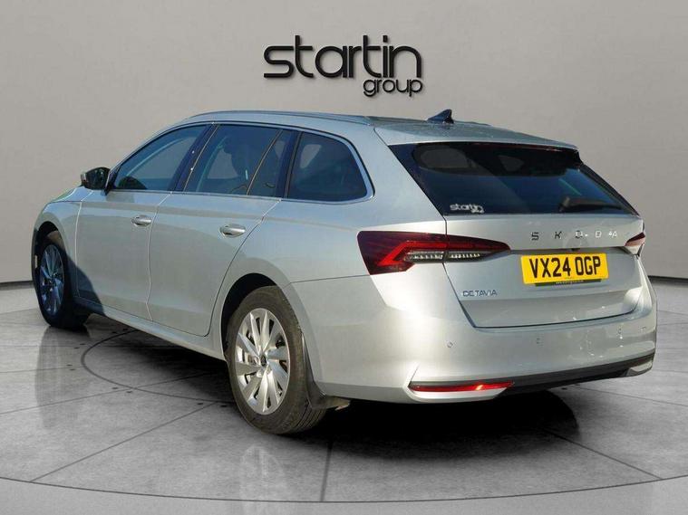 1x USB Typc C port in rear view mirror, 4x USB Type C ports - 2x in front centre console and 2x in rear (45W), Drive mode selection, Driver fatigue sensor, eCall emergency system, Electro-mechanical power steering, Front and rear parking sensors with manoeuvre assist, Front assist system, Traffic jam assist, Traffic sign recognition, Turn Assist, Virtual Cockpit - 10.25" digital display, Voice control system, Wireless charging (15W) with cooling function, Wireless SmartLink for Apple CarPlay and Android Auto, 13" touchscreen display with navigation, 8 Speakers, DAB Digital radio, Aero front windscreen wipers with intermittent function, Auto dimming rear view mirror, Body colour bumpers, Body colour door mirrors and handles, Chrome grille surround, Chrome roof rails, Chrome strip in lower front bumper, Chrome window surrounds, Driver side auto-dimming door mirrors, Electric front and rear windows, Heated rear windscreen, High level third brake light, Ice scraper in fuel cap, LED daytime running lights, Logo projection in front doors, Preparation for tow bar, Rain and light sensors, Rear fog light on one side, Rear privacy glass, Rear side wing doors, Rear spoiler, Rear window wiper, Sunblinds for rear side windows, 12 volt socket in boot, 3 rear headrests, 3 seat bench in 2nd row, 4 foldable roof handles, Dual zone air conditioning, Electric auxiliary air heater, Front head restraints, Heated front seats, Illuminated glovebox, Interior door handles in dark chrome, Jumbo Box storage, Luggage compartment lighting x2 lights, Mechanical rear seat release from boot, Single front passenger seat, Steering wheel in black leather with black stitching, Storage compartments in left and right of boot, Sun visors with mirrors, Sunglasses storage, Ticket holder, Umbrella in door panel, Unsplit rear bench seat, split folding backrest with centre armrest with cupholder, Waste bin in door panel, Assisted drive package - Octavia DSG, Comfort package - Octavia Estate, Family package - Octavia, Light and view package plus - Octavia, Lounge Design Selection pack - Octavia, Simply clever package premium with Storage compartment under passenger seat - Octavia, Winter package plus - Octavia DSG, 3x3 point rear seat belts, Alarm with interior monitoring, tilt sensor and back up horn, Curtain airbags and front side airbags, Driver and front passenger airbags, Drivers knee airbag, Electronic parking brake, ESC including ABS, EBV, MSR, ASR, EDS, HBA, DSR, Front central airbag, Hill hold assist, ISOFIX on front passenger seat and outer rear seats, Passenger airbag deactivate switch, Three point seat belts in front and rear, Two tone horn, Tyre pressure monitor, Visual and acoustic seat belt reminder, Warning reflectors in front door, Anti-theft wheel bolts, Keyless start/stop, Remote central locking, Chrome air vent surrounds, 17" Mensa aero alloy wheels, Tyre repair kit,