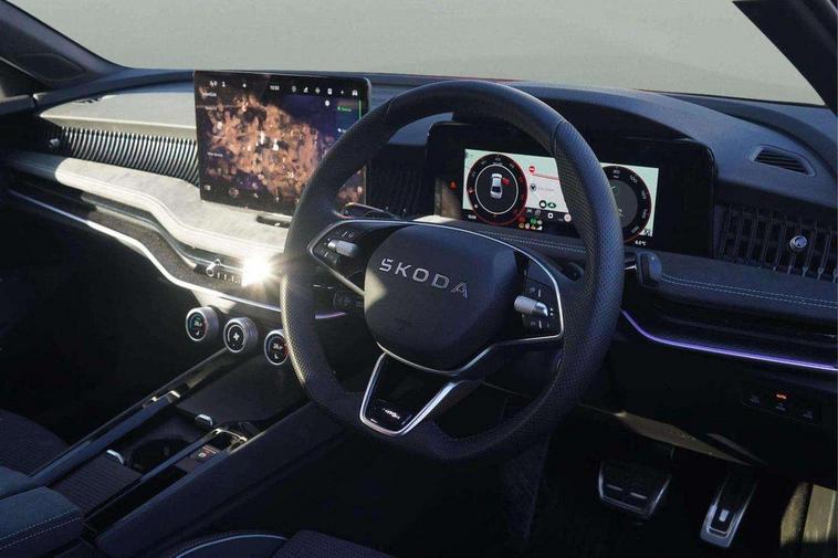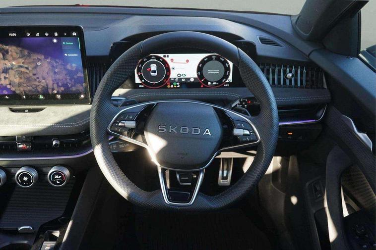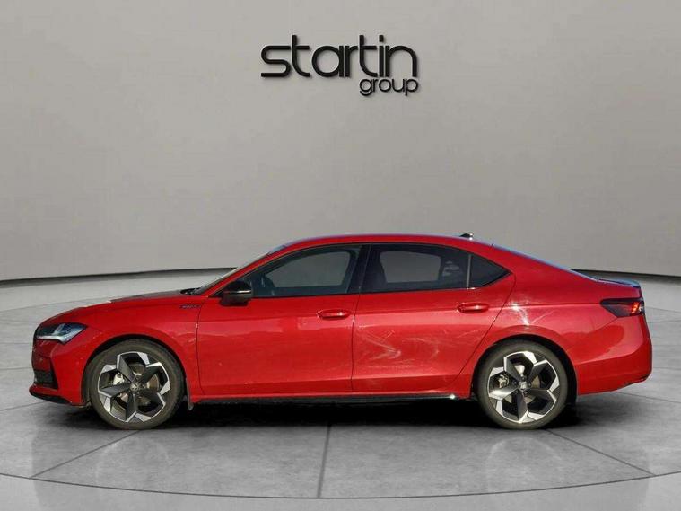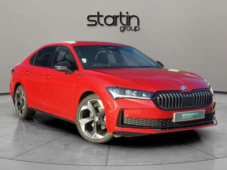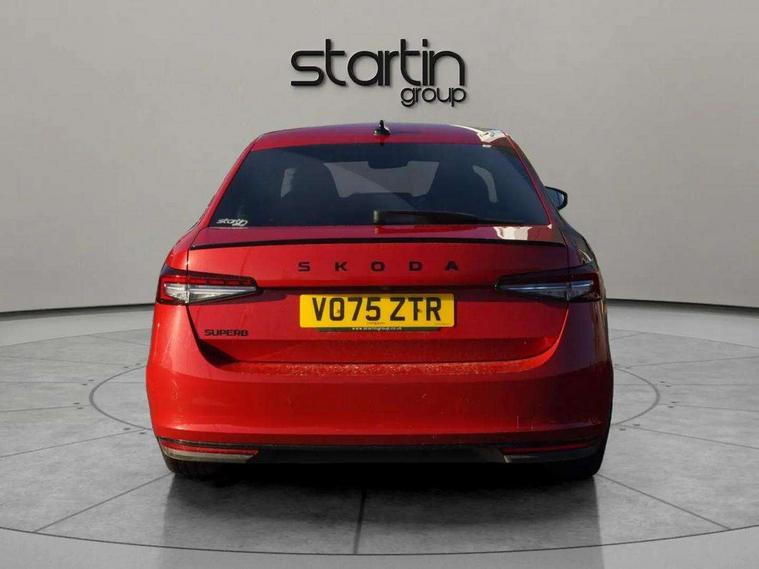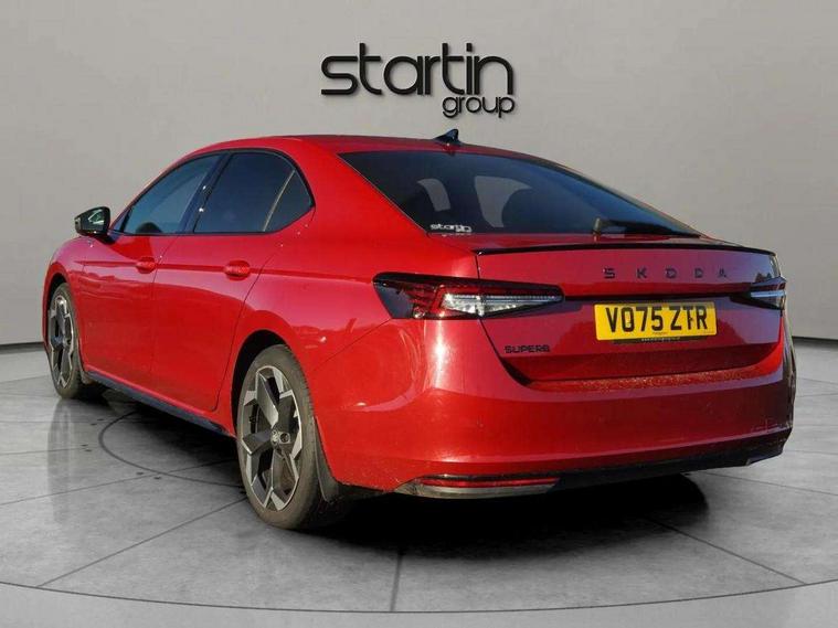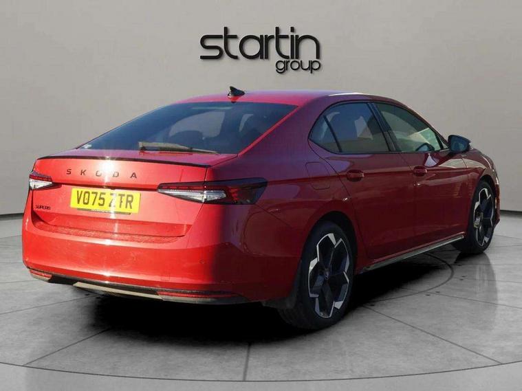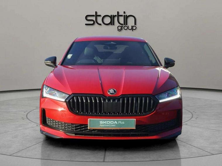 13" touchscreen display with satellite navigation, 4x USB-C ports (2x in front centre console and 2x in rear) (45W), Adaptive cruise control with speed assist, lane assist plus and traffic tram assist, Blind spot detection with door exit warning, Bluetooth system, CareConnect and Emergency Call, ChatGPT functionality, Driver fatigue sensor, Front assist with extended predictive pedestrian protection, Front cross traffic assist, PAS, Quick start all heating software functionality, Stop/start engine system, Traffic sign recognition, Turn assist with evasive assistance, Virtual Cockpit - 10.25" digital display, Voice control system, Washer for rear camera, Wireless charging for one smartphone (15W) with cooling function, Wireless smartlink apple carplay, SmartLink+ android auto, Dynamic chassis control plus with progressive dynamic steering, DAB Digital radio, Display cleaner, FM radio connection, Web radio connection, Acoustic side windows and interior noise suppression, Backdrop lighting, Black exterior styling window and grille surrounds, Body colour door handles, Dynamic range control with poor weather light and integrated fog light, Electrically adjustable, heated, folding and driver side auto-dimming door mirrors with memory function, integrated indicators and logo projection, Frameless auto-dimming rear view mirror with USB-C, Gloss black door mirrors, Ice scraper in fuel tank cap, LED 3rd brake light, Light assist with High beam control, Light assistant (coming/leaving home/tunnel light), Privacy glass, Rear fog lights (x2), Rear side wing doors, Skoda lettering in black, Sportline badging, Sports bumpers, Windscreen wipers with rain sensor, 12V socket 1x centre console 1x boot, 14-way electrically adjustable, memory, front seats with 4-way pneumatic lumbar support, and extendable thigh support with smart comfort entry aid, 2x cargo elements in boot, 2x light in boot, 3 seat bench in 2nd row, 60:40 Split folding rear seats, Aluminium pedals, Bottle holders in the front doors 1.5 litre bottle and rear 1.5 litre bottle, Cup holder in front with easy open mat, Front armrest with storage box, Front sports seats, Heated and ventilated front seats, Height adjustable front and rear head restraints, Illuminated glovebox, Interior lights with control switches, Isofix child seat fittings in outer rear and front passenger seats, LED front and rear reading lights, Single front passenger seat, Skoda lettering on steering wheel, Storage compartment with cover, Storage pockets on back of front seats, Sun visors with illuminated vanity mirrors, Ticket holder on A Pillar, Tri zone climate control, Umbrella in driver's door, Light and view package - Superb, Transport package - Superb Hatchback, 3 rear seatbelts, 8 Airbags - Front driver and passenger, front side driver and passenger, centre, curtain front and rear, drivers knee, Crew protect assist, Driver and passenger seatbelts with warning light, Electronic parking brake, ESC including ABS, EBV, MSR, ASR, EDS, HBA, DSR, RBS, CBC, multi-collision brake (MKB) and Auto hold, Hill hold assist, Power operated child lock in rear doors, Alarm with interior monitoring tilt sensor and back up horn, Backrest remote release from trunk, Electronic engine immobiliser, Keyless start/stop, Remote central locking with SAFE system, Third key, Walk away locking, Decorative front door sills, 19" Torcular polished black alloy wheels with anti theft wheel bolts,