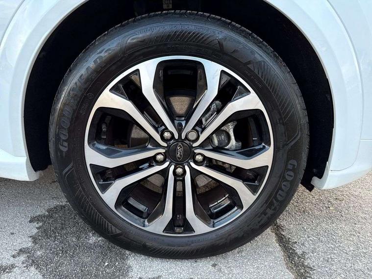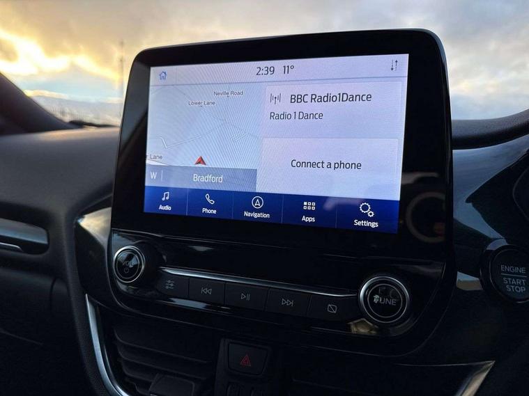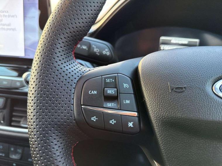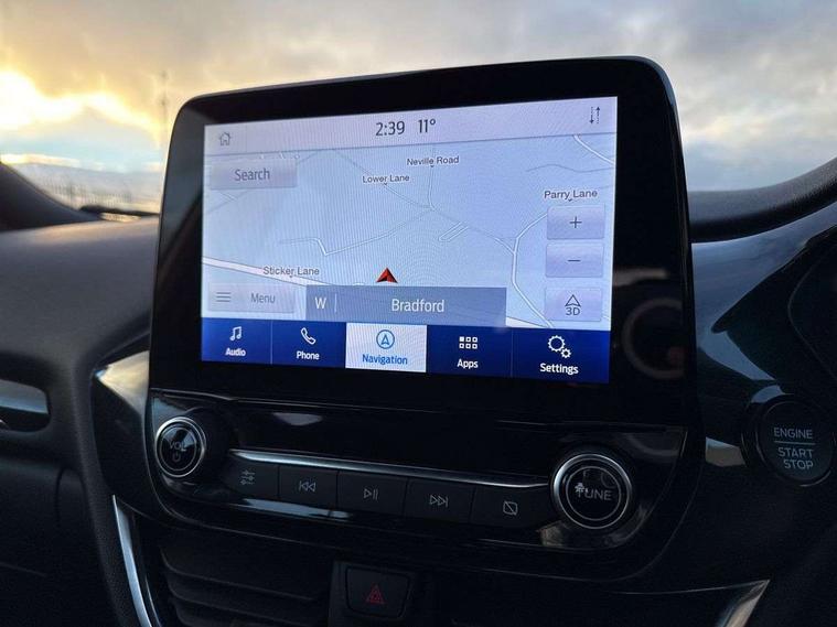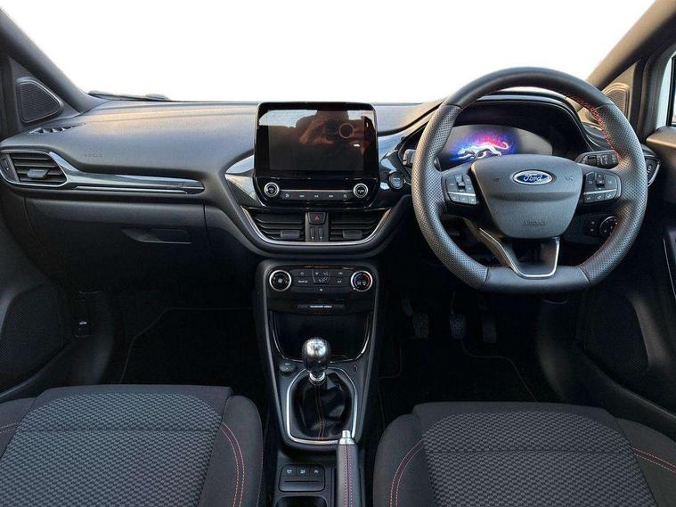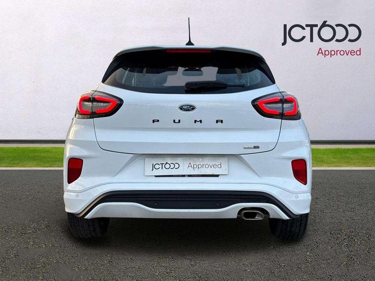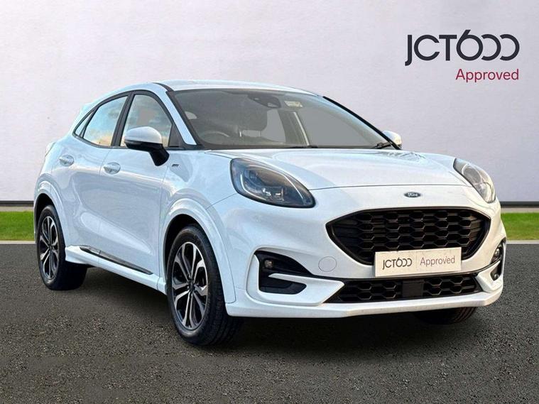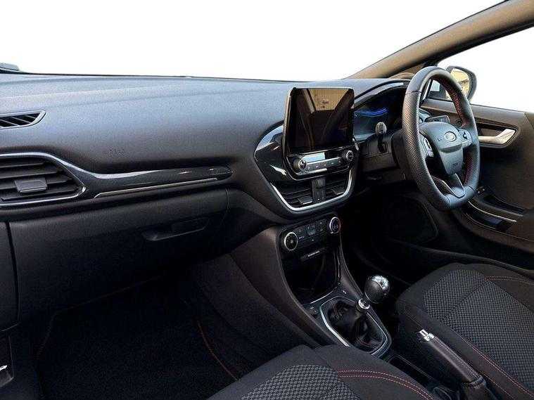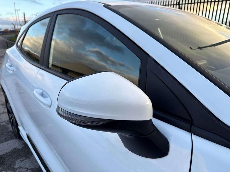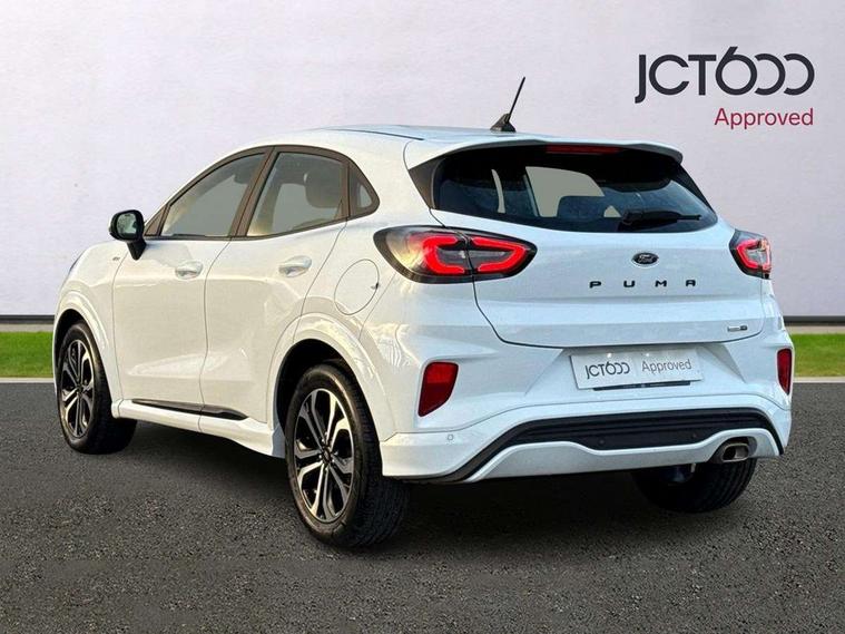 Driver impairment monitor, Emergency call service, Ford easy fuel, Full digital 12.3" instrument cluster, Lane keeping aid with lane departure warning, Power assist steering, Power start button, Rear parking sensor, Selectable drive modes(Normal, Eco, Sport, Slippery and Trail), Speed sign recognition, Sport suspension, Automatic headlights with auto high beam, Automatic rain sensing wipers, LED rear lamps, Power foldable heated door mirrors with puddle lamps, Projector headlamps with LED day time running lights and front fog lamps, Quickclear heated windscreen, Rear side wing doors, Rear wiper, ST-Line body styling kit with unique grille and large body colour rear spoiler, Third brake light, 3 seat bench in 2nd row, Centre console with armrest and stowage, Ford megabox extended bootspace, Front and rear head restraints, Front floor mats, Manual 2 way passenger seat adjustment, Manual 4 way driver seat adjust with lumbar adjustment, Single front passenger seat, ST- Line cloth trim with red stitching, ST-Line flat bottomed sensico leather steering wheel with leather handbrake and aluminium gear knob, Ford SYNC 3 navigation pack - Puma, 3 rear seatbelts, Child safety lock, Electronic stability control (ESC) and hill start assist, Pedestrian/cyclist detection & post-collision braking, Pre collision assist system, Tyre pressure monitoring system (TPMS), Thatcham alarm,