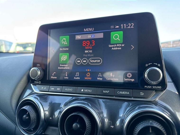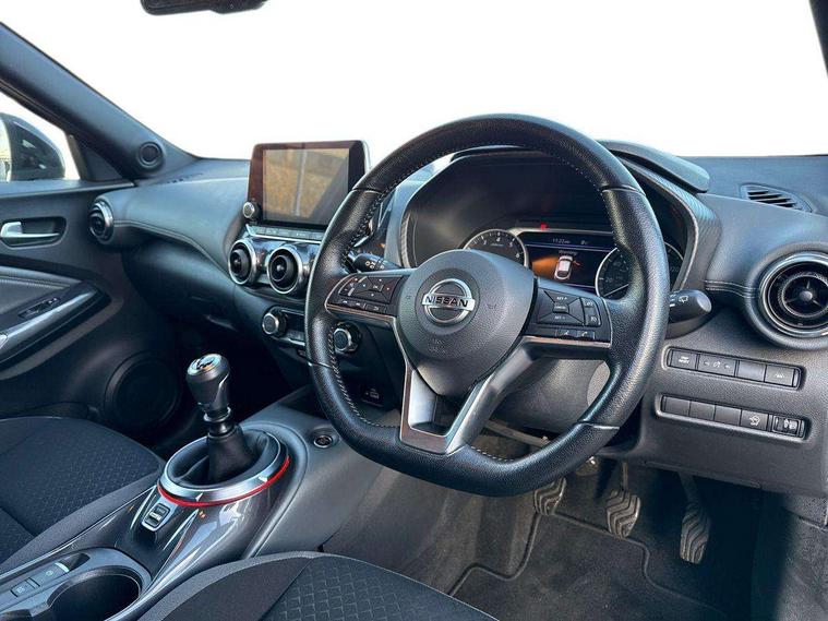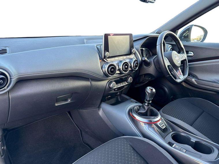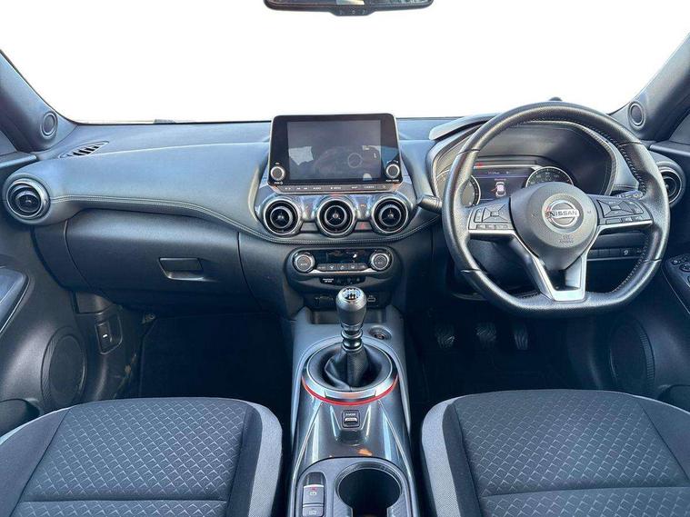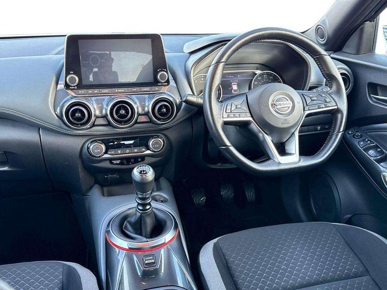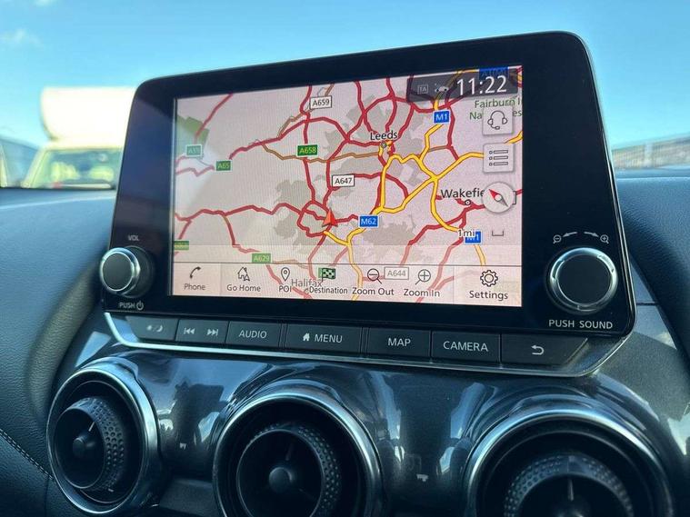 7" full colour TFT screen combimeter, 8" infotainment colour display with touch screen, Apple CarPlay and Google Android auto, Drive modes select (Eco, normal and sport), Emergency and breakdown call, Front parking sensor, Idle start/stop system, Intelligent lane intervention, Lane departure warning system, Nissan connect nav with TomTom traffic, Nissan connect services and Wifi connection, Outside temperature sensor, Power Steering, Rear parking sensor, Traffic sign recognition, Trip computer, Gasoline particulate filter, 6 speakers, Bluetooth system, USB, Aux-in and 12V socket, DAB Digital radio, Rear console USB port, Auto dimming interior rear view mirror, Automatic hazard signal with emergency stop signal, Body colour bumpers, Body colour door handles, Electrically adjustable door mirrors with integrated indicators, Follow me home headlights, Front and rear electric window with one touch driver and passenger window, Heated and auto folding door mirrors, High beam assist, LED daytime running lights, LED front fog lights, LED headlamps, LED rear fog lamp, LED rear lamps, Rain sensor windscreen wipers, Rear privacy glass, Rear spoiler, Rear wiper, Three blink turn signal, 3 height adjustable rear headrests, 60/40 split folding rear seat, Automatic climate control, Card holder on driver sunvisor, Cloth upholstery, Door ambient lighting, Driver and passenger sliding and reclining seats, Driver seat back pocket, Driver side rear coat hanger, Driver/passenger sunvisors and illuminated vanity mirrors, Front and rear cabin lights, Front armrest, Front door pockets with bottle holders, Front head restraints, Front/rear passenger grab handles, Gear console ambient circle lighting, Grey synthetic leather kneepad, Height adjustable driver's seat, Internal chrome door handles, Leather gearshift knob, Leather steering wheel, Luggage board, Luggage space lighting, Monoform sporty seats, Multifunction steering wheel, Passenger seat back pocket, Rear door bottle holders, Telescopic steering wheel adjustment, Two cupholders in front centre console, Two rear isofix child seat anchorage points with top tether, Voice recognition switch on steering wheel, Welcome light and console tray ambient lighting, ABS with EBD and brake assist, Active ride control, Active Trace Control, Driver and passenger airbags, Driver and passenger side airbags, Electric handbrake with auto hold function, Electronic Stability Programme (ESP), Front and rear curtain airbags, Height adjustable seatbelts, Hill start assist, Intelligent emergency braking with pedestrian and cyclist recognition, Seatbelt reminder for driver/front passenger and rear seats, Single tone horn, Three 3 point rear seatbelts, Traction control, Tyre pressure monitoring system, VDC Dynamic Vehicle Control, Ventilated rear brake discs, Alarm, Immobiliser, Intelligent Key with push button starter, Remote central locking,