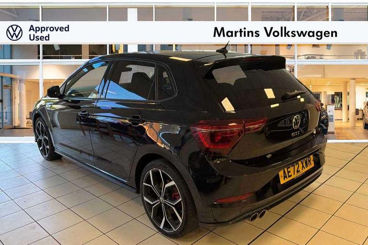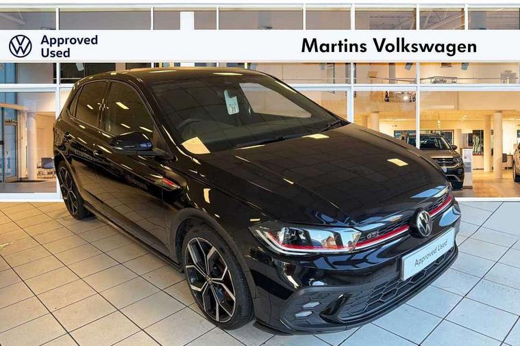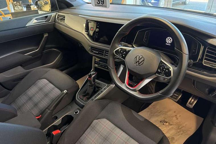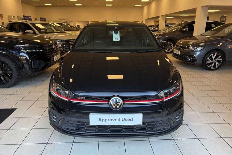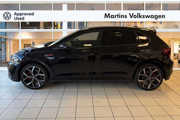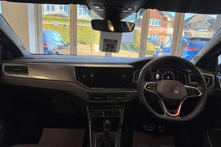 Adaptive cruise control with follow-to-stop and speed limiter, Bluetooth mobile phone interface, Digital Cockpit Pro with 10.25" Display, Driver alert system, Dynamic road sign display, Eco mode, Emergency call service, Power assisted speed sensitive steering, Preparation for We connect and We connect plus, Speedo and rev counter, electronic odometer, trip, service interval display and fuel gauge, Travel Assist - Lane keeping system and traffic jam assist, Travel assist including emergency assist, Trip computer, Warning signal and warning light for front and rear seatbelts not fastened, Washer fluid level indicator, Wireless app connect, Adaptive chassis control, Front wheel drive, Heavy duty rear axle, Rear shock absorpion sports version, Sports select suspension lowered by 15mm, Start-stop system with battery regeneration (recuperation - energy recovery during braking), DAB Digital radio, Diversity antenna for FM reception, Front and rear 6 speakers, Body colour bumpers, Body colour door handles, Electric front windows, Front scuff plates in aluminium with GTI logo, Heat insulating darkened glass in side and rear windows, Heat insulating glass windscreen, Power folding adjustable/heated exterior mirrors and front passenger exterior mirror lowering function, Rear electric windows, Rear fog light, Rear side wing doors, Rear windscreen washer and wiper with interval delay, Sport bumpers with air intakes with honeycomb structure, Third brake light, Twin chrome exhaust tailpipes, 12V power socket in centre console, 2 USB-C ports in the front, 2 USB-C charging sockets on the center console in the rear, 3 rear head restraints, 60/40 split folding rear seat and rear seat bench not split, Air care climatronic air conditoning system with active combination filter and 2-zone temperature control, Black roof lining, Ceramique headliner, Chrome plated radiator grille inserts, air vent surrounds and light switch surrounds, Door and side trim panel, Driver and front passenger seat height adjustment, Driver/passenger sunvisors with illuminated vanity mirrors, Front + rear carpet mats, Front centre armrest, Front footwell illumination, Front seat backrest storage pockets, GTI sports gearshift knob in aluminium leather, Handbrake lever handle in leather, Isofix child seat preparation easy-fit (for two outer rear seats, and front passenger seat) compatible with I-size, LED interior light with switch off delay and dimmer, 2 reading lights front and rear, Luggage compartment cover, Luggage compartment floor, Luggage compartment lighting, Single front passenger seat, Stainless steel pedals, Standard pedal cluster, Three spoke leather wrapped multifunction sports steering wheel with shifting paddles, IQ LED matrix headlights pack - Polo, Light and sight pack - Polo GTI, Sports suspension pack - Polo, 3 point height adj front seatbelts + pretensioners, 3x3 point rear seatbelts, ABS, Driver and front passenger airbag with front passenger airbag deactivation, Drivers and front passengers safety optimised head restraints, ESC (Electronic stability control) + EDL (Electronic Differntial lock) and ASR (Traction control), Extended and predictive pedestrian/ cyclist protection, Front and rear disc brakes with red brake calipers, Front curtain and side airbags with center airbag, Hill hold control, Manual child lock in rear doors, Two tone horn, Tyre pressure loss indicator, Alarm with interior protection, Anti-theft alarm system with interior monitoring, backup horn, and towing protection, Anti-theft wheel bolts, Electronic engine immobiliser, Chrome applications on rotary light, mirror adjustment, window regulator switches, outlet with frame in black, Low rolling resistance tyres,