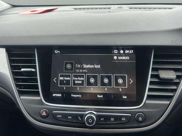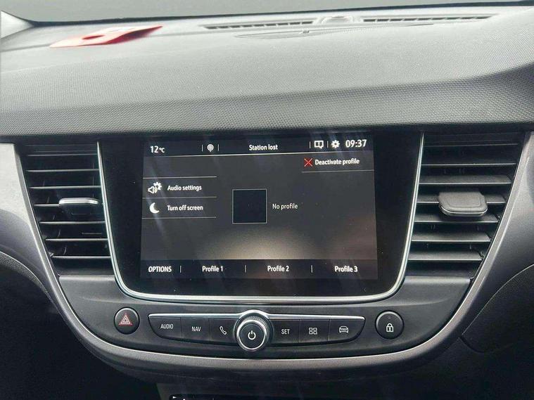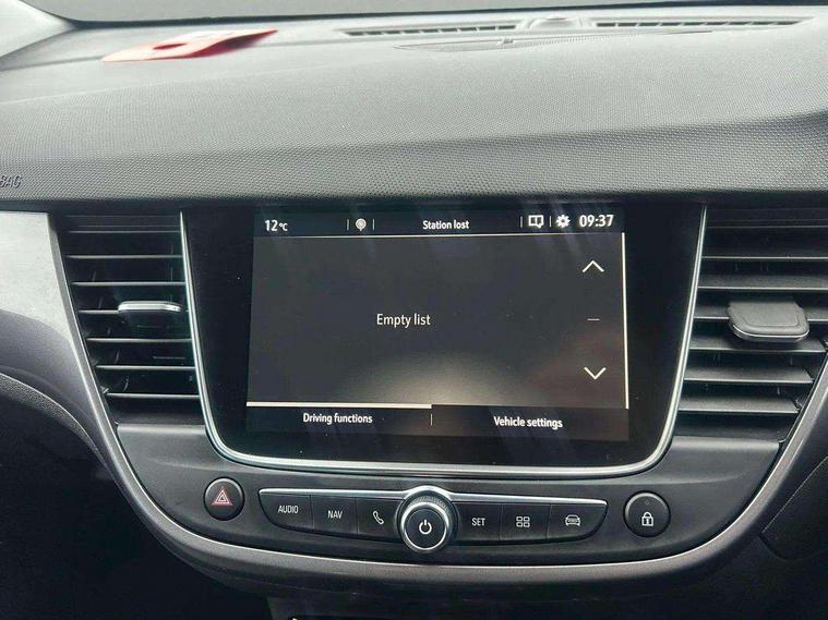 3.5" monochrome instrument colour display, Audible lights on warning, Bluetooth connectivity, Cruise control + speed limiter, Digital clock with automatic RDS time adjustment, eCall emergency call system, Instrumentation - Speedometer, rev counter, low fuel gauge warning light + water temperature gauge warning light, shift up/down indicate light, Lane departure warning system, Multi function trip computer, Multimedia sat nav pro with 8" colour touchscreen, AM/FM, Bluetooth streaming, Bluetooth mobile phone portal, apple CarPlay/Android Auto + 6 speakers, Outside temperature display with ice warning, Refridgerant low indicator, Service interval indicator, Speed sensitive power steering, Speed sign recognition, Front wheel drive, 2 x USB connections, DAB Digital radio, Steering wheel mounted audio/phone/cruise controls, 2 speed wipers/wash wipe/intermittent wipe, 3rd brake light, Alloy effect front and rear skid plates, Automatic anti dazzle rear view mirror, Automatic headlamp levelling system, Automatic high beam control with cornering light, Automatic lighting control, Black radiator grille with chrome bar, Body colour door handles, Body colour front and rear bumpers, Chrome effect upper window moulding, Dark tinted rear side windows + tailgate window, Electrically adjustable and heated door mirrors, Front power windows with express up/down and anti-pinch function, Hazard warning lights, Headlamps for left side traffic, Heated rear window, Integrated tailgate spoiler, Intermittent rear wash/wipe, LED daytime running lights, LED front fog lights, LED Headlights, LED side repeat indicators, Rain sensitive windscreen wipers, Rear fog lights, Rear power windows with express up/down and anti-pinch function, Rear side wing doors, Rear wing door, Reversing light, Side window demist vents, Solar heat absorbing windscreen and windows, Welcome lighting, Windscreen demist vents, Without LED rear lights, 12v power outlet - front, 2 way adjustable front passenger seat, 2 way front passive headrests, 3 rear seats, 3 spoke flat bottomed leather covered steering wheel with bezel decoration, 4 way electrically adjustable lumbar support for drivers seat, 60/40 split folding rear seat backrest, Adjustable rear seat backrest, Air recirculation facility, Ambient lighting, Anti submarining ramps in front seats, Cabin particulate filter - removes dust, airborne particles and pollen, Centre console, Driver and front passenger illuminated vanity mirrors with flip up covers, Driver's seat armrest, Drivers ergonomic active seat with 8 way manual adjustable driver seat , height, reach and backrest, Dual zone electronic climate control, Fade up/fade down on interior lighting, Four adjustable facia vents, Front door pockets with bottle holders, Front map reading lights, Front passenger seat, Fully carpeted luggage area, Glovebox with lid, Height adjustable front/rear head restraints, Illuminated load area, Interior courtesy light operated by all doors, Isofix system on outer rear seats, Jet black premium leather side bolsters, Luggage compartment cover, Multi-speed fan with Illuminated control, Open storage compartment in centre console, Passenger assist handles, Reach + rake adjustable steering column, Rear door pockets with bottle holders, Rear floor ventilation ducts, Rear reading lights, Satin chrome effect bezel on steering wheel, Seat cushion extension, Sparkle cloth/vinyl upholstery, Storage pockets on front seat backs, Two drinks holders in centre console, Rear view camera plus pack - Crossland, Winter pack - Crossland, 3x3 point rear seatbelts, 6 airbags - Driver and co-driver front, front side, head curtain roof airbags, front and rear row coverage airbags, ABS, Child locks on rear doors, CSC - Cornering stability control, Deactivate switch for side impact airbags, Deformation zones front and rear, Dual seatbelt pretensioners on front seats, EBD - Electronic brakeforce distribution, Energy absorbing steering column, Engine drag torque control, ESP + traction control, Front and rear seatbelt unfastened audible warning and warning light, Front side impact airbag, Hill start assist, Hydraulic Brake Assist (HBA), Hydraulic brake boost, Inertia reel lap and diagonal seatbelts for all seats, Passenger airbag deactivate switch, Rear seat belt pretensioners, Reinforced passenger safety cell, Seatbelt load limiter, Side impact protection beams, Smart seatbelt reminder for front and rear seats, Tyre pressure monitoring system, 2 remote folding keys, Electronically protected audio equipment, Engine immobiliser, Locking wheel nuts, Remote central deadlocking, Remote control central locking activation switch on driver door, Remote control central locking operates on doors, tailgate and fuel filler flap, Remote security alarm system, Visible vehicle identification number, Black facia with silver trim insert, Black trim inserts on front doors, Cluster black with chrome rings, 17" five twin spoke diamond bi colour alloy wheels,