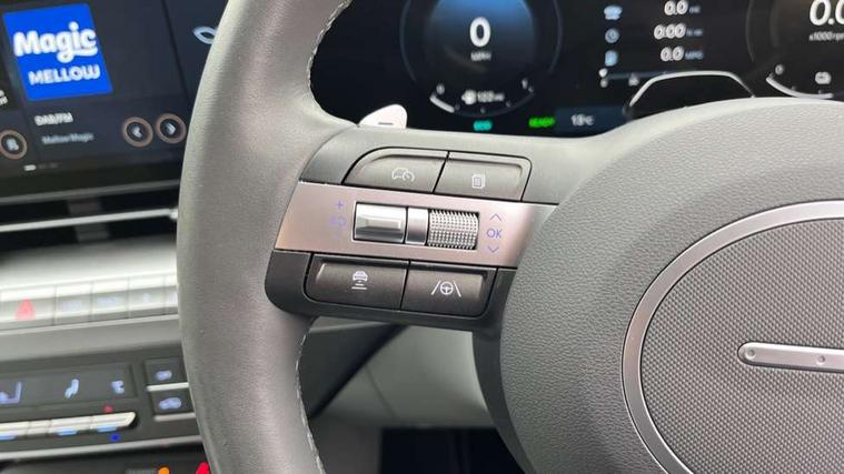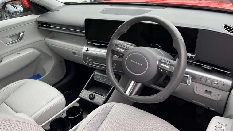 12.25" digital instrument cluster, 12.3" touchscreen centre console display satellite navigation with bluelink, live services and mapcare, Blind spot collision avoidance assist, Blind spot view monitor, Bluetooth connectivity with voice recognition, Driver status monitor (DSM), Driver supervision instrument cluster with 12.3" LCD display, eCall emergency call system, Feature on demand - Enabled, Forward collision avoidance assist (FCA 1.5) - Car, pededstrian, cycle and junction turning, Front parking sensor, HDA - Highway Drive Assist Level 1.5, Height adjustable power tailgate, Intelligent speed limit assist, Lane follow assist, Lane keep assist, Leading vehicle departure alert (LVDA), Parking Collision Avoidance Assist-Reverse (PCA-R), Parking distance warning - side, Parking system with rear camera and guidance system, PAS, Rear cross traffic collision avoidance (RCCA), Rear parking sensor, Rear view camera with dynamic guidelines, Roadside assistance, Safe exit warning (SEW), Smart cruise control with stop and go functionality, Surround view monitor, Wireless phone charging pad, Wireless Smartphone Integration includes Apple CarPlay and Android auto, 2 front USB C and 2 rear USB C charging points, Bose Premium Audio system with 7 premium speakers + subwoofer, DAB Digital radio, Steering wheel audio, phone and cruise controls, Auto dimming rear view mirror, Automatic headlights with dusk sensor, Automatic windscreen wipers with rain sensor, Black painted wheel arch inserts, Body colour exterior door handles, Body coloured door mirrors, Door mirror LED indicator lights, Electric front windows with anti-trap mechanism and one touch control, Electric rear windows, Electric sunroof, Electrically adjustable and heated door mirrors, Horizon centre LED DRL, LED projector headlights, LED taillights, LED upper and lower rear lights, Power folding door mirrors, Privacy glass - Rear windows and tailgate, Rain sensor, Rear roof spoiler with integrated LED brake light, Rear side wing doors, Rear skid plate - silver, Rear wiper, Roof rails, Solar glass with front door glass and windscreen, Tinted glass in front and rear doors, Windscreen auto defog function, 12V power outlet in front console, 2 zone climate control, 3 seat bench in 2nd row, 40/20/40 split folding rear seat, Adjustable head restraints, Ambient lighting, Driver and passenger front seat pockets, Driver's seat electric adjustments, Driver's seat lumbar support, Driver/passenger sunvisors and illuminated vanity mirrors, Floor mats, Front passenger's seat electric adjustments, Heated front seats, Heated rear seats, Heated steering wheel, Height/reach adjustable steering column, Leather steering wheel, Leather upholstery, LED centre interior light, LED front interior light, Luggage compartment LED lighting, Luggage net, Luggage shelf, Metal paint effect interior door handles, Rear centre armrest with cupholders, Shift by wire SBW, Single front passenger seat, Ventilated front seats, Vertical adjustment rear head restraints, Trailer wiring package - Kona, Airbag - front, front side, curtain and centre front airbag, Anti-lock brake system (ABS), Childproof rear door locks, Downhill brake control, Electric parking brake, Electronic stability control, Fixed 3 point for second row centre passenger seatbelt, Hill start assist control (HAC), Rear seat alert, Tyre pressure monitoring system, Alarm/immobiliser, Rear occupant alert, Remote central locking, Smart key with keyless entry and start/stop button, Five year annual vehicle health checks, 18" Alloy wheels, Temporary mobility kit (TMK),