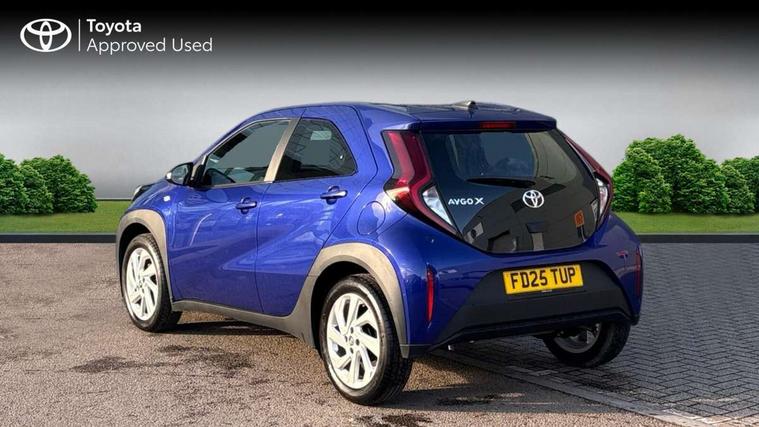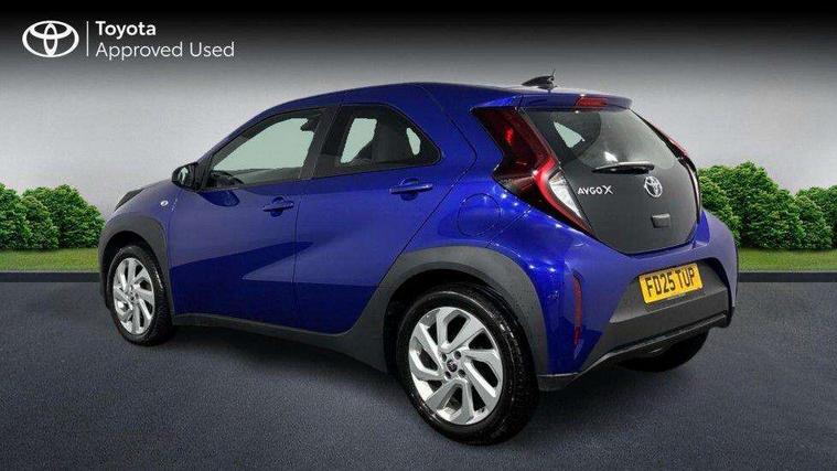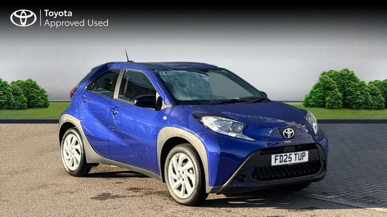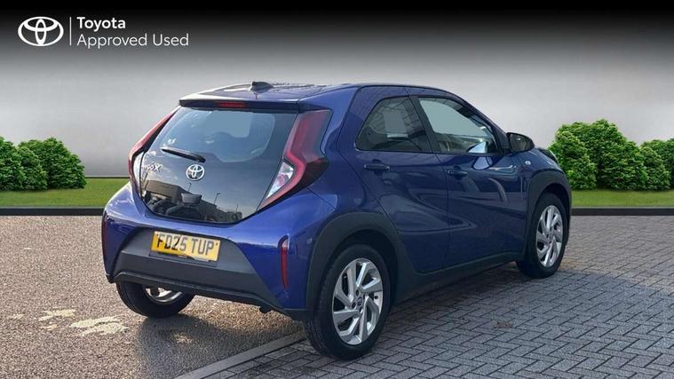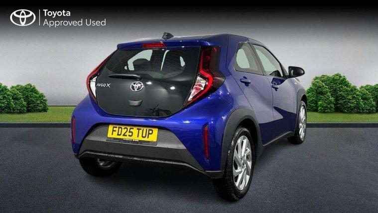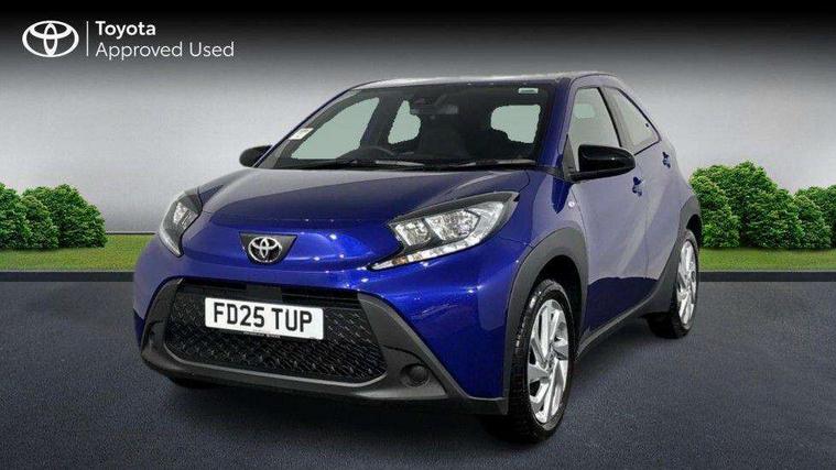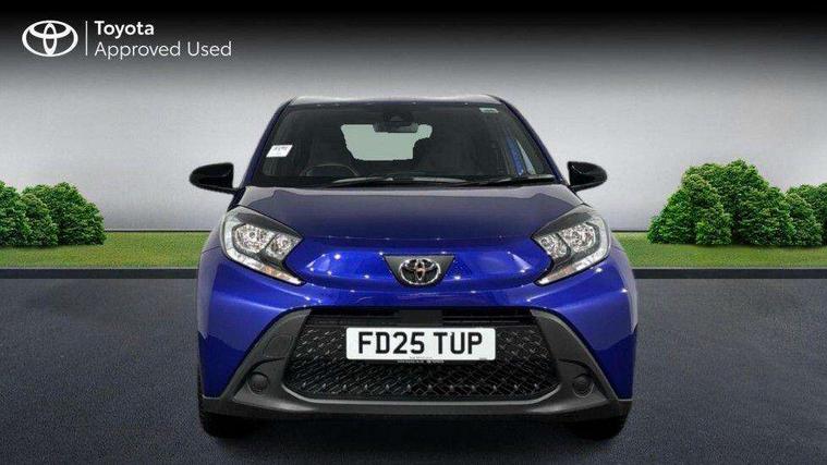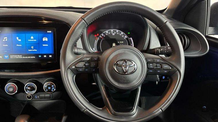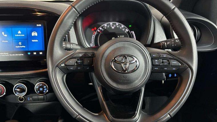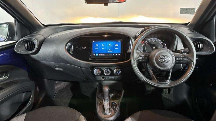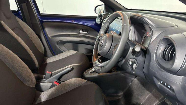 4.2" TFT colour screen, Adjustable speed limiter, Analogue speedometer, Bluetooth connectivity, Digital tachograph, Driver attention alert system, eCall emergency call system, ECO-driving indicator, Electric power steering, Intersection turn assist, Key reminder warning, Noise reduction kit, Pre collision system with emergency steering assist, Reversing camera with static guide lines, Smart phone integration with Apple car play/Android Auto, Speed limit display, Start and stop, Vehicle Stability Control (VSC), 4 speakers, 9" HD multimedia display touch screen with Toyota smart connect, DAB digital audio broadcast, USB connector, Auto headlights, Automatic headlights cut-off, Bicycle towing hook, Black lower front grille, Black rear bumper, Black side protection mouldings, Black upper front grille, Black wheel arch mouldings, Body colour door handles, Body coloured front bumper, Boot door scuff plate, Electric heated door mirrors, Follow me home headlights, Front power windows, Gloss black door mirrors, Headlight cut-off reminder, LED daytime running lights, LED front light guide, LED High mounted stop lamp, Manual day/night rear view mirror, Manual headlight levelling, Pagoda roof, Power adjustable door mirrors, Power back door, Projector halogen headlights, Rain sensor, Rear combination lights LED bulb type, Rear side wing doors, Rear windscreen defogger, Rear windscreen wiper, Short antenna, Variable intermittent windscreen wipers, 12v power outlet - front, 2 seat bench in 2nd row, 3 spoke leather steering wheel, 50/50 split folding rear seat, Adhesive roof headlining, Adjustable speed limiter switch on steering wheel, Audio and telephone switches on steering wheel, Black insert on steering wheel, Boot light, Centre room light, Chrome interior door handles, Chrome surround on air conditioning buttons, Clean air filter, Fabric upholstery, Floor mats, Front and rear cup holders, Front head rest deco art, Front head restraints, Gear shift indicator, Height adjustable driver seat, Intelligent adaptive cruise control switch on steering wheel, ISOFIX child restraint system on rear seats, Lane departure alert switch on steering wheel, Leather gearshift knob, Light grey roof lining, Manual air conditioning, Manual tilt steering wheel, Manually reclining and sliding driver seat, Manually reclining and sliding front passenger seat, Multimedia switches on steering wheel, Pollen filter, Rear door pockets, Rear head restraints, Resin console box storage, Satin silver insert on gear shift knob, Silver stitching on gear shift knob, Single compartment glovebox with lights, Single front passenger seat, Soft tonneau cover, Sun visors with mirror on driver and passenger side, Voice recognition switch on steering wheel, Toyota safety sense pack - Aygo X, Anti lock braking system + Electronic brake force distribution, Child safety door lock, Emergency brake light signal (EBS), Hill start assist control (HAC), Passenger airbag on/off switch, Seat belt reminder for front and rear seats, Supplement restraints system (SRS) - 6 airbags, Traction control, Tyre pressure warning system, Immobiliser, Remote power door locks, Black air vent surround, Black wheel centre caps, Tyre repair kit,