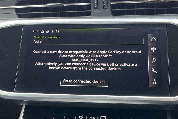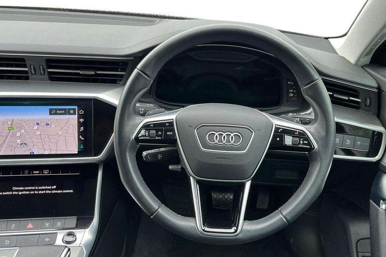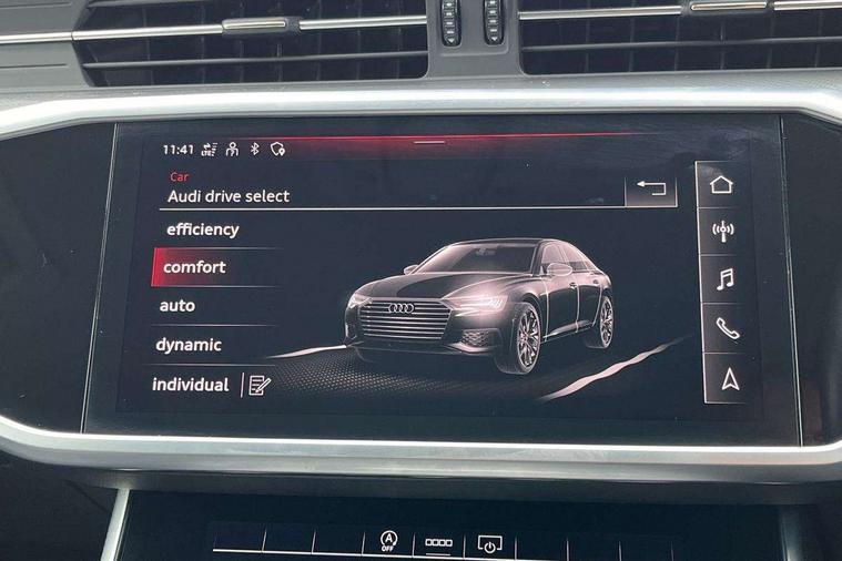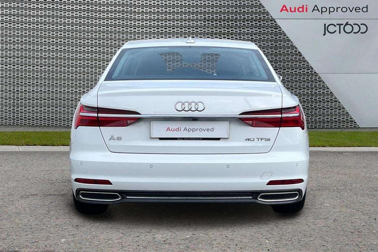 7" high resolution colour driver information display system, Audi connect safety and service (e-call), Audi connect with Amazon Alexa Integration, Audi drive select, Audi parking system plus - acoustic and visual park assist system for front and rear, Automatic start/stop system with coasting functionality, Bluetooth interface, Cruise control + speed limiter, Electric boot lid release, Lane departure warning system, Progressive steering, Rear view camera, Service interval indicator, Smartphone interface includes wireless Apple carplay/Android Auto, Voice control system, Standard suspension, Audi front music interface, Audi sound system, Auxiliary input socket, DAB Digital radio, USB connection, All weather LED headlights, Body colour bumpers, Body coloured door mirrors, Daytime running lights, Electric front/rear windows, Frameless auto dimming interior rear view mirror, Front intermittent wipers, Heat insulating darkened glass in side and rear windows, Heat insulating glass in windshield, LED rear lights, LED third brake light, Matt black rear diffuser with diffuser strip and tailpipes in chrome, Matt black side air intake grille with inlay in matt aluminium, Radiator grille in titanium black matt, single frame in chrome and horizontal struts in matt aluminium silver, Rain and light sensors, Rear boot, Rear side wing doors, 2 zone deluxe electronic climate control, 3 spoke high multi-function leather steering wheel with shift paddles, 4 way electric lumbar support for driver and front passenger, 40/20/40 split folding 3 rear seat bench in 3 parts with rear centre armrest, Black steering wheel insert, Centre armrest matches seat colour, Door sill trims with aluminium inlay, Front centre armrest, Front head restraints, Heated front seats, Height/reach adjust steering wheel, Illuminated sun visors with vanity mirrors, ISOFIX child seat mounting and Top Tether with front passenger airbag deactivation, Leather gear knob, Lunar silver cloth headlining, Rear headrests, Single front passenger seat, LED Interior Ambient Lighting Pack - A6, Non smoking pack - A6, Technology pack - A6, 3 point seatbelts on all seats, Airbags - Front side, front and rear including head, Audi pre-sense front, EBD - Electronic brakeforce distribution, Electromechanical parking brake, Electronic Stability Control (ESC) including ABS, ASR and EDL, Extended pedestrian protection measures, Manual child proof rear door locks, Seatbelt monitoring, Tyre pressure warning light, Warning triangle and first aid kit, Anti theft alarm with tow away protection, Anti-theft wheel bolts and wheel loosening detection, Immobiliser, Keyless Go, Remote central locking, Aluminium fragment inlay,