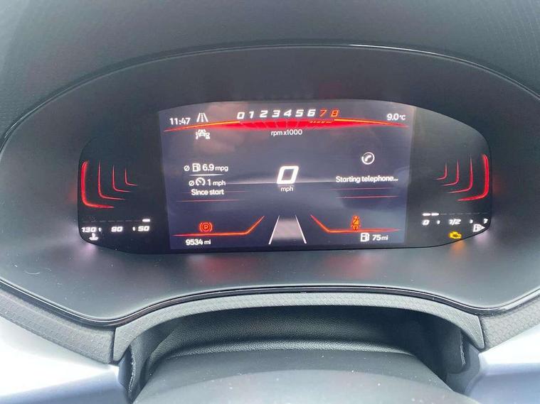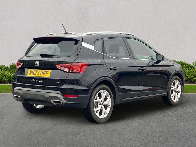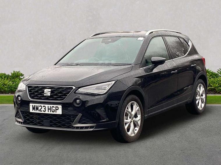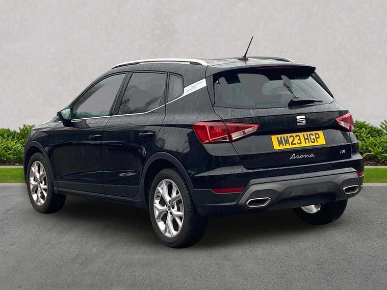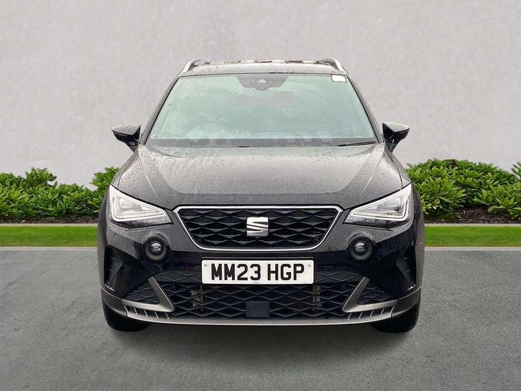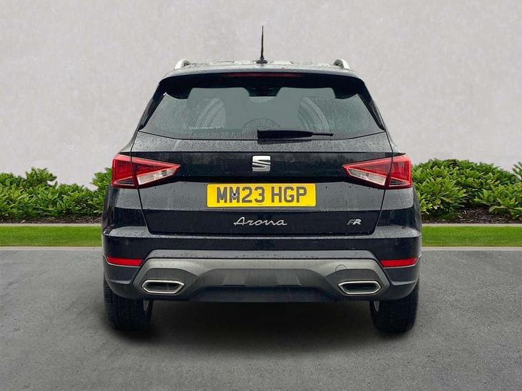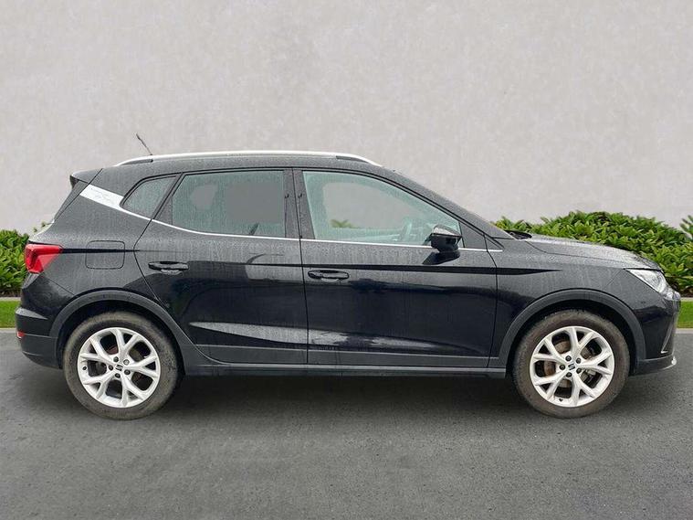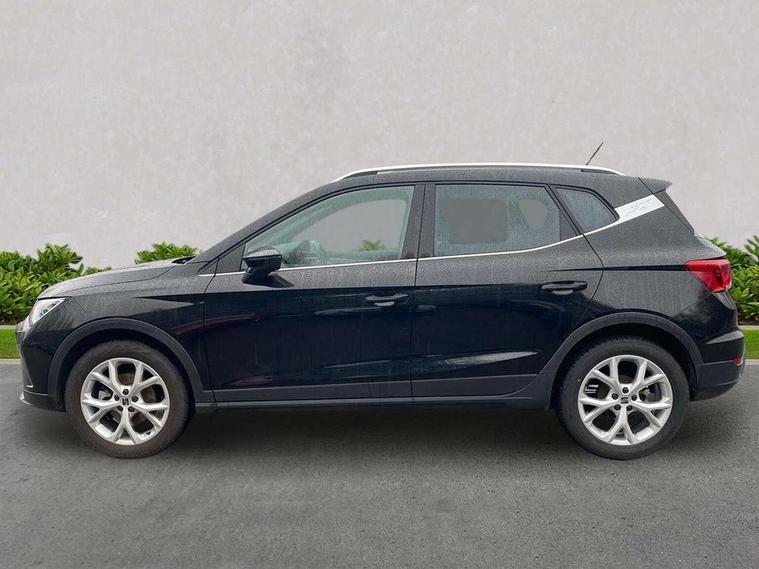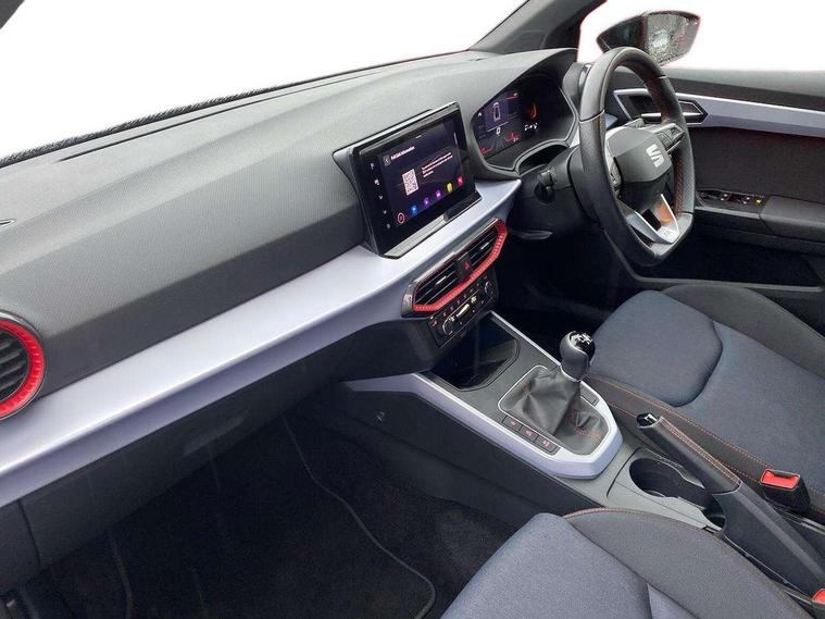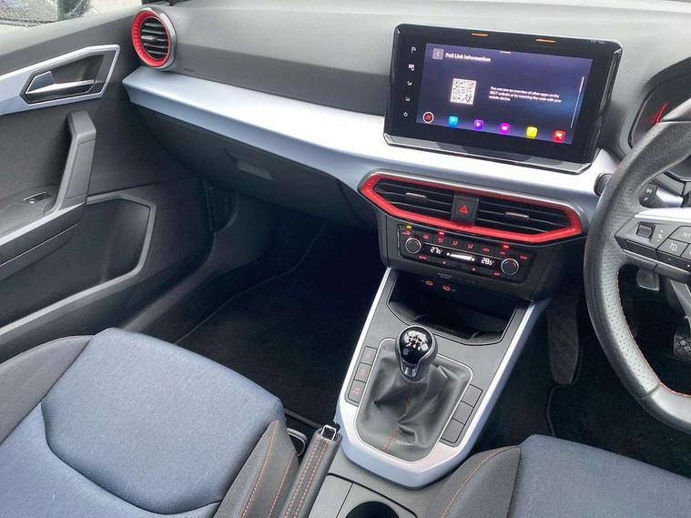 'Lights On' Reminder warning buzzer, 8" Digital cockpit, Digital clock, E-call, Electric speed sensitive power steering, Full Link Smartphone Integration with Mirror Link, Apple Car Play, Google Android Auto with USB Type C cable for Apple and Android compatibility, Lane keeping system, Low fuel warning light, Outside temperature display, Rear parking sensor, RPM counter, Seat connect with safety, service, remote and online, SEAT Drive profile - Four different models normal-sport-eco-individual, steering response, throttle response, Trip computer, Wireless phone charger, 9.2" colour touchscreen with navigation system, voice control and USB port (type c), Bluetooth interface for hands free and audio streaming, DAB digital radio and AM/FM radio, Steering wheel mounted audio controls, Anti theft roof antenna, Auto dimming interior rear view mirror, Automatic activation of hazard warning lights, Body coloured bumpers, Body coloured door handle inserts, Chrome roof rails and window surrounds, Dark tinted rear windows, Electric front/rear windows, Electrically adjustable, heated and folding door mirrors, Front fog lights with cornering function and rear fog light, FULL LED automatic headlights with dynamic headlight range control, coming and leaving home, LED daytime running lights, LED rear tail lights and licence plate lights, Protective side mouldings, Rain sensing wipers, Rear side wing doors, Rear spoiler, Rear window wash/wipe, Roof colour door mirrors, Third brake light, Twin exhaust pipe styling hidden exhaust pipe, Visible VIN plate, Windshield wiper with intermittent control and potentiometer, 2 cupholders, 3 seat bench in 2nd row, 60/40 split folding rear seat, Aircare filter, Black interior roof, Cloth upholstery, Double boot floor, Driver sunvisor with covered mirror + card holder, Dual zone climate control, Front courtesy light with 2x front and 2x rear reading lights, Front sport seats, Gear shift indicator, Height adjustable front seats, Height/reach adjustable steering column, Illuminated boot, Instrument lighting with brightness control, Interior ambient lighting, Interior light in footwell, central console and door panel, ISOFIX points in outer rear seats with top tether anchorage points, Passenger sunvisor with vanity mirror, Perforated flat bottomed leather steering wheel/gear knob/handbrake with red stitching and FR logo, Single front passenger seat, Two front and three rear height adjustable headrests, Interior chrome pack - Arona, 3 point seatbelts on all rear seats, ABS, Active front headrests, Child locks on rear doors, Driver and front passenger airbags with front passenger airbag de activation, front side and curtain airbags, Electronic stability control, Emergency Brake Assist (EBA) and front assist, Front and rear seatbelt reminder, Hill hold control, Multi-Collision braking, Tiredness recognition system, Traction control, Tyre pressure monitoring system, Alarm with back-up horn, Electronic engine immobiliser, Locking wheel bolts, Remote central locking + deadlocks, Tow away protection, Titan black dashboard, 17" Dynamic alloy wheels,