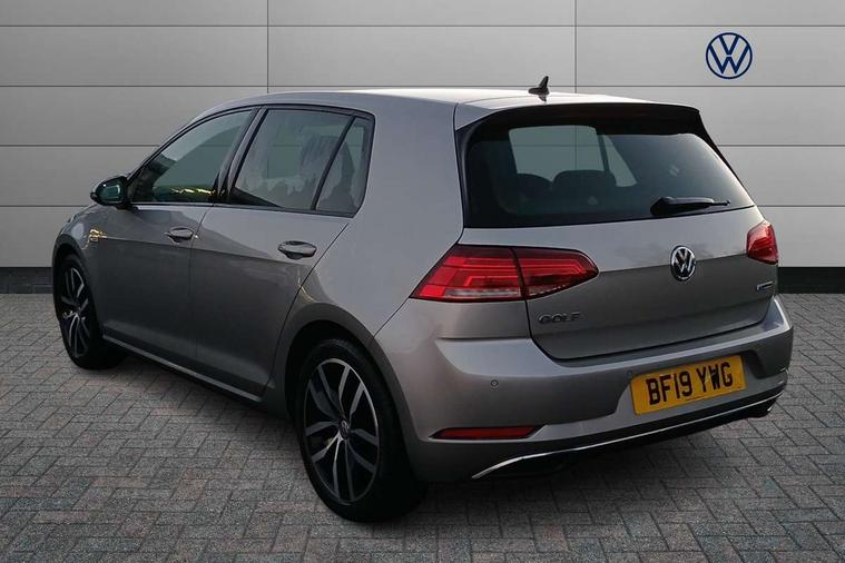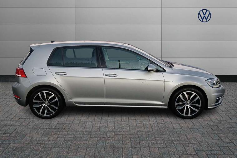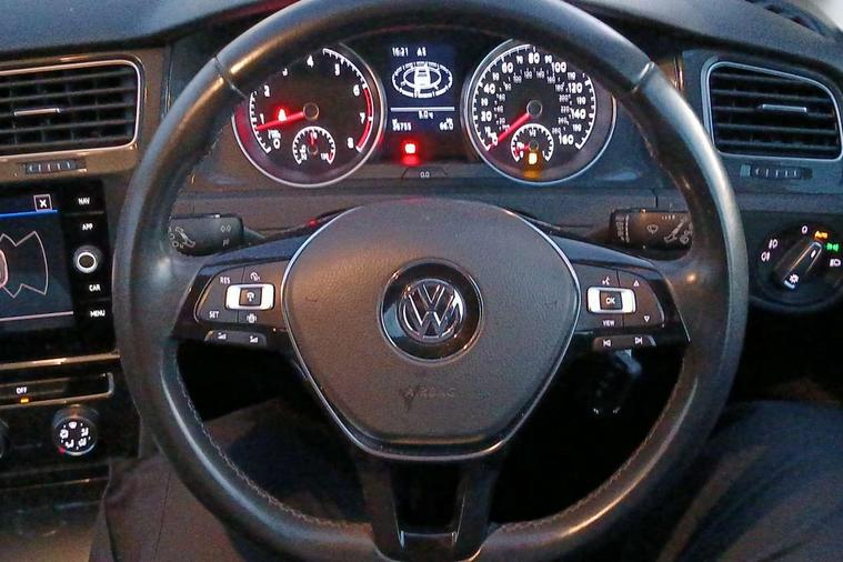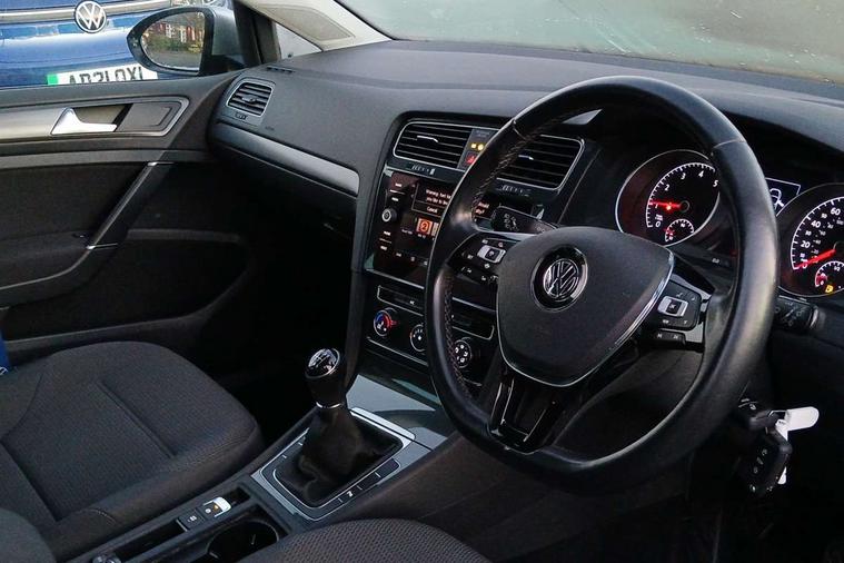 'Lights On' Reminder warning buzzer, ACC - Adaptive cruise control with front assist, forward collision warning, distance monitoring, city emergency brake and speed limiter, Bluetooth telephone and audio connection for compatible devices, Brake pad wear indicator warning light, Driver alert system, Driver profile selection, Driving Mode Selection with four preset modes - Eco, normal, sport or individual modes, Instrument cluster in white, Multifunction computer with visual gear change recommendation for fuel consumption, Power assisted speed sensitive electro-mechanical steering, Push tank flap, Speed limit display, Speedo, rev counter, electronic odometer, trip, service interval display, exterior temperature and fuel gauge, Stop/start system, Warning buzzer and light for front seatbelts unfastened, Battery regeneration during braking, XDS electronic differential lock, Composition media system, DAB Digital radio receiver, Driver Personalisation profile selection, MP3/WMA compatability, Multi device interface (MDI) with USB connection, Personalisation 1.1 profile for media, Premium USB cable in choice of either Apple or Android smartphone compatibility, SD card slot, SMS Functionality, USB and SD card connectivity, Black front air intake and radiator grille with chrome insert, Black rear diffuser, Body colour bumpers, Body colour door handles, Body colour door mirrors with integrated indicators, Dusk sensor + automatic driving lights, Electric front windows, Electric rear windows, Electrically adjustable and heated door mirrors, Fully galvanised body, Heated rear windscreen, Hidden exhaust pipe, High level 3rd brake light incorporating LED Technology, LED daytime running lights, LED front fog lights with static cornering light function, Rear fog lamp, Rear tinted glass 65% light absorbing from B pillar backwards, Rear window aerial, Rear window wash/wipe with intermittent wipe, Reflectors in all doors, Tailgate with integrated rear roof spoiler, Windscreen wipers/ intermittent wipe + 4 position delay, 12V socket in luggage compartment, 3 rear headrests, 4 load lashing points in luggage compartment, 60/40 split folding rear seat backrest, Auto fold down lever in rear seat backrest, Bag hook in luggage compartment x 2, Cooled glovebox, Cupholder cover, Dust/pollen filter, Front and rear reading lights incorporating LED technology, Front centre armrest with storage compartment and two rear air vents, Front seat back storage pockets, Grab handles front x 2, rear x 2 with integrated coat hooks, Height and reach adjustable steering wheel, Illuminated vanity mirrors, Instrument lighting white adjustable panel illumination, Interior light delay, Isofix preparation for 2 rear child seats, Load through provision with rear centre armrest and cupholders x2, Luggage compartment lighting, Overhead storage box, Passenger underseat drawer, Pearl grey headlining, Storage box in luggage compartment, Storage compartment in roof console with cover, Storage compartments in centre console, Storage compartments in front doors, Storage compartments in rear doors, Stowable luggage compartment cover, Sun visors, Variable boot floor, height adjustable and removable, Convenience Pack - Golf, Light and Sight pack - Golf, Mirror pack - Golf, 3 rear three point seatbelts, Airbags - Driver's and front passenger's, curtain airbag, Driver's knee, front side impact and passenger's airbag deactivation switch, Anti-lock Braking System (ABS) with Hydraulic Brake Assist (HBA), Automatic post collision braking system, Child locks on rear doors, Driver/Passenger optimised head restraints, Electronic parking brake with auto hold, Electronic stability control (ESC) including Electronic differential lock (EDL) and ASR (Traction control) with deactivation via infotainment system, Front ventilated disc brakes and rear disc brakes, Pre crash preventive occupant protection, Three point height adjustable front seatbelts with tensioners, Tyre pressure loss indicator, Alarm with interior protection and deactivation via infotainment system, Electronic engine immobiliser, Remote central locking with 2 remote folding keys, Brushed dark silver decorative inserts in dash and door panels, Chrome plated air vent surround, Chrome plated electric mirror adjustment light switch surround, Polar night black centre console, Steel space saver spare wheel,