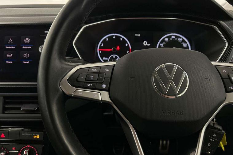 Decorative inserts transition high gloss black/platnium grey, 17" Manila black diamond turned surface alloy wheels + anti theft wheel bolts, Breakdown kit, Alarm with interior protection and deactivation via infotainment system, Child security locks in rear doors, Electronic engine immobiliser, Remote tailgate unlocking using key fob, 2x USB connection with USB charging sockets and in rear centre console, DAB Digital radio receiver, Diversity antenna for FM reception, Multi device interface (MDI) with USB connection, Music playback - MP3, WMA and AAC files, Premium USB cable for Apple or Android smartphone compatibility, Simultaneous pairing of 2 compatible mobile devices, Title and cover art display, 3-point seat belts in front with electric tensioner + height adjustment, Anti-lock Braking System (ABS) with Hydraulic Brake Assist (HBA), Automatic post collision braking system, Driver and front passenger safety-optimised head restraints, Drivers and Front Passengers airbags with front passengers airbag deactivation switch, ESC with EDL, ASR, EDTC and trailer stabilisation function, Front and rear curtain airbags, Front seat side impact airbags, Hill start assist, Pre crash preventive occupant protection, Proactive passenger protection system in combination with front assist, Rear door child safety locks, Rigid safety cell with front and rear crumple zones, Single torn horn, Tyre pressure loss indicator, Volkswagen roadside assistance, Automatic hazard lights activation under emergency braking, Black door mirrors, Black roof rails, Body colour door handles, Body coloured bumpers, Dusk sensor + automatic driving lights, Electrically foldable, adjustable and heated door mirrors with reverse activated kerb view adjustment on passenger's side, Front and rear electric windows, Front fog lights with static cornering function, Galvanised body, Heated rear window, LED third brake light, Lower door sills and door pillars in black, Radiator grille with high gloss surface and chrome strip, Rear fog light on one side, reversing light on both sides, Rear lights incorporating LED technology, Rear side wing doors, Rear tinted glass 65% approx light absorbing from B pillar backwards, Rear window aerial, Rear windscreen washer and wiper with interval delay, Reflectors in all doors, Tailgate with integrated roof spoiler, Windscreen wipers/ intermittent wipe + 4 position delay, 12V Accessory socket in centre console, 3 rear head restraints and 3 rear three point seat belts with ECE label, 3 seat bench in 2nd row, 60/40 split folding rear seat backrest, Comfort front sport seats, Diag cloth upholstery, Drawer under drivers seat, Driver and front passenger sunvisor with vanity mirror, Driver's sunvisor with ticket holder, Dust and pollen filter, Front + rear carpet mats, Front and rear reading lights X 2, Front centre armrest with storage compartment, Front seat back storage pockets, Front seats with adjustable lumbar support, Glovebox, Heating and fresh air system with 4 stage blower, Height/reach adjust steering wheel, Instrument lighting white adjustable panel illumination, Interior light with delay, Isofix child seat preparation for 2 rear child seats, Luggage compartment cover, Luggage compartment lighting, Manual air conditioning, Moveable and foldable Rear bench seat, Single front passenger seat, Storage compartment in drivers and front passengers door, Three spoke multi-function leather trimmed steering wheel and gearknob, 'Lights On' Reminder warning buzzer, Adaptive cruise control including front assist, forward collision warning, autonomous emergency braking, speed limiter, Blind spot monitoring, Bluetooth telephone and audio connection for compatible devices, Car information display, Digital cockpit, Driver alert system, eCall emergency call system, Lane assist, Low washer fluid warning light, Multifunction computer with visual gear change recommendation for fuel consumption, Operating permit alteration, Power assisted speed sensitive steering, Speedo, rev counter, electronic odometer, trip, service interval display, exterior temperature and fuel gauge, Stop/start system, Tailgate, Warning sound and light for doors and tailgate open, Warning sound and light for front seatbelts unfastened, We Connect Go Dongle, Wireless Car net app connect with Apple CarPlay, combined functionality of Apple CarPlay/Android Auto and MirrorLink, Battery regeneration during braking, Misfuel prevention device,