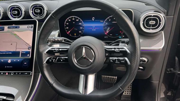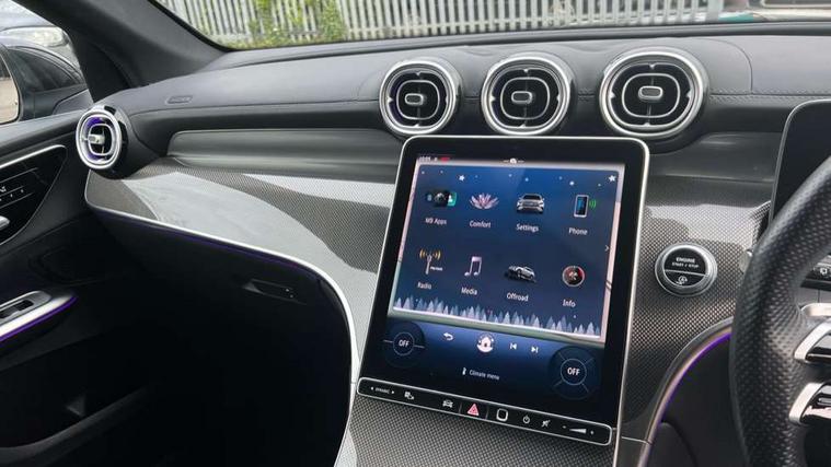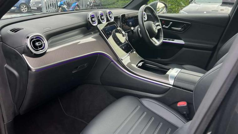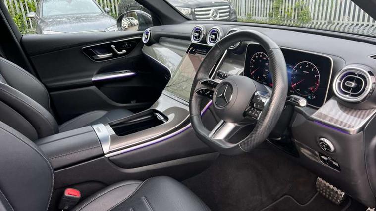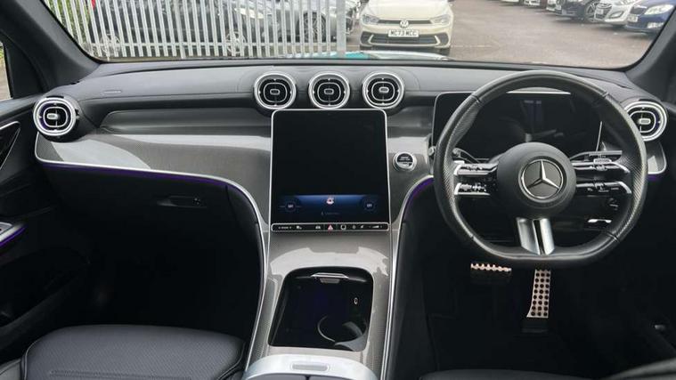 11.9" high resolution multimedia colour display, 12.3" Digital individually configurable instrument display, Acoustic presence indicator, Active lane keeping assist, Attention assist, Blind spot assist, Bluetooth interface for hands free telephone, Collision prevention assist plus, Cruise control with speedtronic variable speed limiter, Direct steer speed sensitive steering, DYNAMIC SELECT with a choice of driving modes (ECO, Comfort, Sport, Sport+ and Individual), Easy pack automatic powered tailgate, eCall emergency call system, ECO start/stop function, Fingerprint scanner, Fluorescent jacket for driver, Hard disc navigation, Instrument display in miles with English lettering, MBUX navigation premium, MBUX voice control activated by keywords "Hey Mercedes", Mercedes me connect, Outside temperature display, Remote boot release, Remote services, Service indicator (ASSYST), Smartphone integration, Speed limit assist, Status display for rear seat belts in instrument cluster, Traffic sign assist, Trip computer, Wireless charging, 48V Mild hybrid technology, 4MATIC permanent four wheel drive, 62 litre fuel tank, 9G TRONIC plus automatic transmission, Petrol Particulate Filter (PPF), Sport suspension, DAB digital radio tuner, MBUX extended functions, Mercedes benz sound system, Pre installation for Mercedes Benz Link, Adaptive brake lights, Adaptive high beam assist, Aluminium look running boards with rubber studs, Aluminium roof rails, AMG bodystyling front apron, rear apron and side skirts, AMG Line exterior, Auto headlights, Body colour bumpers, Body colour door mirrors, Electrically adjustable door mirrors, Front and rear electric windows, Headlight washers, Heat insulating dark tinted glass, Heated rear window, High level LED brake light, LED high performance headlamps with integrated LED daytime running lights, LED indicator lights, LED rear fog lights, LED tail lamp, Radiator grille with Mercedes Benz pattern and integreated Mercedes star and louvre in dark grey matt with chrome inlay and black frame, Rain sensor windscreen wipers, Range adjustable headlights, Rear side wing doors, Rear wiper, Two chrome plated tailpipe trim elements, Variable front intermittent wipers, Welcome and follow-me home light functionality, Wider wheel arch for AMG wheels, 3 seat bench in 2nd row, 40:20:40 split folding rear seats, Ambient lighting premium, AMG line interior, Artico man-made leather upholstery, Audio and onboard settings control on multifunction steering wheel, Automatic child seat recognition sensor, Black fabric roof lining, Black floor mats with AMG lettering, Double cup holder in centre console, Easy-pack removable load compartment cover, Electrically height/reach adjustable steering column, Front centre armrest with stowage compartment, Front head restraints, Galvanised steering wheel gearshift paddles, Heated front seats, Illuminated door sill panels with Mercedes Benz lettering, Illuminated glove compartment, Instrument panel and beltlines in ARTICO manmade leather in nappa look, Multifunction sports steering wheel in nappa leather, Rear centre headrest, Rear head restraints, Rear top tether child seat ISOFIX attachment, Single front passenger seat, Sports pedals with stainless steel surfaces and rubber studs, Sports seats, Sun visors, THERMATIC 2 zone automatic climate control, Anti theft protection package - GLC, Boot comfort package - GLC, Exterior chrome package - GLC, Interior chrome package - GLC, Interior lighting pack - GLC, Memory pack - GLC, Mirror pack - GLC, Parking package with reversing camera - GLC, Seat comfort package - GLC, Stowage space package - GLC, USB Package - GLC, 3 rear 3 point seatbelts, Active braking assist, Anti-lock braking system (ABS), ASR traction control, Automatic front passenger airbag deactivation, Black seat belts, Brake calipers with Mercedes-Benz lettering + perforated brake discs, Braking system with larger brake discs on the front axle, Child proof door locks, Dual-stage airbags - driver and front passenger, driver knee bag and window bags for driver, front passenger and rear passengers, Electronic parking brake, Electronic stability programme (ESP) with curve dynamic assist and cross wind assist, Front and rear seatbelt reminder, Front passenger seat occupancy sensor, Front seatbelt pretensioners, Hill start assist, Tyre pressure monitoring system, Warning triangle and first aid kit, Automatic door locking, Guard 360 degree vehicle protection plus, Interior protection/immobiliser, Keyless Go starting function, Remote central locking, Centre console in metal structure finish, Metal structure trim, 19" AMG 5 spoke aerodynamically optimised light alloy wheels in painted black with high sheen flange, Summer tyres, TIREFIT with tyre inflation compressor,