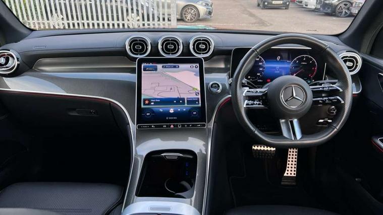 11.9" high resolution multimedia colour display, 12.3" Digital individually configurable instrument display, Acoustic presence indicator, Active lane keeping assist, Attention assist, Blind spot assist, Bluetooth interface for hands free telephone, Collision prevention assist plus, Cruise control with speedtronic variable speed limiter, Dashcam - front camera for video recording, Direct steer speed sensitive steering, DYNAMIC SELECT with a choice of driving modes (ECO, Comfort, Sport, Sport+ and Individual), eCall emergency call system, ECO start/stop function, Fingerprint scanner, Fluorescent jacket for driver, Hard disc navigation, Instrument display in miles with English lettering, MBUX augmented reality for navigation, MBUX navigation premium, MBUX voice control activated by keywords "Hey Mercedes", Mercedes me connect, Outside temperature display, Remote boot release, Remote services, Road sign recognition system, Service indicator (ASSYST), Smartphone integration, Status display for rear seat belts in instrument cluster, Traffic sign assist, Trip computer, Wireless charging, 48V Mild hybrid technology, 4MATIC permanent four wheel drive, 62 litre fuel tank, 9G TRONIC plus automatic transmission, Diesel particulate filter, Sport suspension, DAB digital radio tuner, MBUX extended functions, Mercedes benz sound system, Pre installation for Mercedes Benz Link, Adaptive brake lights, Adaptive high beam assist plus, Aluminium look running boards with rubber studs, Aluminium roof rails, AMG bodystyling front apron, rear apron and side skirts, AMG Line exterior, Auto headlights, Body colour bumpers, Body colour door mirrors, Digital light LED headlights, Electrically adjustable door mirrors, Front and rear electric windows, Headlight washers, Heat insulating dark tinted glass, Heated rear window, High level LED brake light, Integrated LED daytime running lights, LED indicator lights, LED rear fog lights, LED tail lamp, Motor way mode function and locator lighting, Noise acoustic glass, Radiator grille with Mercedes Benz pattern and integreated Mercedes star and louvre in dark grey matt with chrome inlay and black frame, Rain sensor windscreen wipers, Range adjustable headlights, Rear side wing doors, Rear wiper, Transparent Bonnet, Two chrome plated tailpipe trim elements, Variable front intermittent wipers, Welcome and follow-me home light functionality, Wider wheel arch for AMG wheels, 3 seat bench in 2nd row, 40:20:40 split folding rear seats, Ambient lighting premium, AMG line interior, Artico man-made leather upholstery, Audio and onboard settings control on multifunction steering wheel, Automatic child seat recognition sensor, Black fabric roof lining, Black floor mats with AMG lettering, Double cup holder in centre console, Easy-pack removable load compartment cover, Electrically height/reach adjustable steering column, Front centre armrest with stowage compartment, Front head restraints, Galvanised steering wheel gearshift paddles, Heated front seats, Illuminated door sill panels with Mercedes Benz lettering, Illuminated glove compartment, Instrument panel and beltlines in ARTICO manmade leather in nappa look, Multifunction sports steering wheel in nappa leather, Rear centre headrest, Rear head restraints, Rear top tether child seat ISOFIX attachment, Single front passenger seat, Sports pedals with stainless steel surfaces and rubber studs, Sports seats, Sun visors, THERMATIC 2 zone automatic climate control, Anti theft protection package - GLC, Boot comfort package - GLC, Exterior chrome package - GLC, Interior chrome package - GLC, Interior lighting pack - GLC, Keyless-Go comfort package - GLC, Memory pack - GLC, Mirror pack - GLC, Parking package with 360 degree camera - GLC, Seat comfort package - GLC, Stowage space package - GLC, USB Plus Pack - GLC, 3 rear 3 point seatbelts, Active braking assist, Anti-lock braking system (ABS), ASR traction control, Automatic front passenger airbag deactivation, Black seat belts, Brake calipers with Mercedes-Benz lettering + perforated brake discs, Braking system with larger brake discs on the front axle, Child proof door locks, Dual-stage airbags - driver and front passenger, driver knee bag and window bags for driver, front passenger and rear passengers, Electronic parking brake, Electronic stability programme (ESP) with curve dynamic assist and cross wind assist, Front and rear seatbelt reminder, Front passenger seat occupancy sensor, Front seatbelt pretensioners, Hill start assist, Tyre pressure monitoring system, Warning triangle and first aid kit, Automatic door locking, Guard 360 degree vehicle protection plus, Interior protection/immobiliser, Remote central locking, Centre console in metal structure finish, Metal structure trim, 20" AMG 5 spoke aerodynamically optimised light alloy wheels in painted black with high sheen finish, Summer tyres, TIREFIT with tyre inflation compressor,