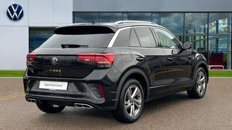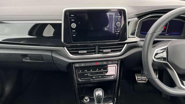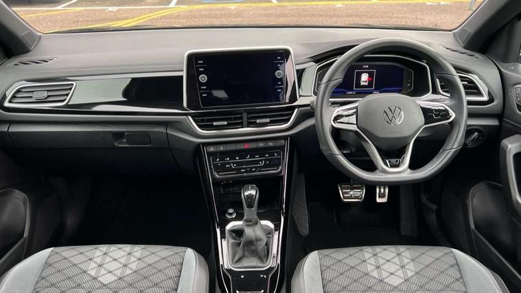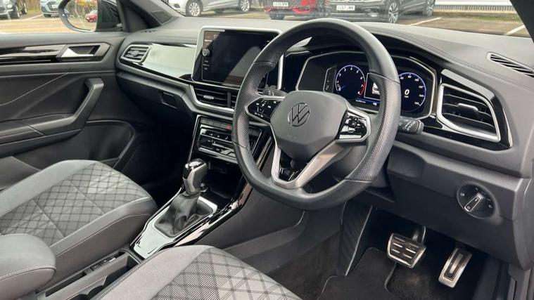 10.25" Digital cockpit pro, Bluetooth mobile phone interface, Driver alert system with fatigue detection, Driver tips and journey analysis, Emergency call service, Lane keeping system Lane Assist, Modified key software - reduce switch off time for key status change to Long no motion, Online services, Park assist including front and rear parking sensors, Service interval indicator, Tailgate/trunk lid release from outside, Think blue trainer driver tips and journey analysis, Warning sound and light for front seatbelts unfastened, Wireless app connect, Battery regeneration during braking, Start/stop function with battery regeneration, Diversity antenna for FM reception, Front and rear 6 speakers, Music playback - MP3, WMA and AAC files, Premium USB cable in choice of either Apple or Android smartphone compatibility, SD card slot, Simultaneous pairing of 2 compatible mobile devices, Title and cover art display, We Connect and We Connect Plus functionality, 3rd brake light, Auto dimming interior rear view mirror, Automatic hazard lights activation under emergency braking, Automatic headlight control with LED separate daytime running lights with coming/leaving home function, Extended roof spoiler, Exterior mirrors aspherical on driver side, convex on front passenger side, External USB type C socket and charging sockets, Front windscreen wiper with intermittent wipe and 4 position delay, Heated rear window, LED Plus headlamps, LED rear combination lamps, LED rear number plate lights, LED tail lamp rear comination lamps, Power windows with comfort operation and circuit breaker, R-Line design body coloured bumpers, Rain sensor, Rear exhaust tailpipe, Rear fog light on one side and reversing lights on both sides, Rear side wing doors, Rear wash/wipe with intermittent wipe setting, Remote electrically foldable door mirrors, puddle lights and reverse activated passenger's door mirror, 12V power socket in centre console, 3 rear head restraints, 3 seat bench in 2nd row, 4 load lashing points in luggage compartment, Air care climatronic air conditoning system with active combination filter and 2-zone temperature control, Black roof lining, Chrome plated radiator grille inserts, air vent surrounds and light switch surrounds, Door and side trim panel with leatherette insert, Drawer under drivers seat, Front + rear carpet mats, Front centre armrest, Front cupholders x 2, Front footwell illumination, Front reading light, Front scuff plates with R logo, Instrument lighting, white adjustable panel illumination, Interior ambient lighting and surround lighting, Interior light delay, Isofix child seat preparation, Leather gearshift handle, Load-through provision with cup holder when folded down ('Unsplit rear seat bench, split folding backrest, with centre armrest), Luggage compartment lighting, Single front passenger seat, Stainless steel pedals, Storage compartment in left and right luggage area, Storage compartment in rear doors, Storage compartments in driver and front passenger doors, Sunvisors with illuminated vanity mirrors, Variable boot floor, height adjustable and removable, Driver assistance pack without proactive passenger protection - T-Roc, 3 point height adj front seatbelts + pretensioners, 3 point seatbelts in outer rear with ECE label, ABS, Child locks on rear doors, Driver and front passenger airbag with front passenger airbag deactivation, Driver and front passenger safety-optimised head restraints, Drivers seatbelt reminder, Electronic parking brake, Electronic Stability Control (ESC) inc EDL (Electronic Differential Lock) and ASR (Traction Control), Front and rear passengers curtain airbag system including front side airbags, Front assist with city emergency braking and pedestrian monitoring, Front seat side impact airbags, Hill start assist, Predictive pedestrian protection, Rear disc brakes, Single tone horn, Tyre pressure loss indicator, Volkswagen roadside assistance, Alarm with interior protection, Anti-theft alarm system with interior monitoring, backup horn, and towing protection, Remote central locking with SAFELOCK, radio remote control with 2 remote control folding keys, Trims for alloy wheels,