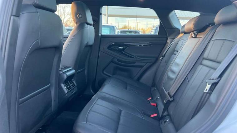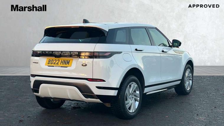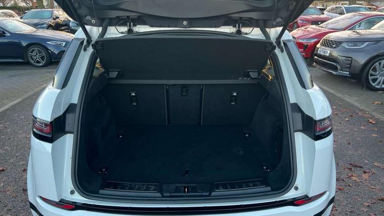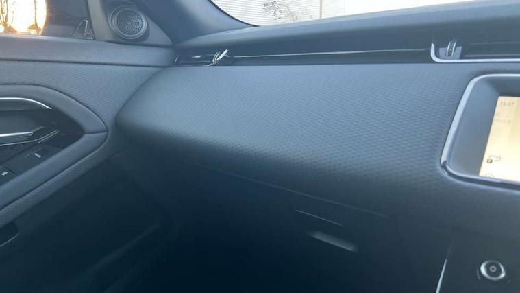 Android Auto, Apple car play, Bluetooth connectivity, Brake pad wear indicator warning light, Cruise control + speed limiter, Driver condition monitor, eCall emergency system, Electronic power assisted steering (EPAS), Front and rear parking aid, InControl remote, Land Rover InControl apps, Lane keep assist, Pivi pro connected includes upgraded infotainment, connected navigation pro, Nuance speech licence, Push button starter, Traffic sign recognition with adaptive speed limiter, Voice control system, All terrain progress control, Efficient Driveline, Passive suspension, Terrain Response 2 Auto, Digital Audio Broadcast radio-DAB, Steering wheel mounted controls, Auto headlights, Daytime running lights, Electric windows with one touch open/close and anti trap, Evoque and R-Dynamic badge, Flush deployable exterior door handles, Heated rear window with timer, Heated washer jets, Heated windscreen, Power fold, auto-dimming, heated door mirrors with approach lights and auto dimming driver side, Rain sensing windscreen wipers, Rear fog lights, Rear side wing doors, Rear wiper, Tailgate spoiler, Third brake light, 40:20:40 split folding rear seats with centre headrest and armrest, Ambient interior lighting, Bright metal pedals, Isofix system on outer rear seats, Overhead lighting console, Overhead stowage for sunglasses, Passive front head restraints, Rear air vents, Rear centre headrest, Rear head restraints, Satin chrome gearshift paddles, Single passenger seat, Sunvisors with illuminated vanity mirrors, Twin sliding front centre armrest, 3 rear 3 point seatbelts, Anti-lock braking system (ABS), Customer configurable autolock, DSC - Dynamic Stability Control, Electronic brake force distribution, Electronic parking brake, Electronic traction control, Emergency braking, Front and rear seatbelt reminder, Hill descent control, Hill launch assist, Low traction launch, Power operated child locks, Roll stability control, Six airbags - Driver and passenger airbags/driver knee airbag/front side airbag and curtain airbags, Torque vectoring brake, Tyre pressure monitoring system, Alarm, Immobiliser, Intrusion sensor, Locking wheel nuts,