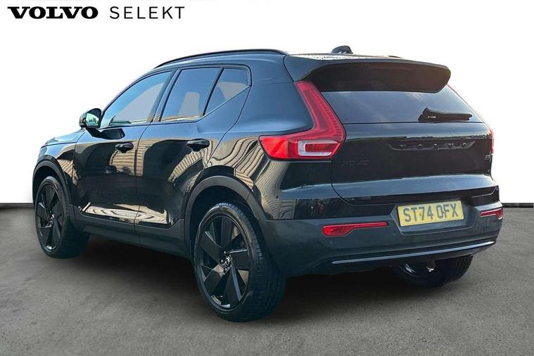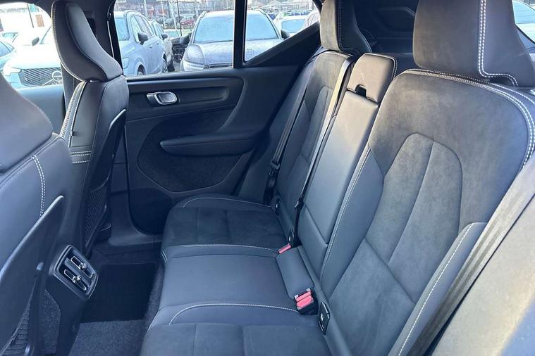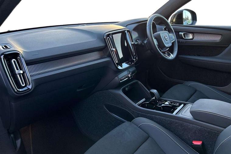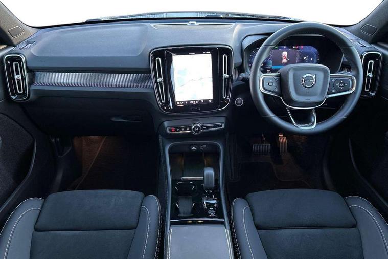 12.3" Progressive Driver Display, 9" centre console portrait touch screen, Adjustable steering wheel force, Android auto (Wired), Apple carplay (wired), Bluetooth handsfree system, Cruise control, Driver alert control, E-call, Front park assist, Google automotive services - Enabled entertainment apps, navigation with google maps, voice recognition with google assistant, Hands free power tailgate, Intelligent speed assistance, Lane keeping aid, Oncoming Lane Mitigation, Rear park assist, Speed sensitive steering, Volvo cars services with app - Driving journal, emergency and breakdown call, engine remote start, remote door locking/unlocking and vehicle dashboard, Wireless/Inductive Mobile Phone Charging, Automatic transmission with start/stop and manual change functions, Dynamic chassis, DAB Digital radio, Steering wheel mounted remote controls, Adaptive brake lights with high level LED brake lights, Auto dimming interior mirror, Automatic headlamp levelling, Automatic LED Headlights + Active high beam incorporating daytime running lights, Colour coordinated auto folding and heated power door mirrors, Dark tinted windows - rear side windows and rear screen, Front aluminium tread plates, Front and rear electric windows, High gloss black front and rear skid plate, High gloss black front bumper deco, High gloss black front grille strikethrough and ironmark, High gloss black rear model, engine and volvo logo badges, High gloss black window trim, Home safe and approach lighting, Integrated roof rails in high gloss black, LED front fog lights, Puddle lights, Rain sensor with automatic windscreen wiper activation, Rear side wing doors, Rear wiper, Roof antenna, Roof spoiler, Special metallic paint, Visible VIN plate, 12V socket in front tunnel console and luggage compartment, 2-Zone electronic climate control with CleanZone air quality system and pollen filter, 3 seat bench in 2nd row, 3 Spoke tailored steering wheel with chrome trim, 60/40 versatile split folding rear seat, Centre console cupholders and storage, Charcoal headlining, Connect textile/microtech upholstery, Flexible load floor and grocery bag holder, Floor mats, Front cabin courtesy lights, Front door pocket, front cupholder, ambient front door, rear reading, rear courtesy, instrument panel and tailgate lighting, Front footwell illumination, Front headrests, Front reading lights, Front seat cushion extensions, Front side step illumination (under door), Glovebox bag hook, Heated front seats, Height adjustable passenger seat, Height/reach adjustable steering column, High gloss centre tunnel deco, Illuminated glovebox, Illuminated luggage compartment, Illuminated vanity mirrors + ticket holder, Integrated waste bin, Isofix attachments on outer rear seats, Load cover, Load protection net, Multi directional lumbar support for driver and passenger seat, Power driver seat with memory + exterior mirrors memory, Rear armrest with cupholders, Rear headrests, Single front passenger seat, Underfloor cargo storage, Climate pack without heated front seats - XC40, 3x3 point rear seatbelts, City safety with steering support with Pedestrian + cyclist + front collision warning with full auto brake and rear auto brake, Driver and passenger airbags, Drivers knee airbag, Electronic parking brake with auto hold, First aid kit, Front and outer rear seatbelt reminder and pretensioners, Front seats SIPS airbags, Hill descent control, Hill start assist, Inflatable curtain, Passenger airbag cut-off device, Power child locks on rear doors, Road sign information display, Run off Road Protection, SIPS (Side Impact Protection System), Slippery road and hazard light alert, Stability and Traction Control with Spin control, Engine Drag Control and Corner Traction Control, Tyre pressure monitoring system, Vehicle deceleration control with Anti-lock Brake System, Electronic Brake Distribution and Emergency Brake Assist, Warning triangle, WHIPS whiplash protection system - front, 2 x Key integrated remote control central locking including with deadlocking system and auto open/close windows, Anti-theft alarm including immobiliser/volume sensor + level sensor, Keyless drive includes keyless entry and keyless start, Locking wheel nuts, 20" 5 spoke high gloss black alloy wheels,