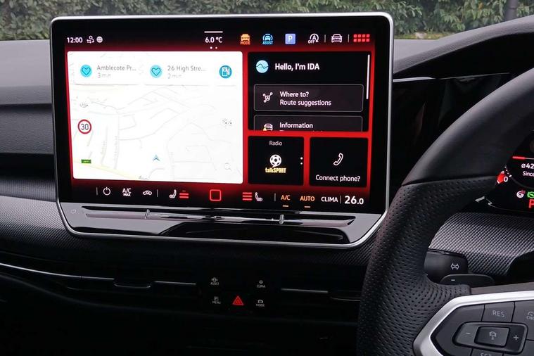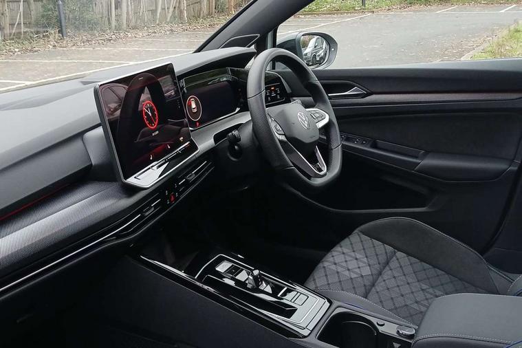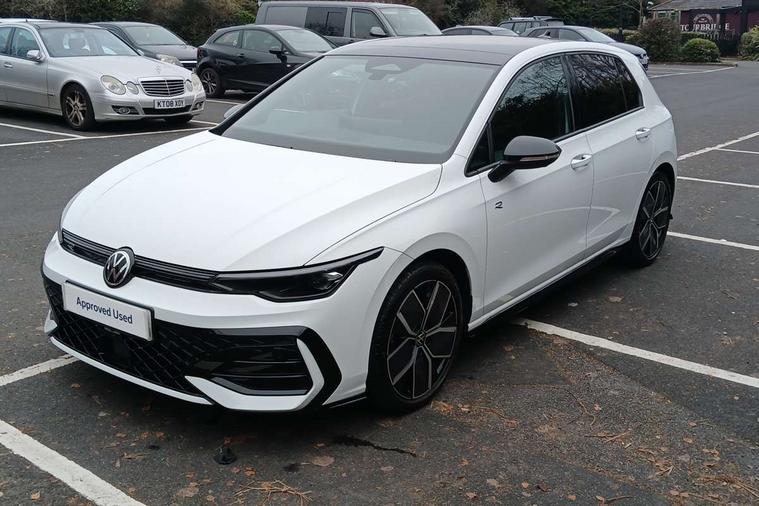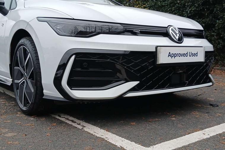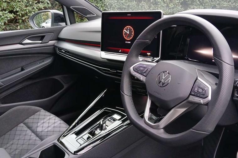 Activated carbon canister, Adaptive cruise control (ACC), Advanced driver attention and drowsiness monitor, Dynamic road sign display, Dynamic steering, E-Sim card for online connectivity, eCall emergency call system, Multi-color Digital cockpit pro, selection of different info profile possible, Multifunction front facing camera for distance control, Navigation system, Oncoming vehicle braking when turning including swerve support, Speed limiter, Speedo, rev counter, electronic odometer, trip, service interval display, exterior temperature and fuel gauge, Traffic jam assist, Voice enhancer and voice control, Warning signal and warning light for front and rear seatbelts not fastened, We connect plus preparation, We connect preparation, Wireless app connect, Hybrid propulsion system, Petrol Particulate Filter, Start-stop system with battery regeneration (recuperation - energy recovery during braking), XDS electronic differential lock for improved traction and handling, 2 USB C ports in front, 2 USB charging sockets on the centre console in the rear charging capacity upto 45W, Digital radio reception (DAB), Diversity antenna for FM reception, Gaming platform via car app, Infotainment system with 12.9" display, Mobile phone interface with inductive charging feature, 3rd brake light, Auto dimming rear view mirror, Automatic headlamp activation with Coming home and Leaving home feature, Body colored bumpers in R-Line style, Body colour door handles, Exterior ambient lighting, Exterior mirrors convex on the left and aspherical on the right, Front and rear electric windows, Heat insulating windshield made of laminated glass, LED separate daytime running light, Rain sensor, Rear exhaust tailpipe, Rear fog light on one side and reversing lights on both sides, Rear side wing doors, Rear windscreen washer and wiper with interval delay, Remote electrically foldable door mirrors, puddle lights and reverse activated passenger's door mirror, Volkswagen logo in front, illuminated lighting animation with wake up/goodbye scenario and illuminated door handles, Welcome light with surround lighting, 12V socket in front centre console, 12V socket in luggage compartment, 3 rear head restraints, 3 seat bench in 2nd row, Ambient lighting with 30 colour including LED light unit in front footwell with selectable light colour, Black roof lining, Brushed stainless steel pedals, Chrome plated radiator grille inserts, air vent surrounds and light switch surrounds, Door insert, side trim panel and arm support in leatherette, Front + rear black carpet mats, Front centre armrest, Front seat lumbar support adjuster, Integrated front head restraints, ISOFIX anchors for child seats on outer rear bench seats and on front passanger seat compatible for i-Size, Luggage compartment lighting, Manual height adjustable front passenger seat, Manually height adjustable driver seat, Plastic gear knob, Premium sports seats in front, Rear cupholder and loadthough, Sardegna cloth upholstery with front and outer rear seats Art Velour inner sides of bolsters, Single front passenger seat, Split folding backrest with centre armrest and unsplit rear seat bench, Sun visors with illuminated vanity mirrors, Titanium black instrument panel, Black exterior Styling package with Matrix LED headlights - Golf, Winter package - Golf DSG Estate/Hatchback, 3 point height adj front seatbelts + pretensioners, 3 rear three point seatbelts, ABS, Autonomous emergency braking front assist with pedestrian and cyclist monitoring, Child locks on rear doors, Driver and front passenger airbag with front passenger airbag deactivation, Electronic parking brake with auto hold, ESC (Electronic Stability Control), Extended pedestrian protection measures, Hill start assist, Rear disc brakes, Two tone horn, Tyre pressure loss indicator, Volkswagen roadside assistance, Anti theft wheel bolts, Preparation for alcohol interlock, Decorative inserts carbon grey for dashboard and front door trim panels, 18" Leeds alloy wheels, Tool kit for tyre mobility set, Tyre mobility kit Includes 12V compressor and tyre sealant,