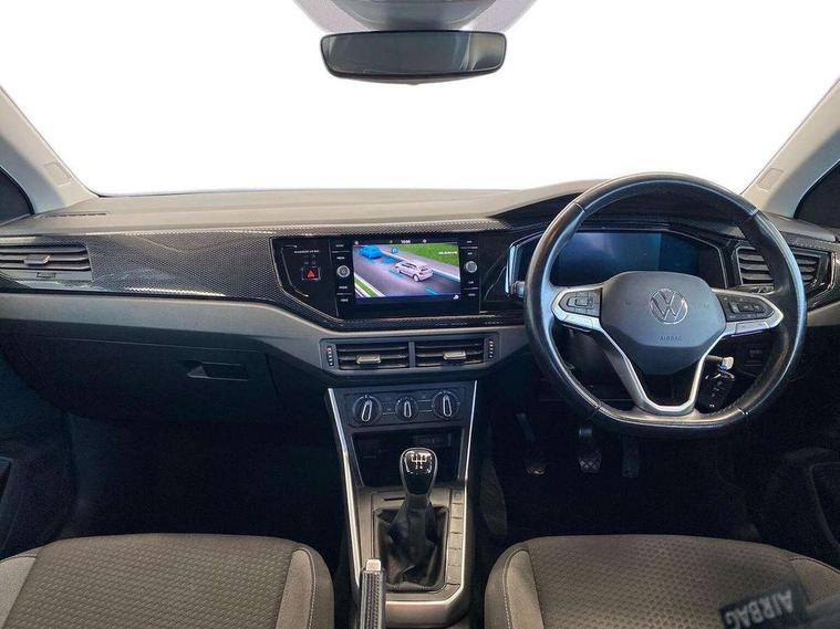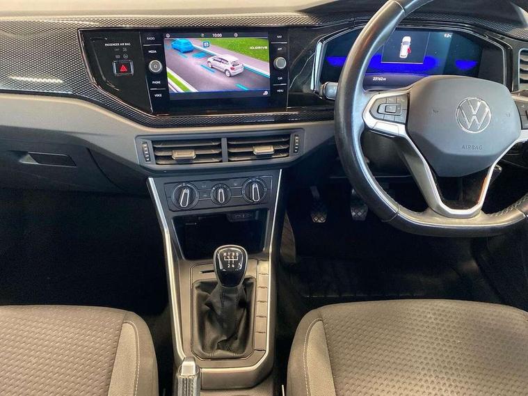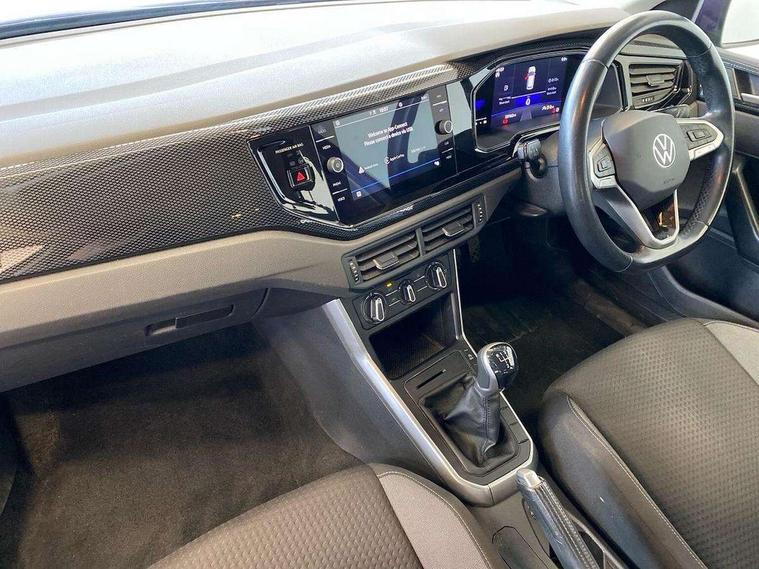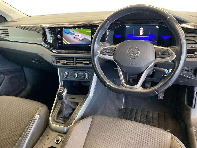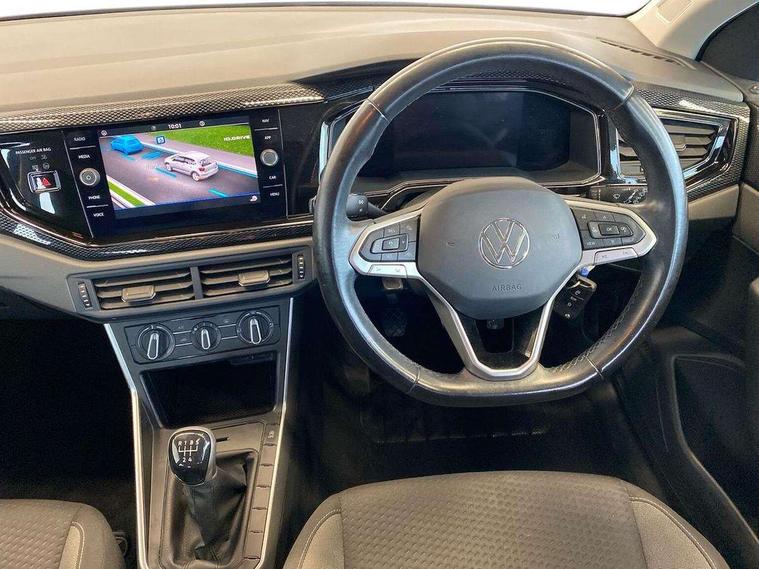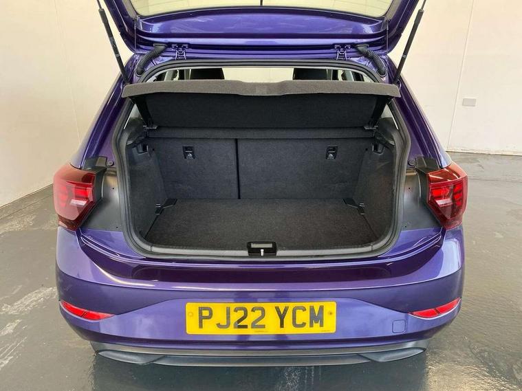 Adaptive cruise control without follow-to-stop and speed limiter, Bluetooth mobile phone interface, Driver alert system, Emergency call service, Front assist system, Power assisted speed sensitive steering, Preparation for We connect and We connect plus, Speedo and rev counter, electronic odometer, trip, service interval display and fuel gauge, Standard rear axle, Travel Assist - Lane keeping system and traffic jam assist, Travel assist including emergency assist, Trip computer, Warning signal and warning light for front and rear seatbelts not fastened, Washer fluid level indicator, Wireless app connect, Front wheel drive, Rear shock absorpion, Start-stop system with battery regeneration (recuperation - energy recovery during braking), DAB Digital radio, Diversity antenna for FM reception, Front and rear 6 speakers, Automatic dimming interior rear view mirror, Body colour bumpers, Body colour door handles, Body colour door mirrors, Electric front windows, Heat insulating darkened glass in side and rear windows, Heat insulating glass windscreen, Power folding adjustable/heated exterior mirrors and front passenger exterior mirror lowering function, Rain sensor, Rear electric windows, Rear fog light, Rear side wing doors, Rear windscreen washer and wiper with interval delay, Third brake light, 12V power socket in centre console, 2 front and 2 rear reading lights, 2 USB-C ports in the front, 2 USB-C charging sockets on the center console in the rear, 3 rear head restraints, 60/40 split folding rear seat and rear seat bench not split, Ceramique headliner, Chrome plated radiator grille inserts, air vent surrounds and light switch surrounds, Door and side trim panel, Driver and front passenger seat height adjustment, Driver/passenger sunvisors with illuminated vanity mirrors, Front centre armrest, Front seat backrest storage pockets, Front standard seats, Handbrake lever handle in leather, Hartley/Thomas cloth upholstery, Isofix child seat preparation easy-fit (for two outer rear seats, and front passenger seat) compatible with I-size, Leather trimmed gear knob, Luggage compartment cover, Luggage compartment floor, Luggage compartment lighting, Multifunction steering wheel, Single front passenger seat, Standard pedal cluster, Light and vision pack - Polo, 3 point height adj front seatbelts + pretensioners, 3x3 point rear seatbelts, ABS, Driver and front passenger airbag with front passenger airbag deactivation, Drivers and front passengers safety optimised head restraints, ESC (Electronic stability control) + EDL (Electronic Differntial lock) and ASR (Traction control), Extended and predictive pedestrian/ cyclist protection, Front curtain and side airbags with center airbag, Front disc brakes, Hill hold control, Manual child lock in rear doors, Rear drum brakes, Single tone horn, Tyre pressure loss indicator, Alarm with interior protection, Anti-theft alarm system with interior monitoring, backup horn, and towing protection, Anti-theft wheel bolts, Electronic engine immobiliser, Lava stone black gloss/matt decorative inserts in dash and front door panels, Low rolling resistance tyres,
