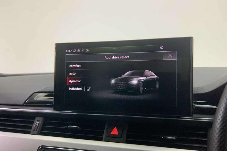 Audi connect safety and service (e-call), Audi connect with Amazon Alexa Integration, Audi drive select (Auto, Comfort, Dynamic and Individual), Audi parking system plus with front and rear sensors, Audi smartphone interface, Audi virtual cockpit - 12.3" full colour digital instrument cluster, vehicle/engine speed, Radio/media information+Driver assistance systems, Automatic start-stop system with coasting functionality and efficiency programme, Bluetooth interface, Electro-mechanical power steering, Email, calendar and text messages displayed via MMI, MMI nav+ with MMI touch - 10.1" high resolution MMI display, touch sensitive, 3D map, route/country info, dynamic route guide, personal route assist, Power operated tailgate, Rear view camera, Service interval indicator, Voice control system, Sports suspension lowered by 23mm, 8 passive loudspeakers, CD player, DAB digital radio reception, Two additional USB ports for rear passenger in rear centre console, Two SDXC card slots, Audi matrix LED headlights with LED rear lights + dynamic front and rear indicators, Auto dimming door mirrors, Auto dimming rear view mirror, Body colour bumpers, Body colour door handles, Body colour front spoiler lip, Body colour side sill trim, Body coloured door mirrors, Electric adjustable heated door mirrors, Electric folding door mirrors, Electric front windows, Front fog lights, Honeycomb structure radiator grille in grained matt black, Kerb-view function for passenger side, LED daytime running lights, LED side indicator lights integrated into door mirrors, LED third brake light, Matt aluminium silver tailpipe trim, Privacy glass, Rain and light sensors, Rear side wing doors, S line badges on front wings, S line front and rear bumpers with side skirts, S Line rear diffuser in matt titanium black with trim strip in matt aluminium silver, Side air inlets in grained matt black with matt aluminium silver inlay, Variable front intermittent wipers, Windscreen with acoustic glazing, 3 seat bench in 2nd row, 4 way electric lumbar support for driver and front passenger, 40/20/40 split folding 3 seater rear bench seat, Adjustable steering column, Black cloth headlining, Black perforated leather gearknob, Contrast stitching on seats, steering wheel and gear lever gaiter, Deluxe 3 zone electronic climate control, Front centre armrest, Front head restraints, Front/rear floor mats, Heated front seats, Illuminated door sill trim with S logo, ISOFIX child seat mounting and top tether, Luggage compartment mat, Manual seat adjustment, Rear centre armrest, Rear headrests, Single front passenger seat, Stainless steel pedals, Sunvisors with vanity mirrors, LED interior light pack - A5/RS5, 3x3 point rear seatbelts, 6 airbags - Driver, front passenger, curtain and side airbags, Electromechanical parking brake, Electronic Stabilisation Control (ESC) including ABS, ASR and EDL, Front passenger airbag deactivation, Height adjustable front seatbelts, Hill hold assist, Manual child lock in rear doors, Multi collision brake assist, Pop-up bonnet for pedestrian protection, Pre sense city, Seatbelt monitoring, Tyre pressure warning, Variable restraint system, Warning triangle and first aid kit, Anti theft alarm system, Anti theft wheel bolts, Immobiliser, Keyless Go, Remote central locking, Matt brushed aluminium inlays, Tool kit, Tyre repair kit,