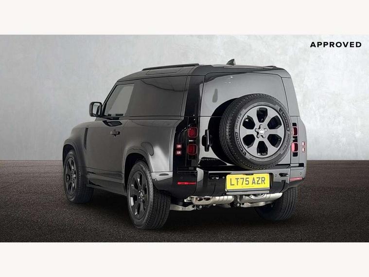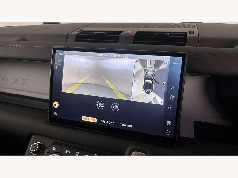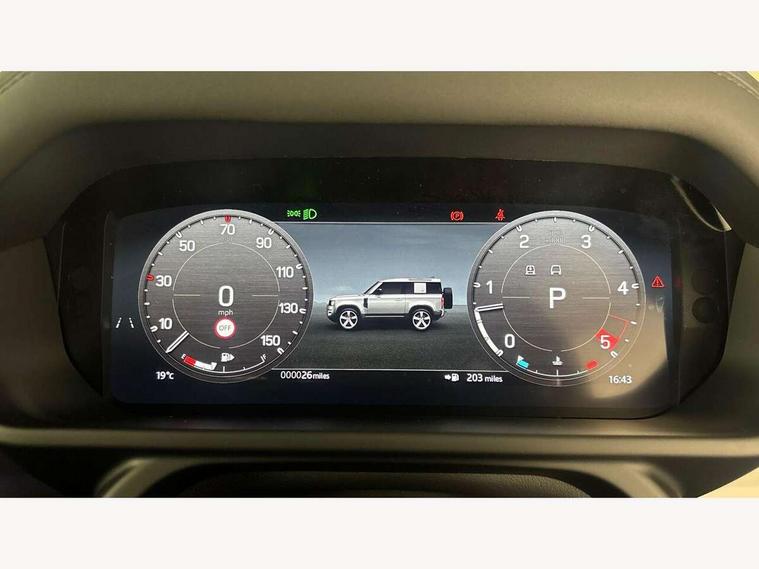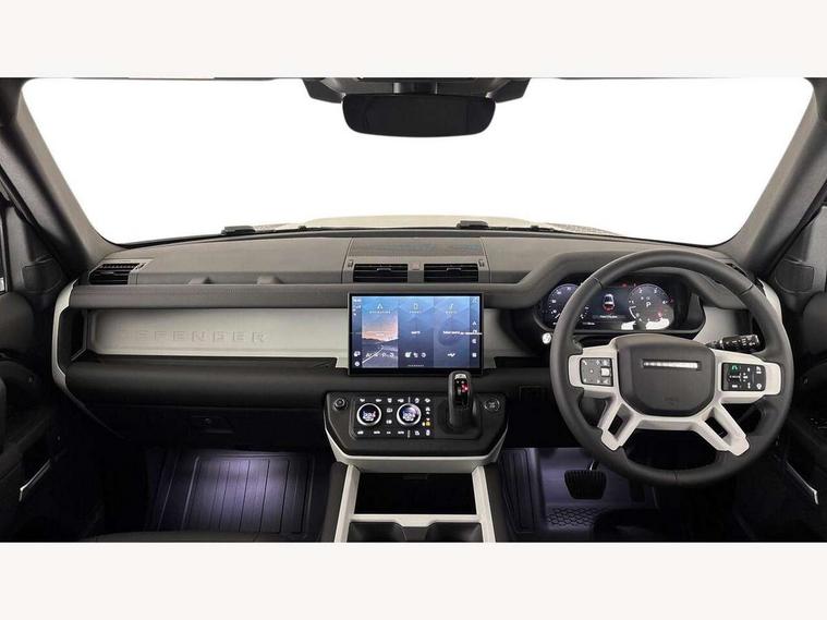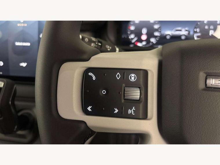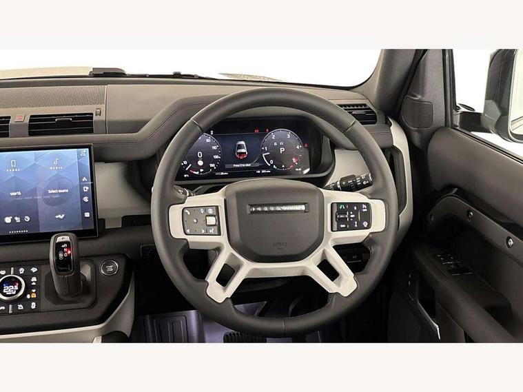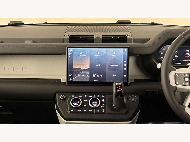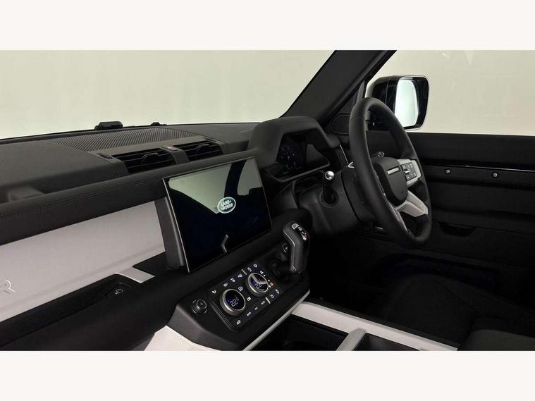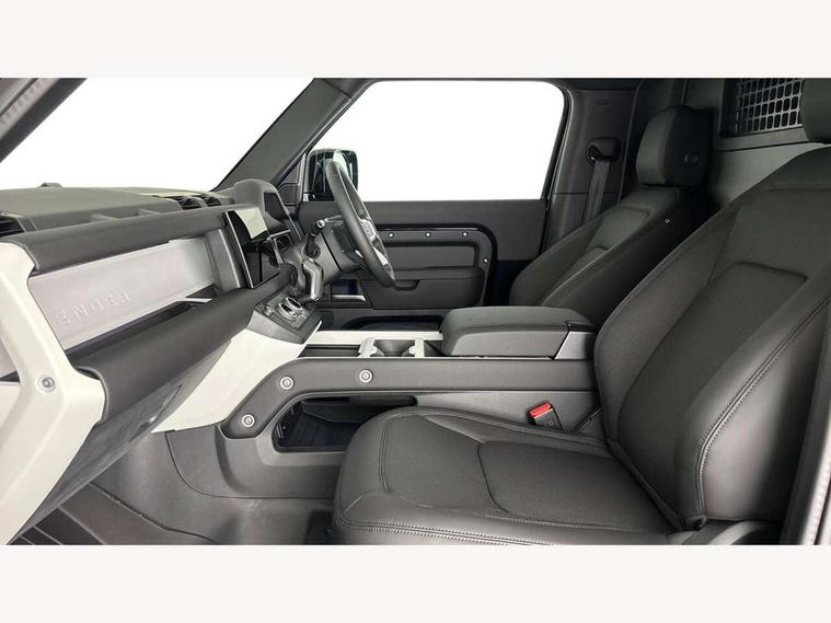Customer Configurable Autolock, 11.4" touchscreen, 360 parking aid, 3D Surround Camera with 360 View, 180 Rear View, Front Traffic Detection, Forward Vehicle Guidance, Tow Hitch Assist and clear sight Ground View, Adaptive cruise control, Blind spot assist, Brake Hold, Driver condition monitor, Electric power assisted steering (EPAS), Interactive Driver display, Lane keep assist, Low traction launch, Pivi pro connected, Rear collision monitor, Rear traffic monitor, Traffic sign recognition adaptive speed limiter, Trip computer, Tyre pressure monitor, Android Auto, Apple CarPlay, DAB Radio (Digital Audio Broadcasting), Meridian 280W sound audio system with 7 speakers with subwoofer, Alpine lights, Assisted tailgate, Auto High Beam Assist, Automatic headlight levelling, Automatic headlights and rain sensitive front wipers, Body coloured bonnet, Body coloured exterior Utility Panel, Centre high mounted stop light, Electric heated/power fold door mirrors with approach lights and auto dimming driver side, Electric windows with one touch open/close and anti-trap, Follow me home lighting, Heated rear window with timer, Heated windscreen, LED tail light, Privacy glass, Puddle lights, Rear fog lights, Rear wash wiper, Side-hinged tailgate, Standard roof, Standard tail door, Standard tread plates, Additional lashing points, Black exposed rear recovery eyes, Configurable cabin lighting, Dual zone climate control, Durable rubber cabin flooring, Footwell lights, Full height bulkhead behind row 1 seats, Glovebox storage, High sided rubber mats, Loadspace cover, Loadspace hooks, Loadspace rubber mat, Overhead stowage for sunglasses, Rear centre headrest, Rear reading light, Standard interior, Standard seating configuration, Sunvisors with illuminated vanity mirrors, Upgraded loadspace LED lighting, Online pack - Defender with data plan, Brake pad wear indicator, Electronic traction control, Emergency braking, Front airbags, with passenger seat occupant detector, Power operated child locks, Remote for (e-Call, Optimised assistance call, InControl app, Climate, beep and flash and door), Seat belt reminder, Intrusion sensor, Keyless entry system, Locking wheel nuts, 8 speed automatic transmission, ABS and EBA, All wheel drive, CBC - (Cornering brake control), Dynamic stability control, Electronic brake force distribution, Electronic park brake, Gradient acceleration control, Hill Descent Control, Hill start assist, Particulate filter (DPF), Push button start, Roll stability control, Trailer stability assist, Twin speed transfer box (high/low range),