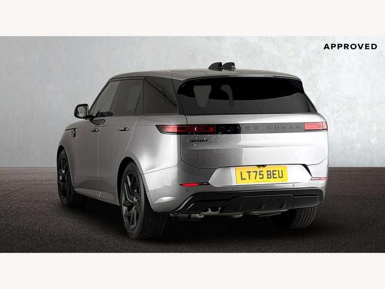 13.1" Touchscreen, 3D 360 degree surround camera with wade sensing, Adaptive cruise control with steering assist, Android Auto, Apple car play, Blind spot assist, Bluetooth connectivity streaming, Driver condition response, Eco mode, Electric power assisted steering (EPAS), Front and rear parking aid, Interactive Driver display instrument cluster, Lane departure warning system, Lane keep assist, Powered single-piece tailgate/boot lid, Push button start, Rear collision monitor, Rear traffic monitor, Remote, Traffic sign recognition with adaptive speed limiter, Trip computer, Wireless device charging, 8 speed automatic transmission, Adaptive dynamics, All terrain progress control, All wheel drive system, Automatic access height, Dynamic air suspension, Open differential with torque vectoring by braking, Single speed transfer box, Terrain Response 2, DAB Radio (Digital Audio Broadcasting), Incontrol protect - SOS emergency call with automatic collision detection, optimised assistance call and Incontrol remote app essential, Meridian sound system, Pivi pro connected, USB/aux input socket, Adaptive brake lights, Auto dimming interior rear view mirror, Automatic headlight levelling, Automatic headlights, Black contrast roof, Centre high mounted stop light, Electric heated/power fold memory door mirrors with approach lights and auto dimming driver side, Electric windows with one touch open/close and anti trap, Fixed panoramic sunroof with electric sunblind, Flush deployable exterior door handles, Follow me home lighting, Front and rear recovery eyes, Headlight power wash, Heated rear window, Heated washer jets, Heated windscreen, Illuminated aluminium treadplates with Range Rover script, LED tail lights, Metal load space scuff plates, No badges, Paint protection wrap in satin finish, Pixel LED headlights with LED signature DRL, Premium metallic paint, Privacy glass, Rain sensing windscreen wipers, Rear animated directional indicators, Rear fog lights, Rear side wing doors, Rear wash/wipe, Remote window closing, Side repeater indicators in mirror, Toughened front and rear side glass, Trailer stability assist, Winter wiper park position, 20 way electric heated memory front seats with heated power recline rear seats, 3 seat bench in 2nd row, 60:40 seats with power recline and loadthrough, Air quality sensor, Auto air recirculation, Bright metal foot pedals, Cabin lighting, Carpet mats, Centre console with armrest, Customer configurable single point entry, Driver's footrest, Easy boot loading, Ebony console door armrests and seatbelts, Electric adjustable steering column, Extended leather upgrade, Front and rear cupholders, Front door storage space, Front head restraints, Front map lights, Front seat back map pockets, Front stowage pocket, Front/rear passenger grab handles, Gearshift paddles, Heated steering wheel, Isofix child seat preparation, Leather steering wheel with moonlight bezel, Loadspace cover, Loadspace Hook, Loadspace light, Loadspace mounting provisions, Lockable glovebox, Luggage tie-downs in loadspace, Multifunction steering wheel, Perforated Windsor leather upholstery, Pollen filter, Power socket, Rear centre armrest, Rear head restraints, Rear ISOFIX, Seat backboard in PVC, Single front passenger seat, Sunvisors with illuminated vanity mirrors, Three 12V accessory power outlets, Two zone climate control, Upper secondary glovebox, Extended black exterior pack - Range Rover Sport Stealth Edition, Online pack with data plan - Range Rover Sport, 3 point seatbelts on all seats, Anti-lock braking system (ABS), Black brake calipers, Brake pre-fill technology, Configurable autolock, Cornering brake control (CBC), DSC - Dynamic Stability Control, EBD - Electronic brakeforce distribution, Electric parking brake, Electronic traction control, Emergency braking, Front seatbelt pretensioners, Front side airbags, Height adjustable front seatbelts, Hill descent control, Hill launch assist, Low traction launch, Occupant protection assist, Passenger seat occupant detector with front airbags, Power operated child locks, Red brake calipers, Roll stability control, Seatbelt warning, TPMS (Tyre pressure monitoring system), Immobiliser, Intrusion sensor, Keyless entry, Locking wheel nuts, Perimetric and volumetric anti theft alarm, Remote locking, Secure tracker pro, Fine brushed aluminium interior trim, Moonlight noble chrome interior finishers, Natural black veneer, 23" Gloss black alloy wheels - Style 5135, All season tyres, Tyre repair system,
