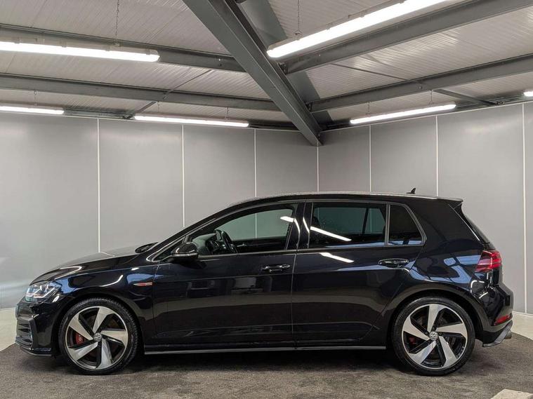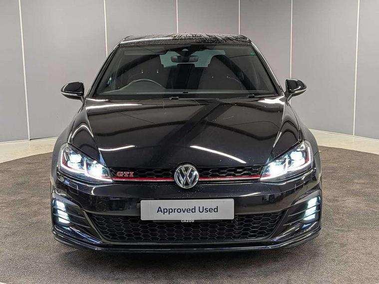 'Lights On' Reminder warning buzzer, ACC - Adaptive cruise control with front assist, forward collision warning, distance monitoring, city emergency brake and speed limiter, Bluetooth telephone and audio connection for compatible devices, Brake pad wear indicator warning light, Driver alert system, Driver profile selection, Driving Mode Selection with four preset modes - Eco, normal, sport or individual modes, Instrument cluster in white, Lane assist with dynamic light assist and traffic sign recognition, Multifunction computer with visual gear change recommendation for fuel consumption, Power assisted speed sensitive electro-mechanical steering, Push tank flap, Rear view camera, Speedo, rev counter, electronic odometer, trip, service interval display, exterior temperature and fuel gauge, Stop/start system, Warning buzzer and light for front seatbelts unfastened, Battery regeneration during braking, Limited slip differential, Lowered sports suspension, XDS electronic differential lock, Composition media system, DAB Digital radio receiver, MP3/WMA compatability, Multi device interface (MDI) with USB connection, Premium USB cable in choice of either Apple or Android smartphone compatibility, SD card slot, SMS Functionality, USB and SD card connectivity, Volkswagen media control, 3D-LED tinted rear light clusters with indicator sweep function, Black rear diffuser, Body colour door handles, Body colour door mirrors with integrated indicators, Body colour rear roof spoiler, Body colour sports bumpers, Dusk sensor + automatic driving lights, Electric front windows, Electric rear windows, Electrically adjustable and heated door mirrors, Fully galvanised body, GTI logo in red on front and back, GTI logo lettering on front wings on right and left, Heated rear windscreen, High level 3rd brake light incorporating LED Technology, Honeycomb radiator grille - black, LED daytime running lights, LED front fog lights with static cornering light function, Rear fog lamp, Rear window aerial, Rear window wash/wipe with intermittent wipe, Reflectors in all doors, Shiny black aerofoil downside, Sill extensions, Twin exhaust tailpipe, Windscreen wipers/ intermittent wipe + 4 position delay, 12V socket in luggage compartment, 3 rear headrests, 4 load lashing points in luggage compartment, 60/40 split folding rear seat backrest, Bag hook in luggage compartment x 2, Black headlining, Climate control - 2 zone electronic air conditioning with automatic air recirculation and allergy filter, Cooled glovebox, Dust/pollen filter, Front + rear carpet mats, Front centre armrest with storage compartment and two rear air vents, Front seat back storage pockets, Grab handles front x 2, rear x 2 with integrated coat hooks, Height and reach adjustable steering wheel, Illuminated door sills, Illuminated vanity mirrors, Instrument lighting white adjustable panel illumination, Interior light delay, Isofix preparation for 2 rear child seats, Leather gear knob and handbrake grip, Load through provision with rear centre armrest and cupholders x2, Luggage compartment lighting, Multifunction leather steering wheel with GTI logo and selector lever boot grip with red stitching, Overhead storage box, Stainless steel pedals, Storage box in luggage compartment, Storage compartment in roof console with cover, Storage compartments in front doors, Storage compartments in rear doors, Stowable luggage compartment cover, Sun visors, Variable boot floor, height adjustable and removable, Ambient lighting pack - Golf, Convenience Pack - Golf, Light and Sight pack - Golf, Mirror pack - Golf, 3 rear three point seatbelts, Airbags - Driver's and front passenger's, curtain airbag, Driver's knee, front side impact and passenger's airbag deactivation switch, Anti-lock Braking System (ABS) with Hydraulic Brake Assist (HBA), Automatic post collision braking system, Child locks on rear doors, Driver/Passenger optimised head restraints, Electronic parking brake with auto hold, Electronic stability control (ESC) including Electronic differential lock (EDL) and ASR (Traction control) with deactivation via infotainment system, Front ventilated disc brakes and rear disc brakes, Pre crash preventive occupant protection, Red brake calipers, Three point height adjustable front seatbelts with tensioners, Tyre pressure loss indicator, Alarm with interior protection and deactivation via infotainment system, Electronic engine immobiliser, Keyless entry with start/stop button on centre console, Remote central locking with 2 remote folding keys, Chrome plated air vent surround, Chrome plated electric mirror adjustment light switch surround, Honeycomb black decorative inserts, Piano black centre console, Steel space saver spare wheel,