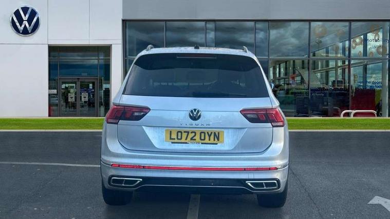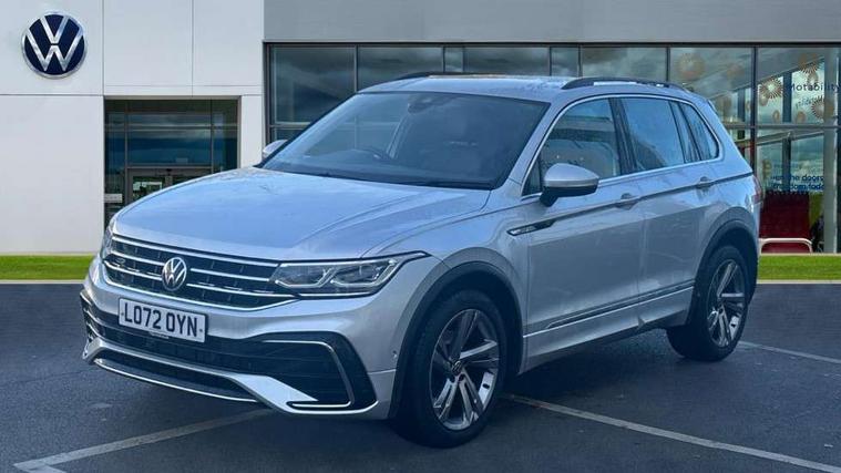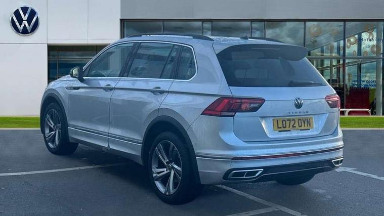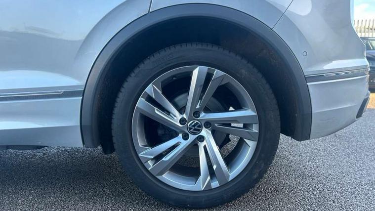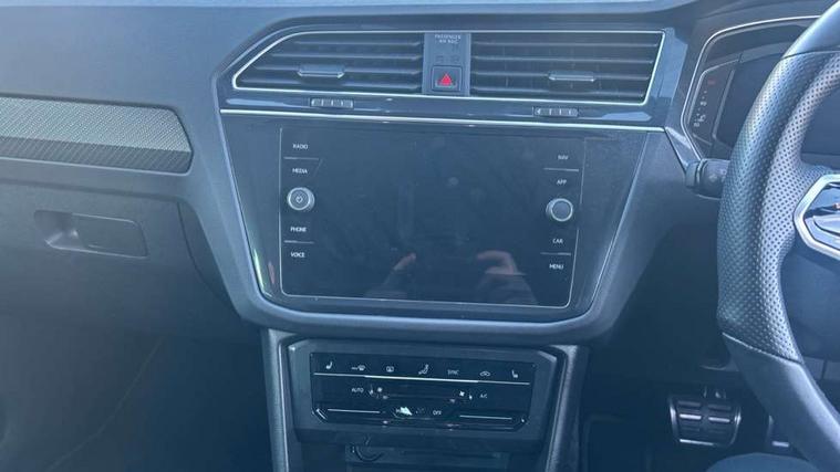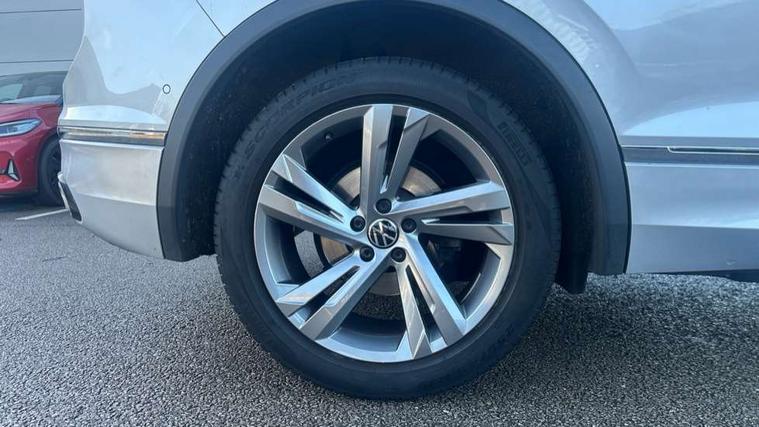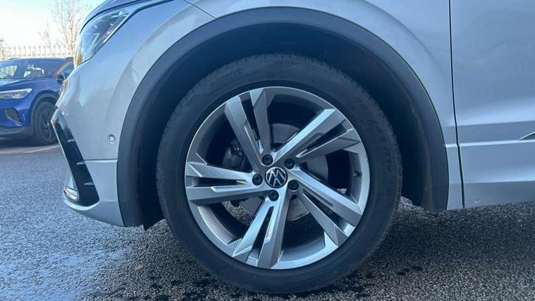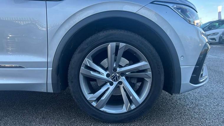 Adaptive cruise control ACC stop and go including speed limiter, App-Connect incl. App-Connect Wireless for Apple CarPlay and Android Auto, Bluetooth phone integration system, Comfort drive travel assist, Digital cockpit pro, Driver alert system, Driver profile selection, Dynamic road sign display, eCall emergency call system, Electromechanical speed sensitive power steering, Emergency assist, Front and rear parking distance sensors, Instrument cluster mph speedometer Great Britain, Lane keeping system Lane Assist, Lights on warning, Multifunction front facing camera, Outside temperature display, Premium multifunction display with multi colour display, Preparation for subsequent activation Navigation feature Discover Media includes Streaming and Internet, Remote control boot opening, Rev counter, Service interval indicator, Speed limit display, Start/stop system with regenerative braking, Tailgate/trunk lid unlocking from outside, Trip computer, Warning sound and light for doors and tailgate open, Battery regeneration during braking, Sports suspension, 8 Speakers, Digital radio reception DAB+, Diversity antenna for FM reception, Radio, Auto dimming interior rear view mirror, Automatic headlight control system, Body colored bumpers in R-Line style, Body colored exterior mirror housings, Body colour door handles, Chrome moldings on the side windows, Coming/leaving home lighting function, Dynamic headlight range control, Front and rear electric windows, Heated rear window, High level 3rd brake light, Laminated safety glass windshield, heat and sound insulating, LED headlamps with LED separate daytime running light and dynamic cornering light, LED rear combination lamps, LED rear number plate lights, License plate carrier in front and rear, Poor weather light and cornering light, Power adjustable, folding and heated door mirrors with surround lighting, front passenger exterior mirror lowering function, Privacy glass for rear side windows and rear window, R Line body kit, R Line side sills, Rain sensor, Rear exhaust tailpipe, Rear fog lamp, Rear side wing doors, Rear spoiler in R style, Rear windscreen washer and wiper with interval delay, Side and rear windows in heat insulating glass, Trailer Stability Programme, Unique R Line badging, Windscreen wipers/ intermittent wipe + 4 position delay, 12V outlet in center console rear and in luggage compartment, 12V outlet in front and tray, 2 LED front reading lights, 2 LED rear reading lights, 3 bench rear seats in 2nd row, 3 rear headrests, Air Care Climatronic 3 zone automatic climate control with enhanced air filter and controls in the rear, Art Velours greyson sports cloth upholstery, Backrest release for left front seat, Black headlining, Brushed stainless steel pedals and footrest, Carpet mats in front and rear with decorative stitching in Gray, Climate control unit rear with touch function, Door and side trim panel in foam film, insert in leatherette, Driver + front passenger lumbar support, Front footwell illumination, Front scuff plates in aluminum with R-Line logo, Front seats head restraints (x-adjustment), Height adjustable front seats, Height/reach adjust steering wheel, Isofix Preparation 2 Rear child seats, Leather gear knob, Rear bench seat asymetrically split folding, longitudinally movable and folding with load-through hatch and center armrest, Remote unlocking for rear seat backrest, Single front passenger seat, Sun visors with illuminated vanity mirrors, Top front comfort seats, Winter pack - Tiguan, 3 point seat belt for centre rear seats, 3 point seat belts with seat belt pretensioners for the outer rear seats, Curtain airbags for front and rear passengers, Driver/Front Passenger airbags, Drivers knee airbag, Electronic parking brake with auto hold, Electronic Stability Control with driver steering recommendation, ABS, ASR, EDL, EDTC and trailer stabilization, Front assist with autonomous emergency braking (for Adaptive Cruise Control ACC up to 130 mph), Front disc brakes, Front passenger airbag deactivation, Front side airbags, Height adjustable front 3 point seatbelts + pretensioners, Manual child proof rear door locks, Pedestrian monitoring system, Proactive passenger protection system in combination with front assist, Rear disc brakes, Two tone horn, Tyre pressure loss indicator, Warning sound and light for front seat belts if unfastened, Warning triangle, Anti theft alarm system with interior monitoring, backup horn and towing protection, Anti theft wheel bolts, Electronic engine immobiliser, Keyless locking and starting system keyless access with safelock, Chrome elements on the mirror switch power window switches and door pulls, Decorative inserts Carbon Gray for dashboard and front door trim panels, Interior door handle in matte chrome, 19" Valencia alloy wheels with AirStop tyres, Tool kit, Tyre mobility kit Includes 12V compressor and tyre sealant,
