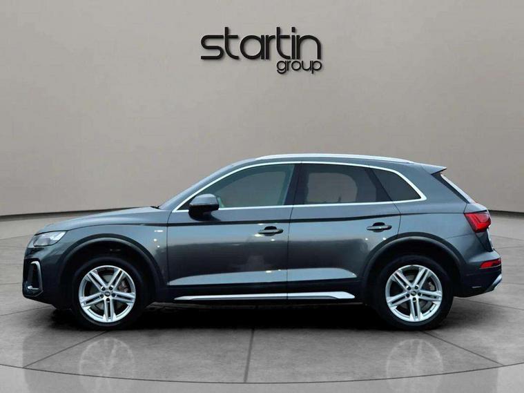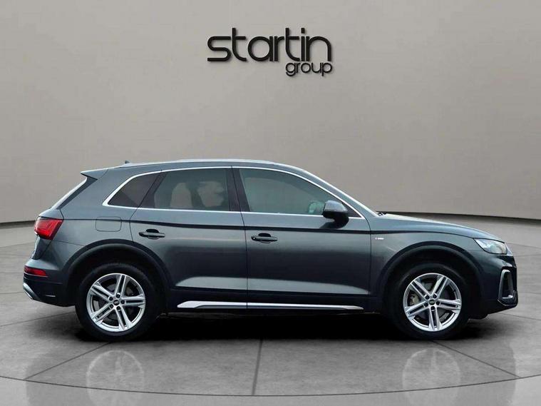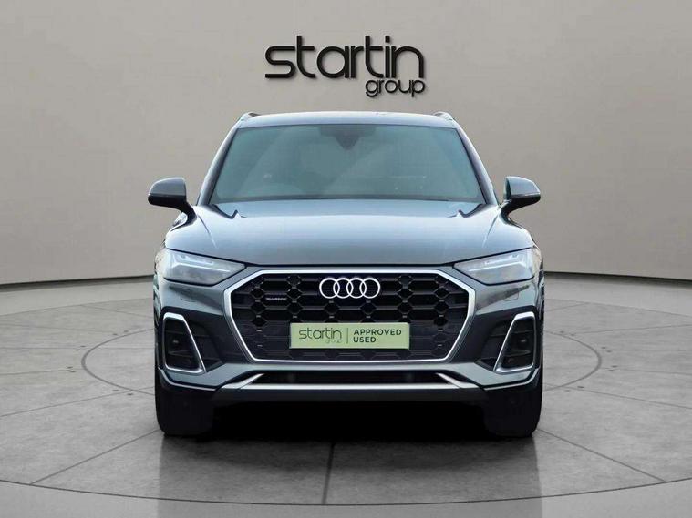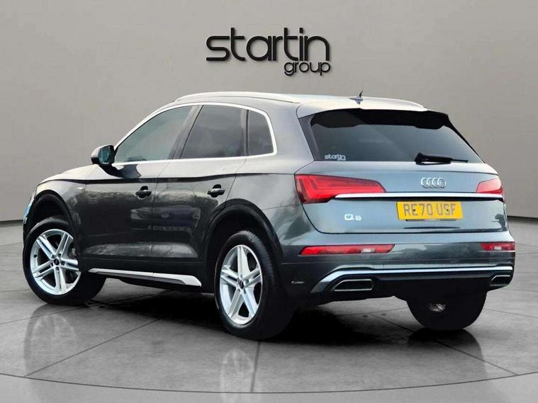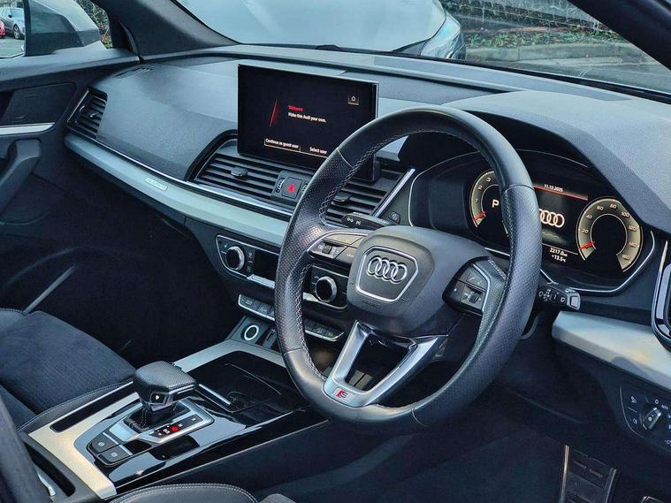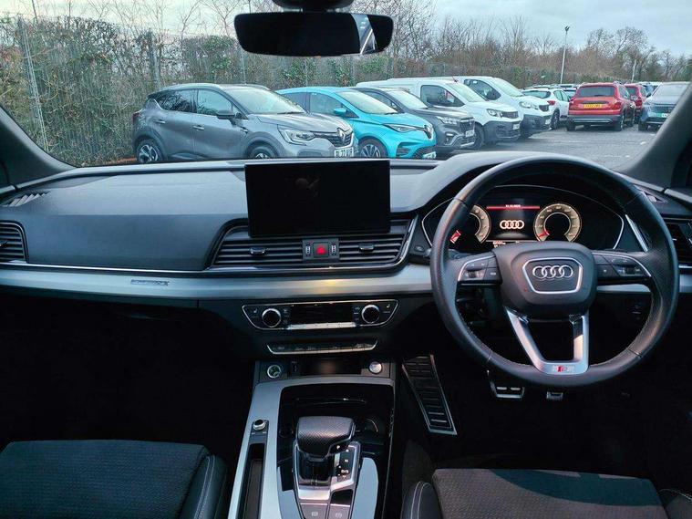 Amazon alexa Integration, Audi connect safety and service (e-call), Audi drive select, Audi virtual cockpit plus with 12.3" screen and three different layout designs, Audi wireless smartphone interface, Automatic start-stop system with coasting functionality and efficiency programme, Electro - mechanical power assisted steering, MMI navigation plus with 10.1" touch screen, Mobile telephone preparation - bluetooth interface, Power tailgate, Service interval indicator, Voice control system with Audi hotword activation "Hey Audi", Quattro on demand, 2 x USB charging port with aux input socket, DAB Digital radio, Acoustic windscreen, Air inlets in matt titanium black with blades in matt aluminium silver, Aluminium roof rails, Audi matrix LED headlights with LED rear lights + dynamic front and rear indicators, Auto dimming rear view mirror, Automatic headlight adjustment, Automatic headlights and windscreen wipers, Body colour bumpers, Body colour door mirrors, Body colour rear diffuser with matt aluminium silver surrounds, Body colour underbody protection, Chrome plated exhaust trims, Door sills in Selenite silver, Electric adjustable/heated/folding door mirrors, Front air inlet surrounds in aluminium, Front and rear electric windows, Front radiator grille in honeycomb design, Headlight washers, Rear chrome trim strip below lights, Rear privacy glass and rear side windows, Rear spoiler, Rear wiper, Roof bars, S Line badges on the front wings, S Line front and rear bumpers, S Line side skirts, 3 rear headrests, 40:20:40 split folding rear seat with rear centre armrest, Black cloth headlining, Contrast stitching on seats, steering wheel and gear lever gaiter, Deluxe 3 zone electronic climate control, Front centre armrest, Front sport seats with S embossed logo, Front/rear floor mats, Gear lever in black leather, Heated front seats, Height adjustable front head restraints, Height/reach adjustable steering column, Illuminated door sill trims with S logo, ISOFIX child seat mounting and top tether, Manual seat adjustment with 4-way electric lumbar support, Removable luggage compartment floor, Stainless steel pedals, Sunvisors with vanity mirrors, Trunk roller cover, High gloss pack - Q5, LED interior light pack - Q5, 3 point seatbelts on all seats, 6 airbags - Driver, front passenger, curtain and side airbags, Electrically operated child locks on rear doors, Electromechanical parking brake, Electronic stabilisation control including ABS, ASR and EDL, Front passenger airbag deactivation, Hill descent control, Hill hold assist, Multi collision brake assist, Pop-up bonnet for pedestrian protection, Pre sense city, Seat belt force limiter, Seatbelt monitoring, Tyre pressure warning, Warning triangle and first aid kit, Anti theft alarm, Anti-theft wheel bolts, Keyless Go access/ignition system, Matt brushed aluminium inlays, Tool kit,