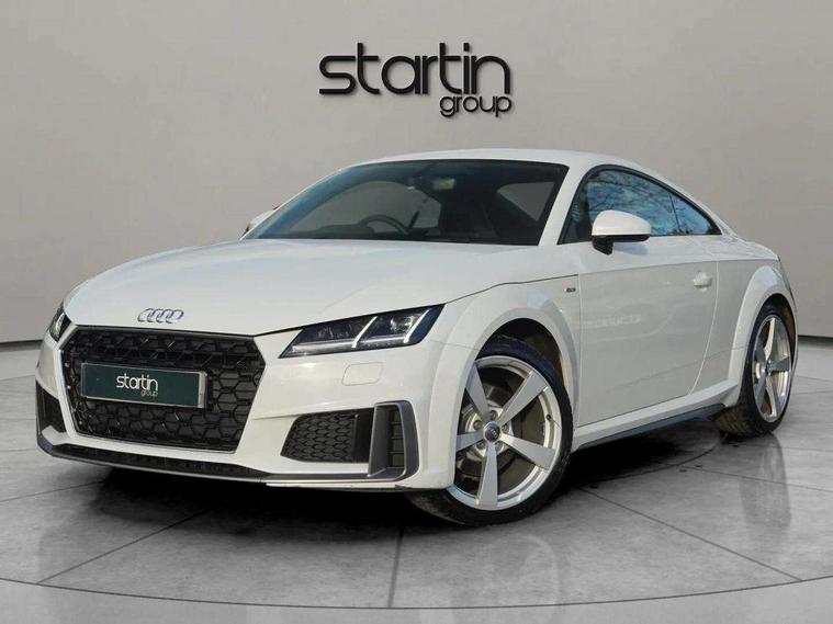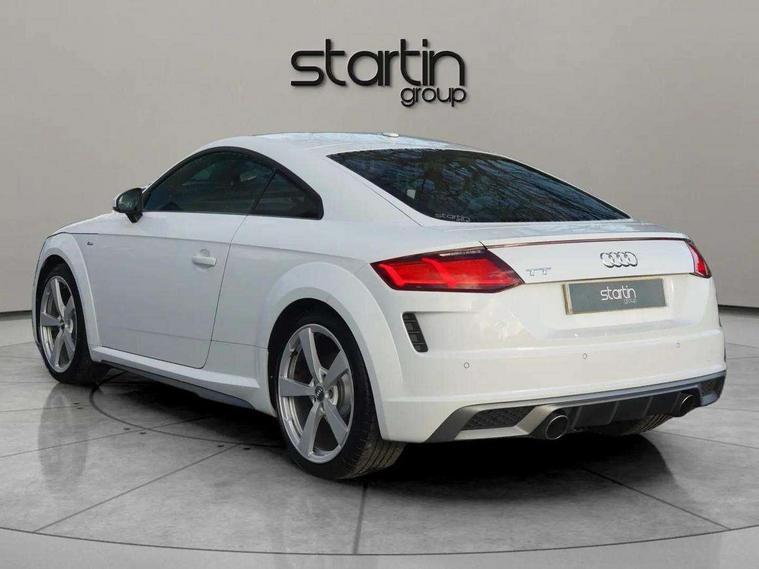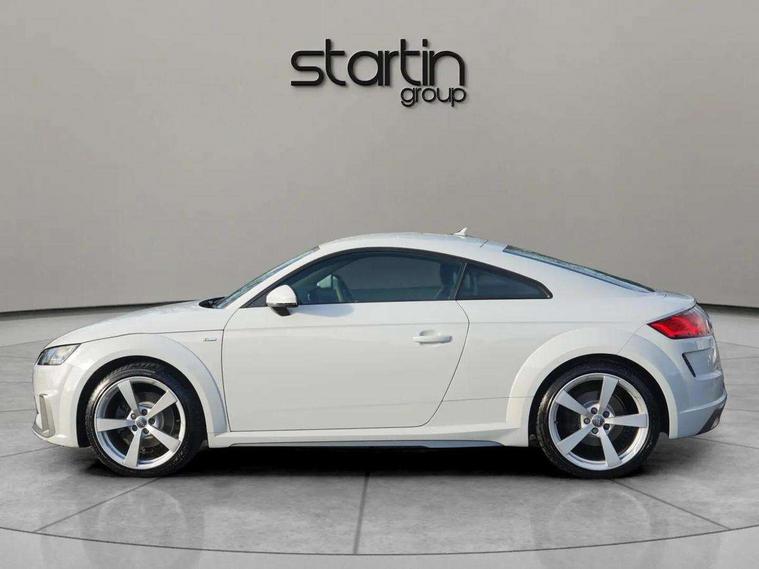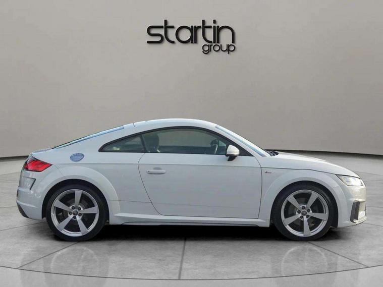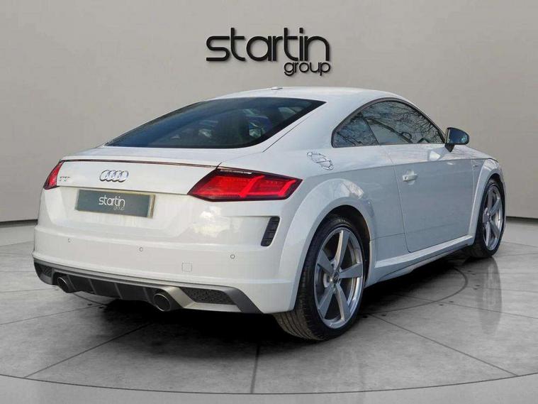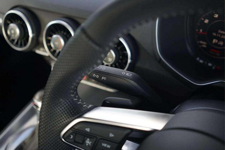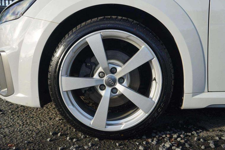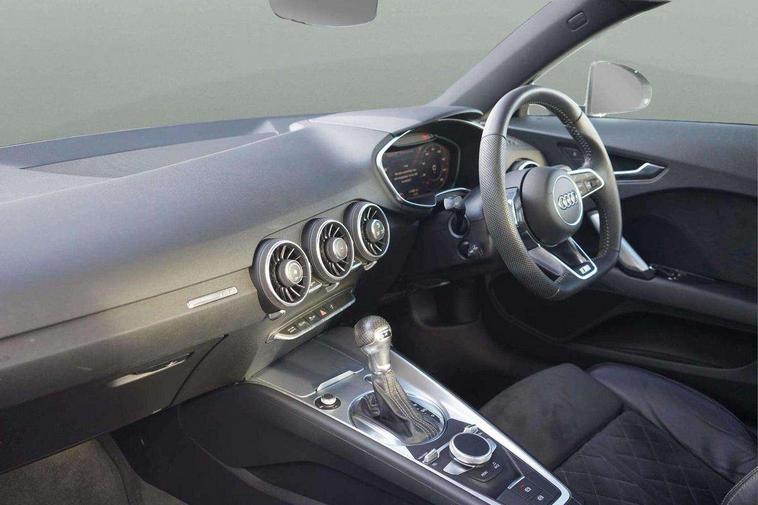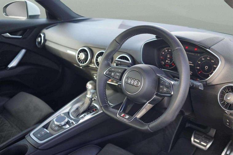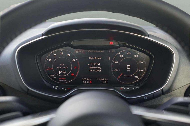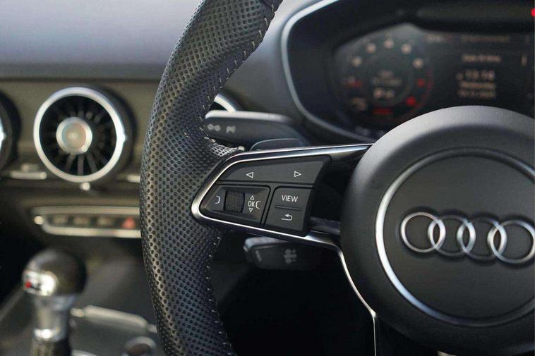 Audi drive select with 4 Pre configured modes, Audi virtual cockpit - 12.3" high-resolution LCD display with fully customisable instrument cluster, Cruise control + speed limiter, MMI touch panel, Mobile phone preparation with bluetooth interface, Progressive power assisted steering, Service interval indicator, Start/Stop system with energy recuperation, TP memo, S line sports suspension, AM/FM radio, Audi music interface, Bluetooth audio streaming, DAB Digital radio, MMI Radio with CD player and SD/XC card slot, Auto dimming rear view mirror, Auto headlight range control, Body colour bumpers, Body colour electrically adjustable and heated door mirrors with built in LED side indicators, Dynamic rear indicators, Electric folding door mirrors, Electric front windows, Front fog lights, Green tinted heat insulating glass, Headlight wash system, High gloss black radiator grille, LED daytime running lights, LED headlights with LED rear lights + dynamic rear indicators, Light and rain sensors, Retractable rear boot spoiler, S line badges on front wings, S Line body styling, S Line front and rear bumpers, S line rear diffuser with platinum grey insert, S line sill plates, Sunband for windscreen, 12V socket, 3 spoke flat bottomed high multi-function leather sport steering wheel with gearshift paddles, 4 way electric lumbar support for driver and front passenger, Air conditioning, Black headlining, Door sill trims with S line logo, Extended aluminium look with stainless steel pedals, Front centre armrest, Front super sports seats, Heated front seats, Height adjustable driver's seat, Height adjustable front head restraints, Height/reach adjust steering wheel, ISOFIX child seat mounting for front passenger seat with airbag deactivation, Perforated leather gearknob, Rear head restraints, Rear top tether child seat ISOFIX attachment, S Line badge on steering wheel, Split folding rear seat, Top tether anchor plate for isofix child seat, Non smoking pack - TT/TT RS, 3 point front seat belts, ABS, ASR traction control, Brake energy regeneration, Curtain airbags, Driver and front passenger airbag with front passenger airbag deactivation, EDL traction control, Electromechanical parking brake, ESP, First aid kit, Front side airbags, Head airbags, Hill hold assist, Seatbelt warning, Tyre pressure warning, Warning triangle, Anti theft alarm, Anti theft wheel bolts, Immobiliser, Keyless Go, Remote central locking, Matt brushed aluminium inlays, Tool kit, Tyre repair kit,