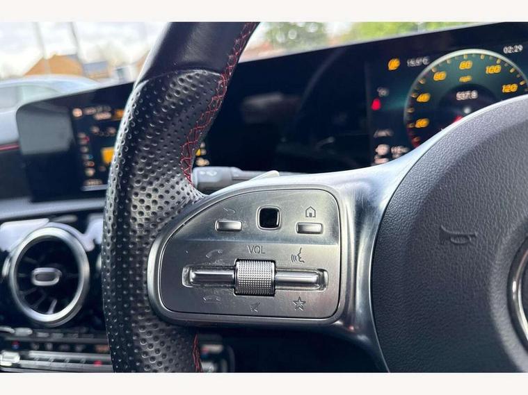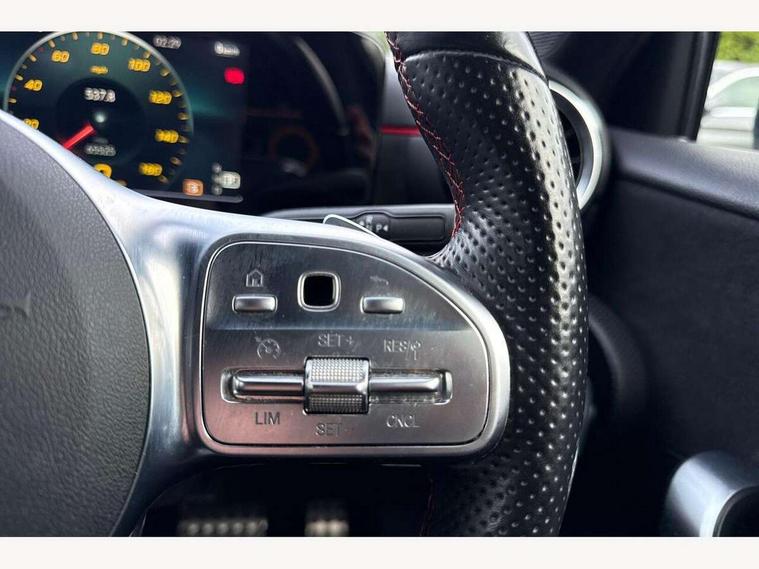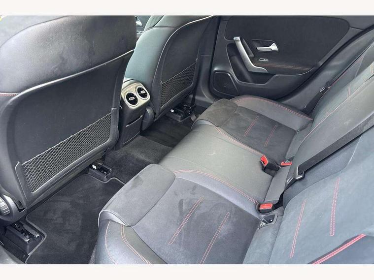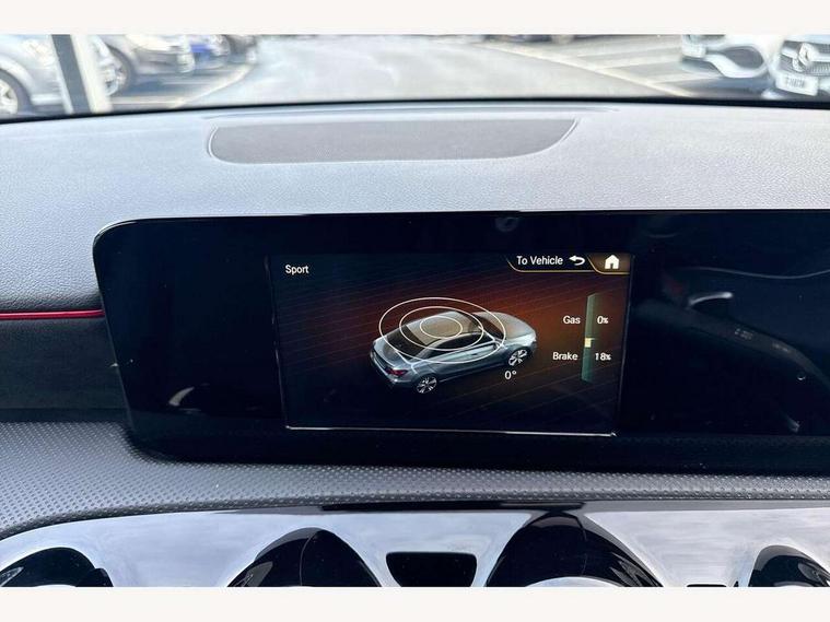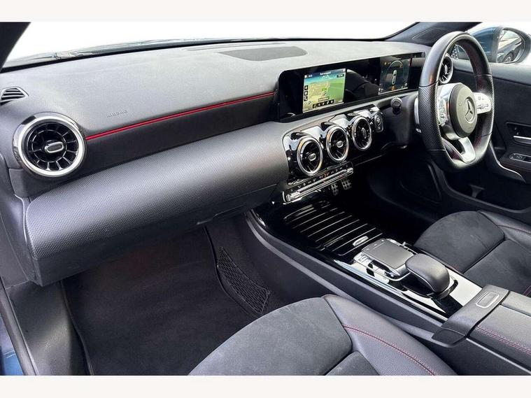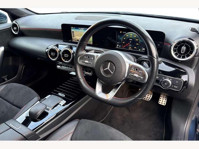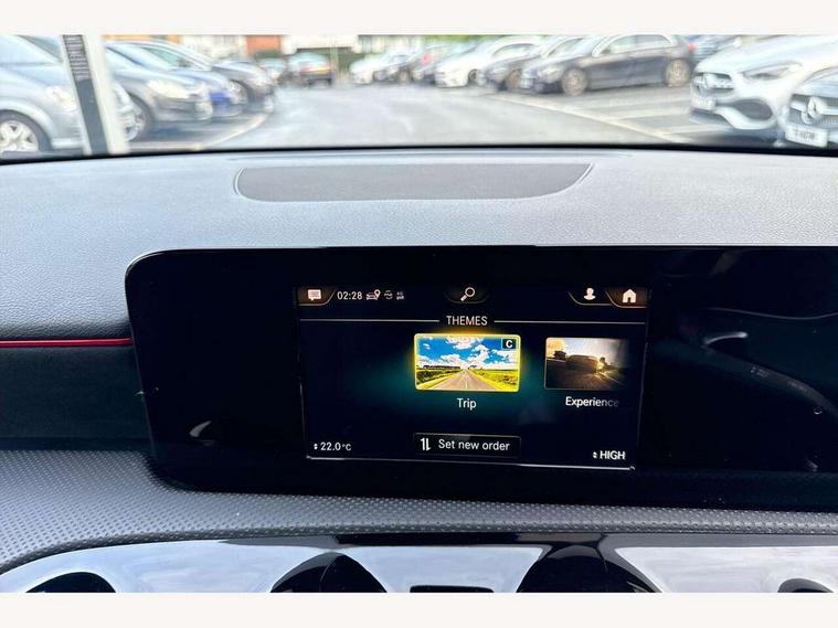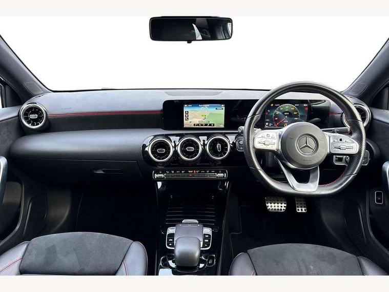 180 degree rear view camera with parking guidelines, 7" colour screen in instrument panel, 7" touchscreen media display, Active lane keep assist, Attention assist, Brake pad wear indicator warning light, Cruise control + speed limiter, Direct steering, Dual bluetooth interfaces, DYNAMIC SELECT with a choice of driving modes (ECO, Comfort, Sport and Individual), ECO start/stop function, Fluid level warning indicator for fuel, oil, coolant and washer fluid, Hard-disk navigation, Hey Mercedes Voice activation, Lamp failure indicator, Mercedes me connect including emergency call system, accident recovery, breakdown and maintenance management, Outside temperature gauge, Owners manual in English, Service indicator (ASSYST), Trip computer, Lowered comfort suspension, 2 USB ports (type C) in rear stowage compartment and one in front of center console, DAB Digital radio, MBUX multimedia system with DAB digital radio and touchpad including satellite navigation, Mercedes-Benz sound system - 100W, 4 Electric Front and Rear windows, Adaptive brake lights, AMG bodystyling - Front apron with splitter in chrome, rear apron with chrome trim and chrome visible trim elements in tailpipe, Body colour bumpers, Body colour door handles, Body colour side skirt, Body coloured door mirrors, Chrome beltline trim, Diamond radiator grille with chrome pins and silver louvre + chrome insert, Electric adjustable and heated door mirrors with integrated LED side indicators, Exhaust system - Twin visible tailpipes in polished stainless steel, Headlamp assist automatic headlamp activation, Heated glass rear windscreen + timer control, LED high performance headlamps with integrated LED daytime running lights, LED tail lamp, LED third brake light, Privacy glass, Rain sensing windscreen wipers with two sensitivity settings, Rear fog lights, Window line trim strip in chrome, 3 Spoke flat bottom leather multi function steering wheel with perforated leather in grip area, 40:20:40 split folding rear seats, Artico man-made leather/Microfibre Dinamica upholstery with red contrast stitching, Auto Mercedes-Benz child seat recognition sensor, Black air vents with surround in silver chrome, Black roof lining, Brushed stainless steel sports pedals with rubber studs, Controller on centre console with chrome surround, Floor mats with stitched edging and AMG lettering, Front centre armrest with storage compartment, Front door sills with Mercedes Benz lettering, Front seat backs luggage nets, Front seat cushion length adjustment, Front sports seats with adjustable head restraints, Gearshift paddles on steering wheel, Height/reach adjustable steering column, Manual height adjustable front seats, Rear head restraints, Seat occupancy sensor for front passenger seat, Spectacles compartment for driver, Stowage compartment in centre console with retractable cover, Sunvisors with illuminated vanity mirrors, Touchpad on center console, Twin front cupholders, Two zone thermotronic luxury automatic climate control, Light and sight pack - A Class, Seat comfort pack - A Class, 3 rear 3 point seatbelts, ABS with Brake Assist, Active bonnet, Active brake assist includes forward collision warning system with autonomous braking, Adaptive brake assist with hold function and hill start assist, Black seatbelts, Childproof locks manually operated for rear doors and electrically operated for rear power windows, Crash responsive emergency lighting, Driver and passenger head and side airbags, Drivers knee airbag, Dual stage driver/passenger airbags, Electronic parking brake, ESP curve dynamic assist, ESP with ASR, Front and rear seatbelt reminder, Front brake callipers with Mercedes Benz lettering, ISOFIX and top tether child seat fixing points in two outer rear seats, Tyre pressure monitoring system, Warning triangle and first aid kit, Window airbags, Alarm system/interior protection/immobiliser, Keyless Go, Remote central locking and crash sensor with emergency opening function, 18" AMG 5 twin spoke light alloy wheels in titanium grey with highsheen finish, Summer tyres, Tirefit sealant kit,