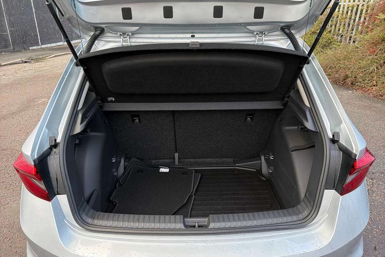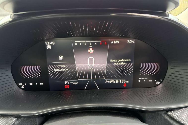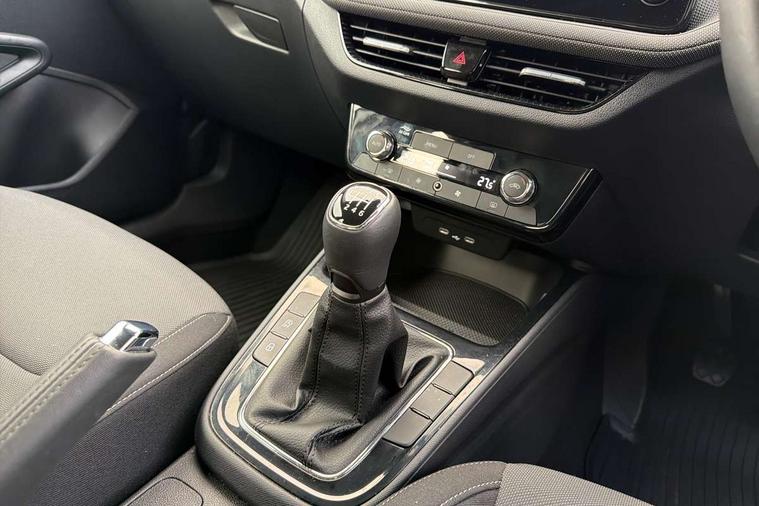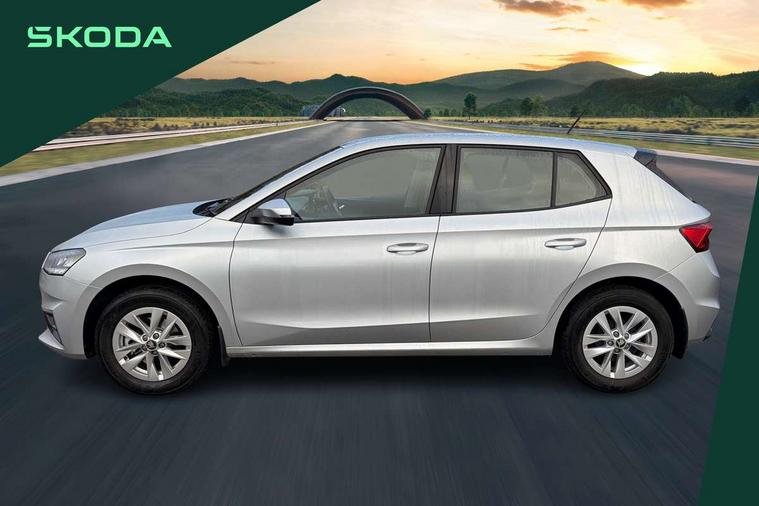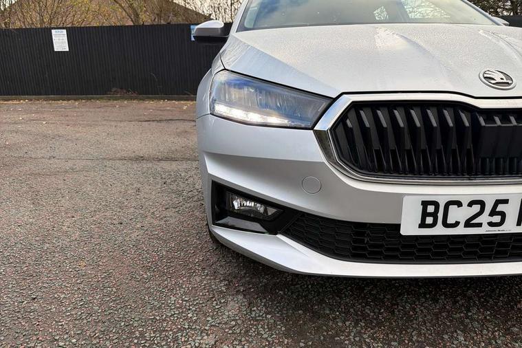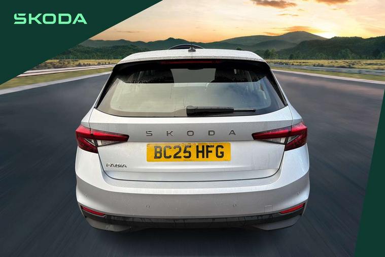 8" Digital instrument display, Advanced driver attention and drowsiness monitor, Bluetooth connection, Driver alert system, Electromechanical power steering, Exterior temperature gauge, Service interval indicator, Traffic sign recognition, Wireless SmartLink for Apple CarPlay and Android Auto, 6 Speakers (4 in front and 2 in rear), 8.25" Skoda infotainment touchscreen display, Auxiliary socket for external MP3 player, DAB digital radio reception, Auto dimming rear view mirror, Body colour door mirrors, Body coloured bumpers, Door mirror integrated indicators, Front and rear electric windows, Front window wiper intermittent control, Headlight range control - Automatic, Ice scraper in fuel cap, LED 3rd brake light, LED daytime running lights with coming and leaving home feature, LED rear lights, Rear LED fog light, Rear side wing doors, Rear window wiper with washing nozzles, Roof mounted spoiler, SKODA tailgate lettering in chrome, Unique dark chrome design logo on alloy wheels, 2 reading lights in front and 2 reading lights in rear, 3 rear headrests, Backrest split and folding, Central console with removable cup holder and storage box, Chrome handbrake release button, Dual zone air conditioning with climatronic electronic control, Fabric upholstery, Front centre armrest, Gearshift knob/handle in leather, Grain satin black interior door handles, Hand brake lever handle in leather, Height adjustable front headrests, Height adjustable front seats, Height adjustable steering wheel, ISOFIX and TopTether anchorage points to the outer rear seats, ISOFIX and TopTether on the front passenger seat, Luggage compartment lighting, Manually adjustable lumbar support in front seats, Pollen filter, Rear seat bench unsplit, Single front passenger seat, Skoda lettering on steering wheel, Storm grey headlining, Sun visors with mirror and airbag label on passenger side, Textile floor mats, Ticket holder, Umbrella in drivers door, Ambient lighting pack - Fabia Hatchback, 3-point height adjustable front seats belts with pretensioner and force limiter, Automatic warning lights in case of crash, Driver and passengers airbag with switch off function, e-Call+, ESC including ABS, MSR, ASR, EDS, HBA and XDS, Front and rear seat belt warning, FRONT ASSIST (AEB City and AEB Inter Urban), Front side airbags, Head airbags, One tone horn, Pedestrian protection, Three rear 3-points safety seat belts with pretensioner and force limiter including stop function for outer rear seat belts, Tyre pressure monitoring system, Anti-theft alarm system including immobiliser, interior monitoring, backup horn, and towing protection, Central locking with radio remote control, interior controls, SAFE function and 2 foldable keys, Black painted air vents, Grain satin black central console cover, Metallic grey upper decorative trim, Satin black door and side trim panel in front, Textile Kota grey lower decorative inserts, Anti-theft wheel bolts protection, Super-low rolling resistance tyres,
