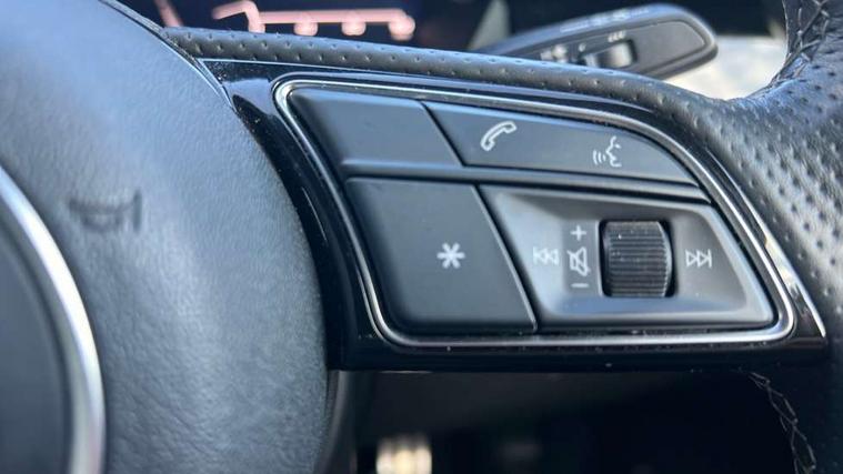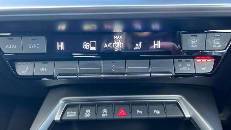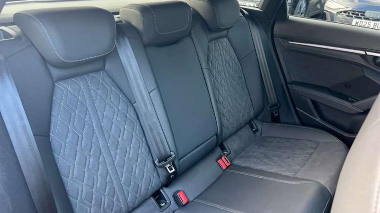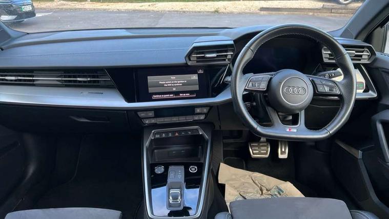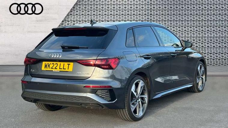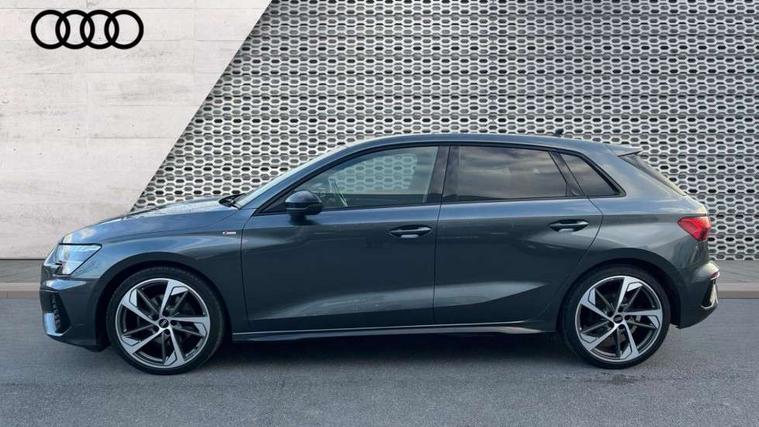 Audi connect emergency call and service, Audi drive select (Auto, Comfort, Dynamic, Efficiency and Individual), Audi smartphone interface, Audi virtual cockpit plus - 12.3" full HD resolution dynamic digital instrument cluster, Automatic start/stop system with recuperation, Bluetooth interface, Collision avoidance assistant, Electromechanical power speed sensitive steering, Lane departure warning system, MMI Navigation Plus with high resolution 10.1" colour touch screen display, Service indicator, Trip computer, Voice control system with natural language interaction, Sports suspension, 2xUSB-C connection with data and charging functions, 6 passive loudspeakers, DAB Digital radio, 3rd brake light, Acoustic glass windscreen, Audi matrix LED headlights with LED rear lights + dynamic front and rear indicators, Auto dimming frameless rear view mirror, Body colour front spoiler blade, Electrically adj heated/folding + automatically dimming exterior mirrors + automatic kerb side function for passenger side exterior mirror, Front electric windows, Headlight washers, Illuminated aluminium inserts front door sills with S logo, Integrated LED indicators in door mirrors, LED daytime running lights, Light and rain sensors, Privacy glass - dark tinted rear window, rear door and side windows, Rear diffuser in grained matt black, Rear electric windows, Rear side air outlets in grained matt black, Rear wiper, S roof spoiler, 12V socket and storage compartment in front centre console, 4 way electrically adjustable lumbar support for driver and front passenger, 40/20/40 split folding rear seat bench with cupholder, Black cloth headlining, Dual zone electronic climate control, Electrically adjustable front seats for driver's side, Front and rear centre armrest in leather, Front and rear headrests, Front/rear floor mats, Heated front seats, Height and reach adjustable steering wheel, Interior lighting - glove compartment light and right hand side, Luggage compartment floor covering, Seat side bolsters, Stainless steel pedals and front footrest in black, Aluminium interior elements pack - A3 Sportback, Black styling pack - A3 Sportback, Dinamica microfibre/mono.pur 550 artificial leather pack - A3 Sportback, Extended ambient lighting pack - A3 Sportback, LED interior lighting pack - A3 Sportback Edition 1/Vorsprung, 3x3 point rear seat belts, Driver and front passenger airbag with passenger airbag deactivation, Electronic Stabilisation Control (ESC) including ABS, ASR and EDL, First aid kit with warning triangle and 2 safety vests, Front side airbags with head airbags and interaction airbag, Hill hold assist, Pre-sense front with pedestrian and cyclist detection, Seatbelt monitoring, Tyre pressure loss indicator, Anti theft alarm, Anti-theft wheel bolts, Electronically operated child lock, Immobiliser, Remote control central locking, Accent surfaces in the dashboard and centre console in platinum grey silk effect paint finish, Dark spectrum aluminium inlays, 19" 5 arm trapezoid design alloy wheels in titanium matt grey with diamond cut finish,