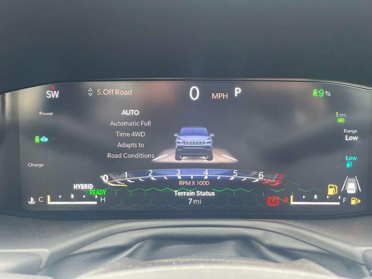 160 MPH primary speedometer, Active lane management, Active speed limiting device, Adaptive cruise control with Stop and Go, Drowsy driver detection, E-call, Electric power steering, English owners handbook, Full speed forward collision warning plus mitigation, Instrument cluster- 10.25" TFT Colour display, Instrument panel, Intelligent speed assist, Media centre electronic storage, Outside temperature display, Selec terrain system with sport mode, Tachometer, TBM - Connected services (e-call), Traffic sign recognition (TSR), Vehicle information centre, Wireless charging pad, Battery run - down protection, Battery skid plate, CO2 improvement, E- launch, E-creeping, E-Parking, E-Queueing, Electric drive, Electronic roll mitigation, EV/PHEV mode 2 charging cable, 6 speakers, Bluetooth audio streaming, DAB Digital radio, Global telematics box module (TBM), Media hub (USB A-C TYPE), Steering wheel mounted audio controls, USB A and C type - second row, USB host flip, 4XE badge/e-Hybrid badge, Accent/body colour bumpers, Aspherical driver's exterior mirror, Auto dimming rear view mirror, Auto high beam, Automatic headlights, Belly pan - underbody protection, Black mic grille with chrome rings, Black side roof rails, Body colour door handles, Carry back MHEV, Chrome window surround, Coastdown and run-in optimization, Compass badge, Deep tint privacy glass, Door mirrors: power adjustable and folding, heated with auto folding function and indicators, Exterior door mirrors with heating element, Front fascia/belly pan skid plate, Gloss black exterior door mirrors, Headlamp leveling system, Headlamp off time delay, Heated rear window, Jeep badge, LED front fog lamps, LED rear lights, LED reflector headlamps high with segmented DRL, LED tail lights, Limited badge, Lower bodyside cladding in black, Partial body cover protection, Power windows - driver and passenger express up/down, Rain sensitive windscreen wipers, Rear fascia, Rear fog lamps, Rear side wing doors, Rear windshield washer/wiper, Removable short mast antenna, Smartbeam headlights, Third brake light, Trailer sway damping, UK front number plate bracket, Windshield wiper de-icer, 12V auxiliary power outlet - 2nd row, 3 rear seat head restraints, 3 seat bench in 2nd row, 6 way manual adjust front passenger seat, 60/40 split folding rear seat, All weather floormats with Jeep logo, Cargo area lights, Cargo compartment carpet, Cargo compartment cover, Cargo compartment organiser, Cargo load floor, Cargo tie down loops, Centre console with sliding armrest, Centre rear 3 point seat belt, Child seat anchorage points, Cloth/vinyl upholstery, Coat hooks, Dash insulation, Driver assist handle, Driver seat 6 way manual adjust, Driver seat height adjust, Dual zone temperature control with preconditioning capability and heater, Fold flat front passenger seat, Front head restraints, Front height-adjust seatbelts, Front map pocket LED lamps, Front map reading lights, Front seats back map pockets, Full length centre console, Glovebox light, Glovebox with damped door, Heated front seats, Heated steering wheel, Illuminated door entry system, Interior door handle LED lamps, Internal rear grab handles, Leather wrapped gear knob, No Alternator, Overhead console, Overhead dome LED lamps, Passenger assist handles, Power 2-way driver lumbar adjustment, Rear air conditioning and heater vents, Rear seat armrest with cupholder, Single front passenger seat, Spare wheel storage insulation, Sunvisors with illuminated vanity mirrors, Tilt/telescopic steering column, Vinyl wrap steering wheel, AEB with pedestrian and cyclist detection, All speed traction control, Automatic electronic hold brake, Driver's front airbag, Dual note electric horns, Dual tyre pressure - lum changes, Electrical steering column shaft lock, Electronic parking brake, Electronic stability control, Energy recovery system, Front and rear side curtain airbags, Front passenger airbag, Front side airbags, Hill descent control, Hill start assist, Jeep call assistance label, Passenger airbag deactivation switch, Rain brake support, Rear door child protection locks, Rear seat belt reminder, Tyre pressure monitoring display, Capless fuel filler, Occupant detection system, Passive entry and keyless go (Key fob without panic button), Power locking fuel filler door, Premium security alarm, Front and rear air vents, Speakers in satin chrome silver,